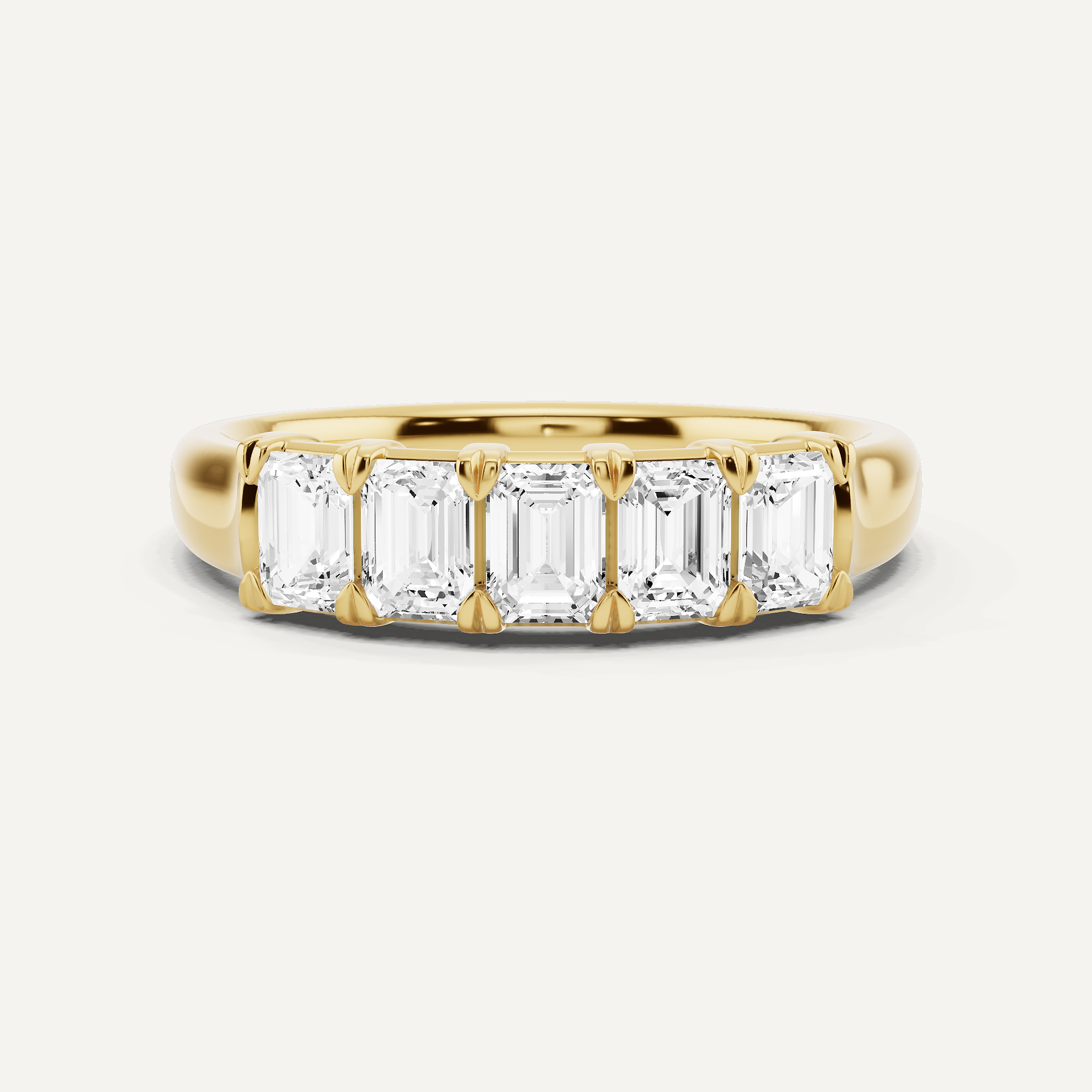 Crown your love with our Emerald Diamond Five Stone Anniversary Band. This budget-friendly band features five sparkling emerald diamonds, adding a touch of glamour to your everyday style.