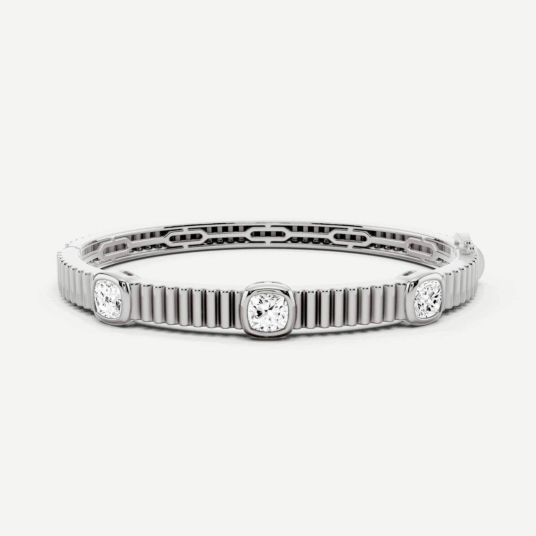 3 ctw Cushion Diamond 14K Gold Vermeil Station Bangle Bracelet