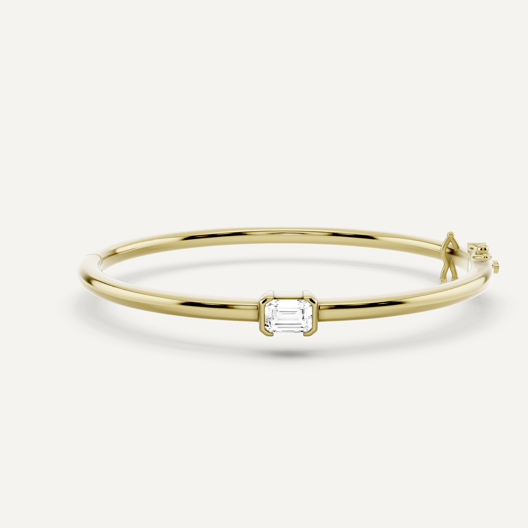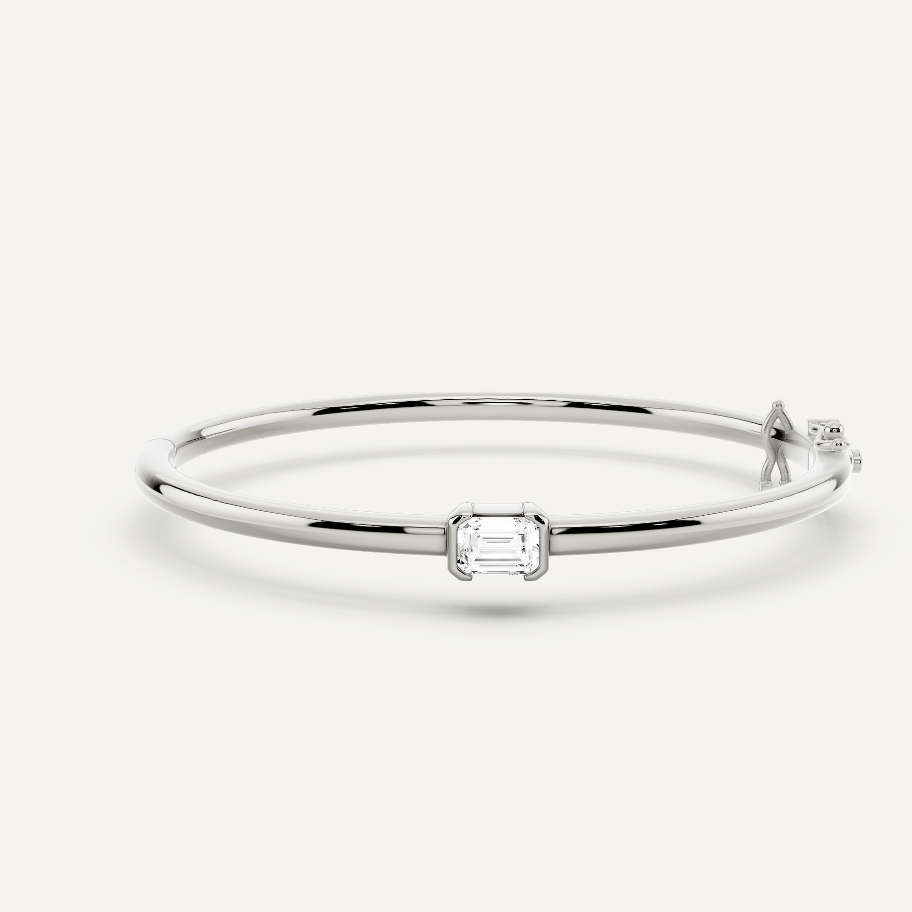 1 ctw Emerald Diamond Station Silver Bangle Bracelet with 14K Vermeil