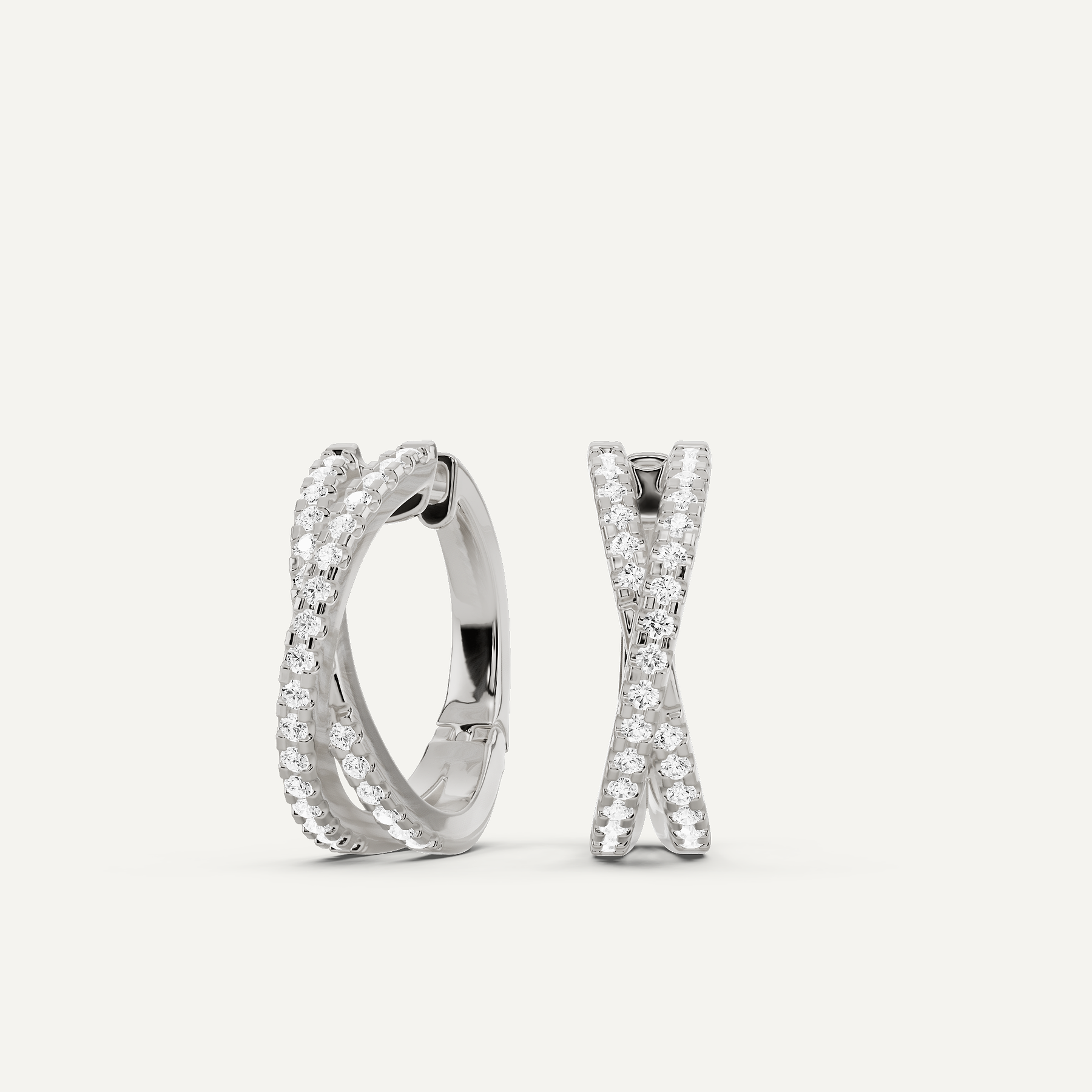1/2 ctw Round Diamond Crossover Hoop Earrings