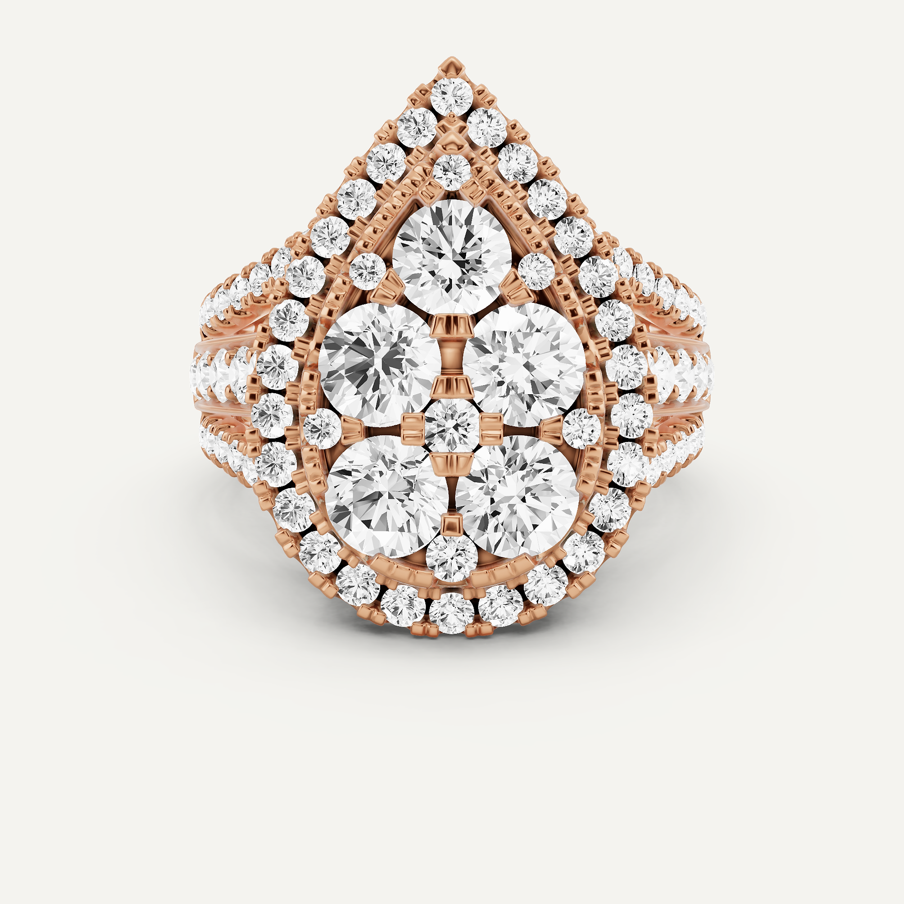 3 ctw Round Diamond Pear Shape Cluster Fashion Ring