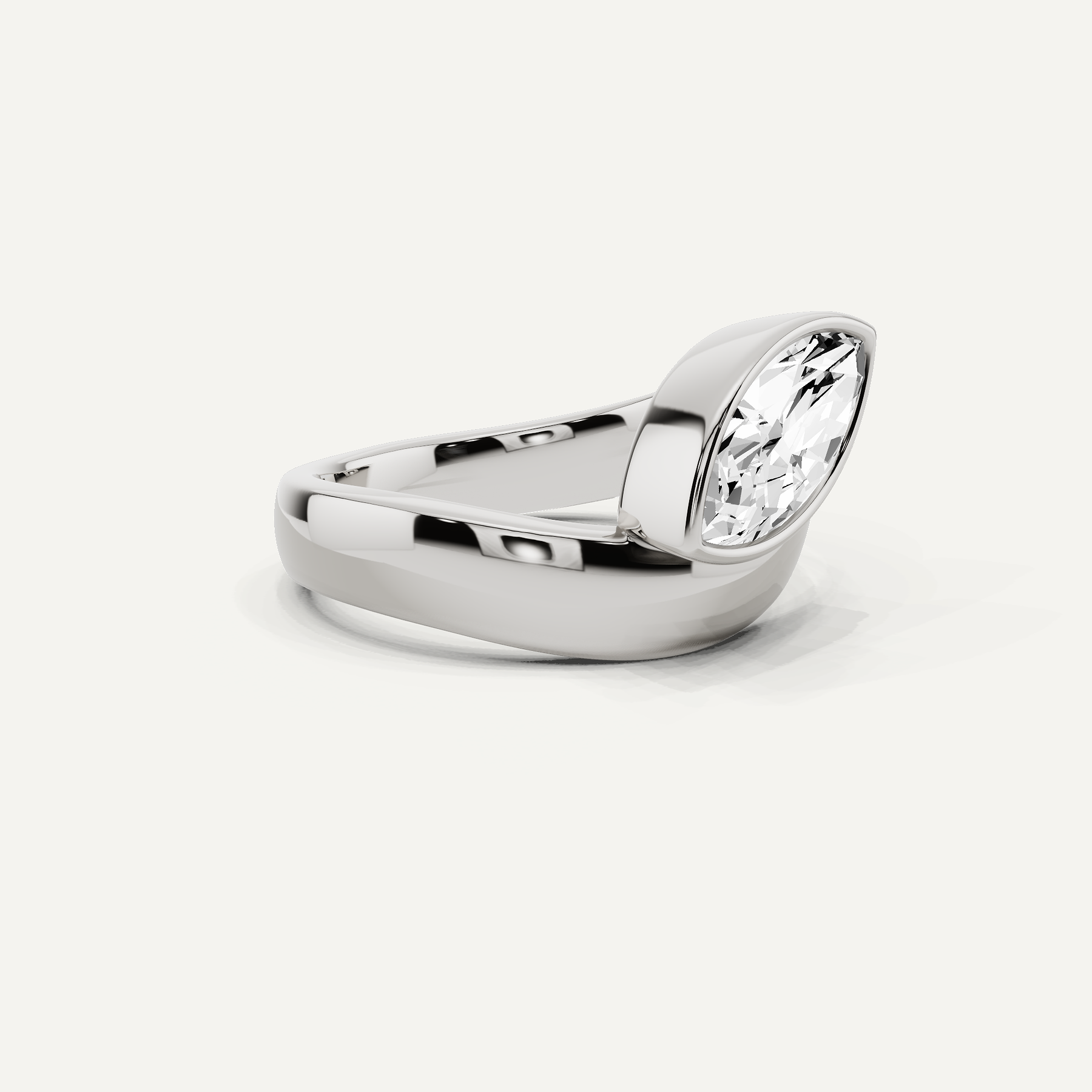 1 1/2 ctw Marquise Diamond Bezel Set Curve Solitaire Ring with 14K Vermeil