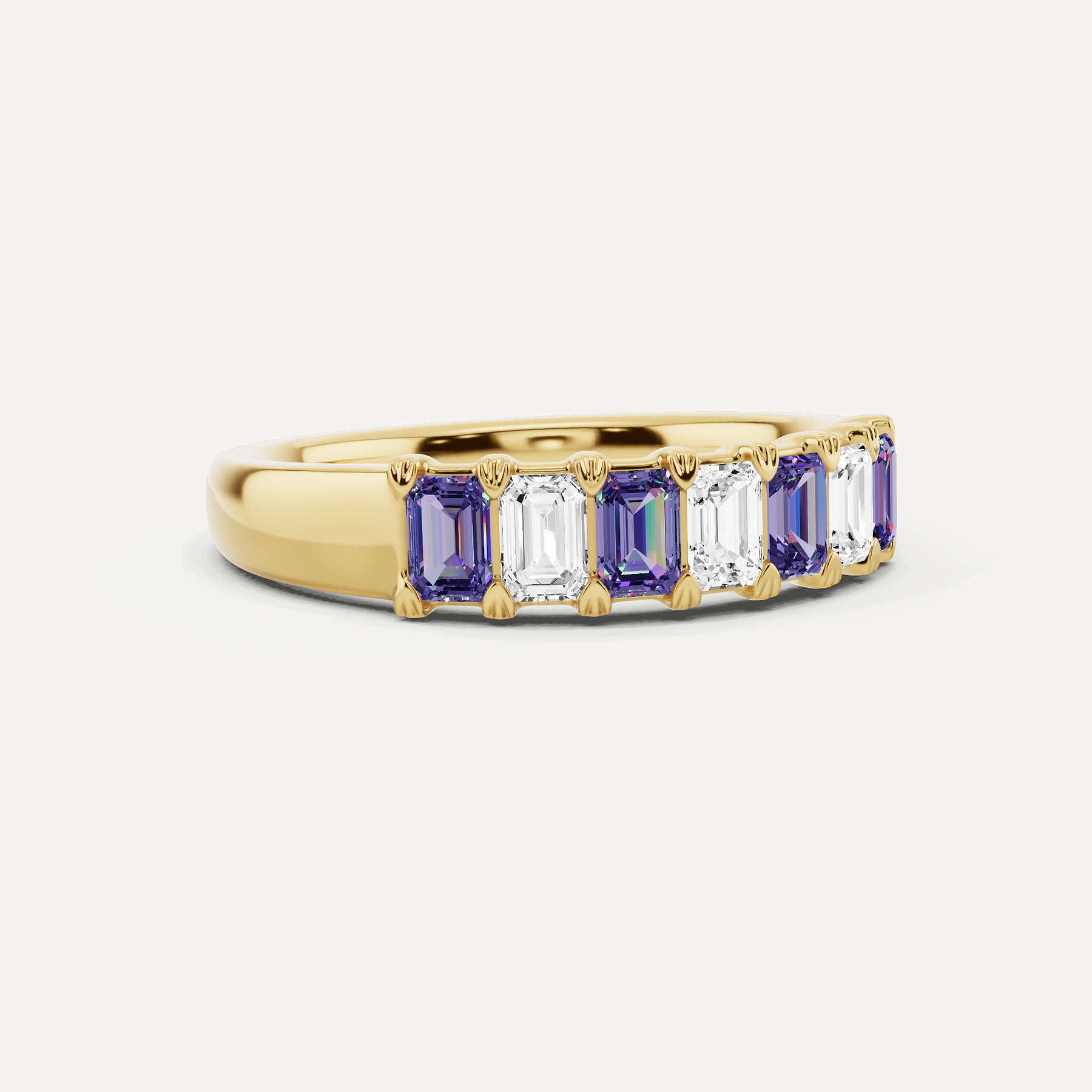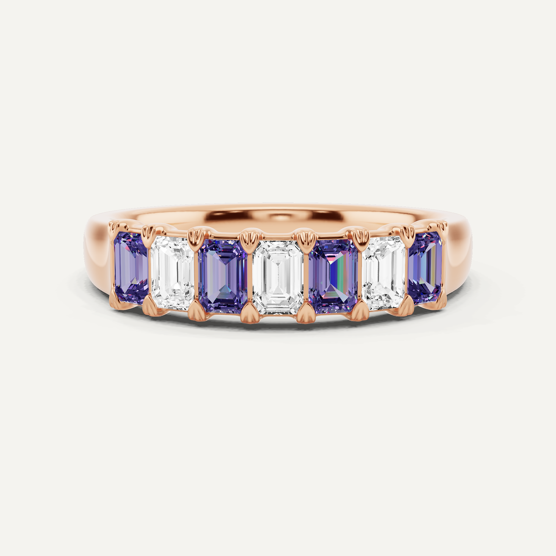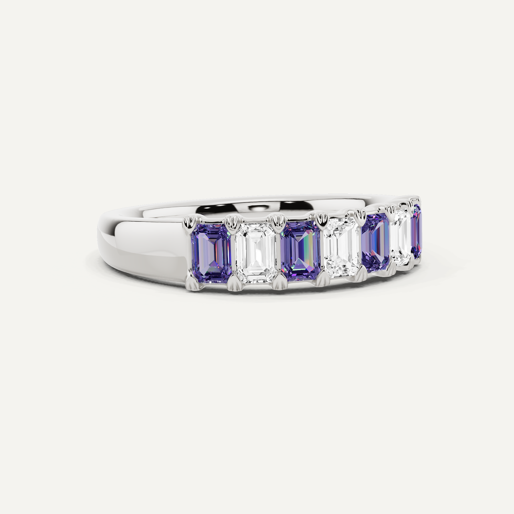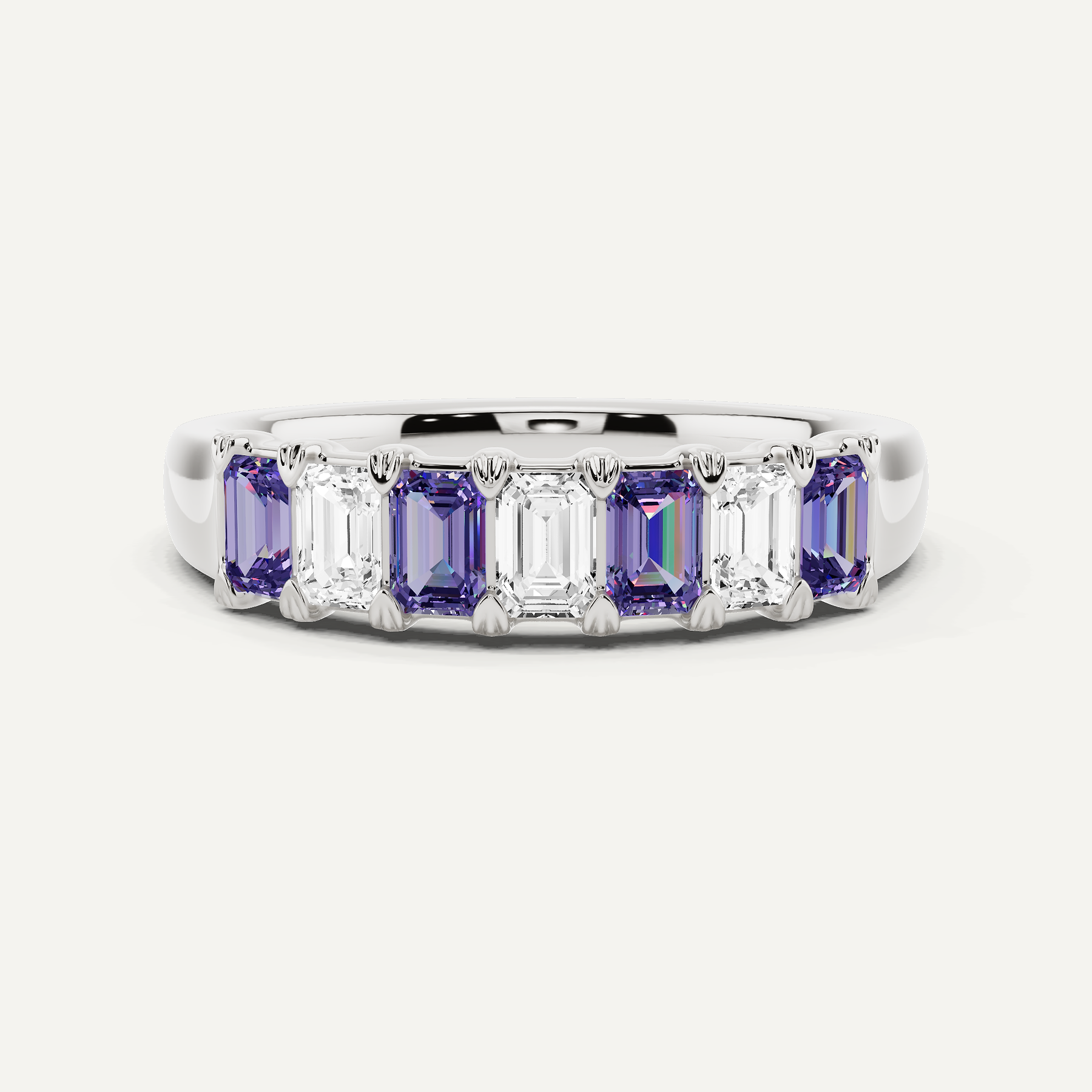 1 ctw Emerald Diamond & Emerald Created Alexandrite Alternating Seven Stone Anniversary Band