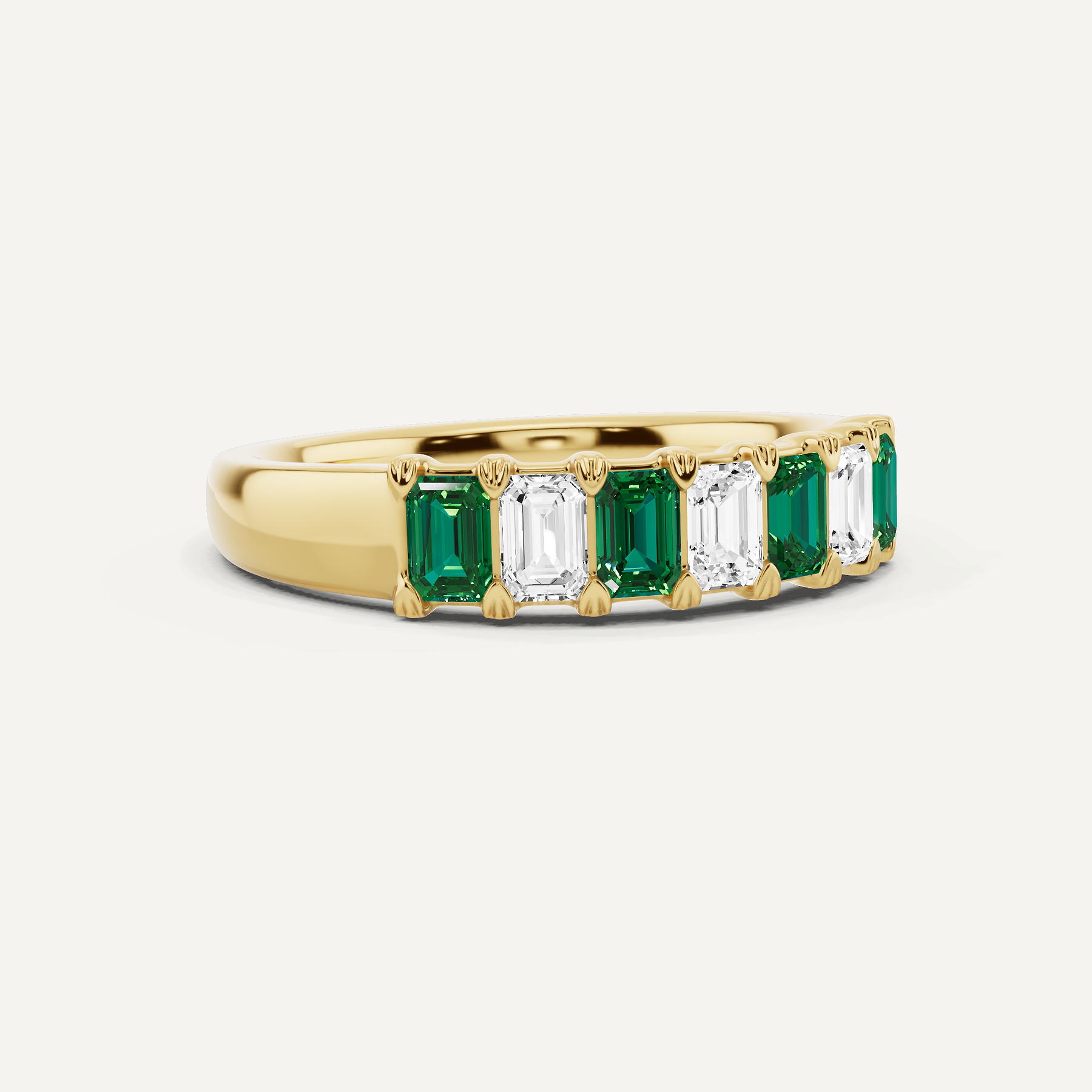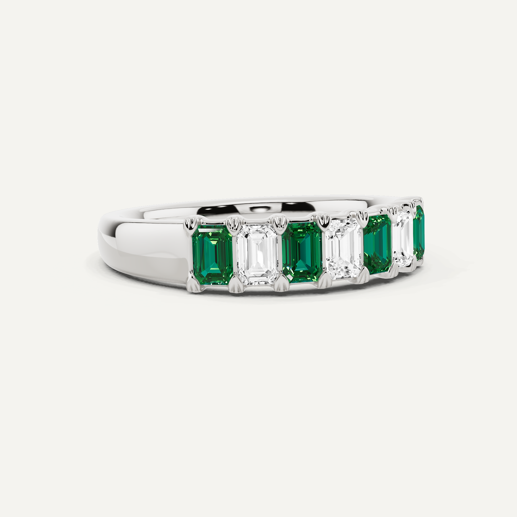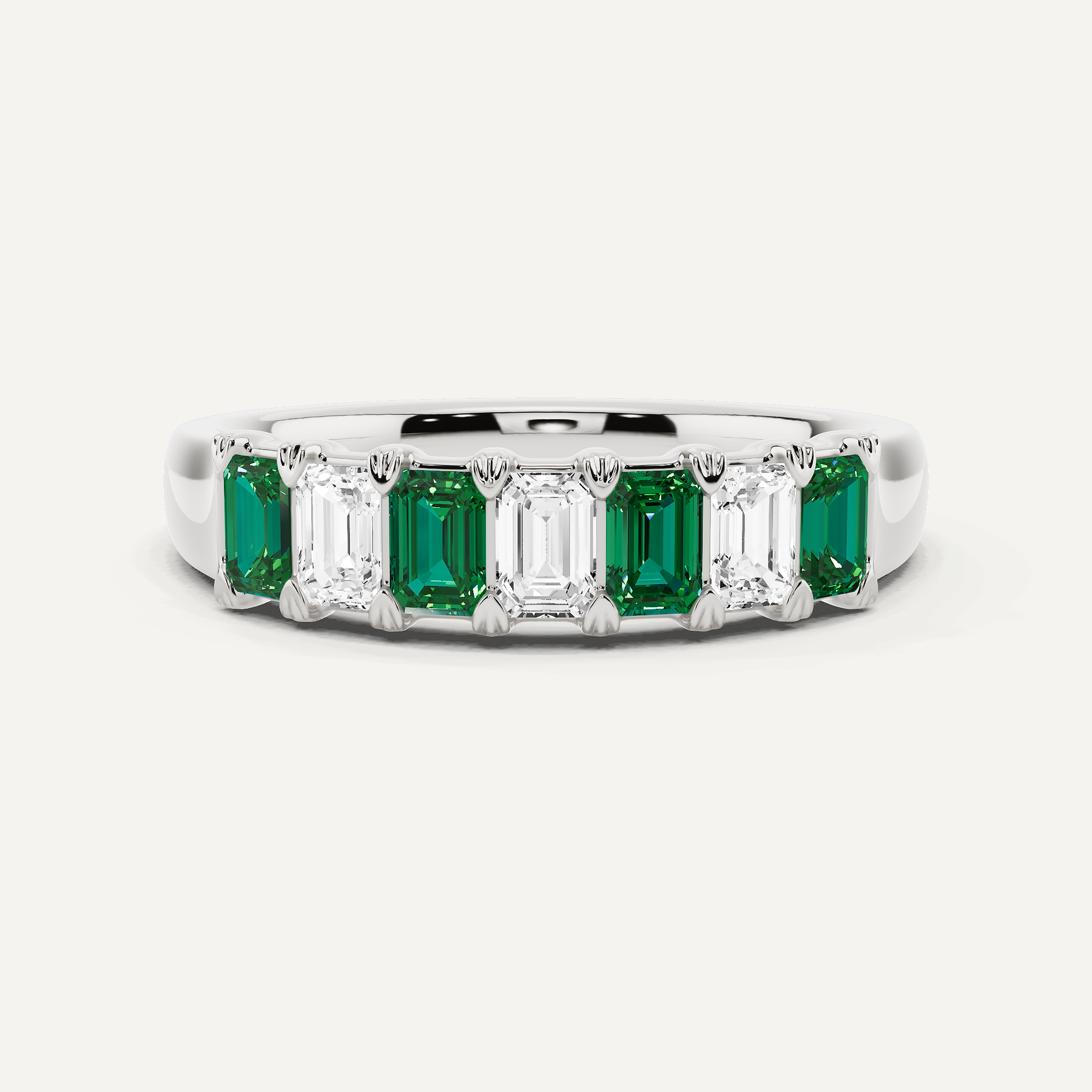 1 ctw Emerald Diamond & Emerald Created Emerald Alternating Seven Stone Anniversary Band