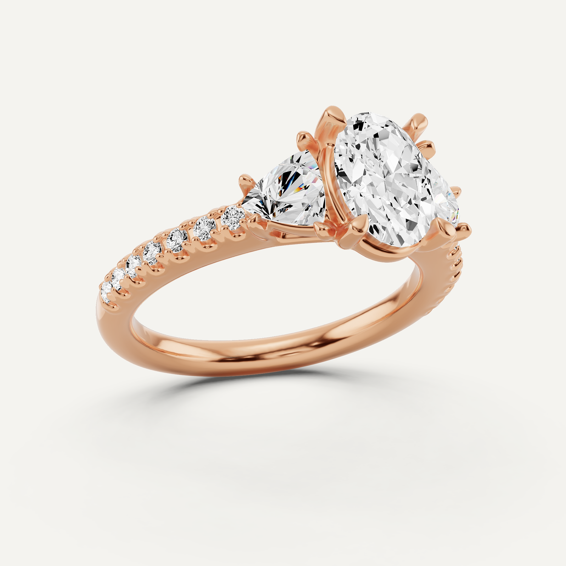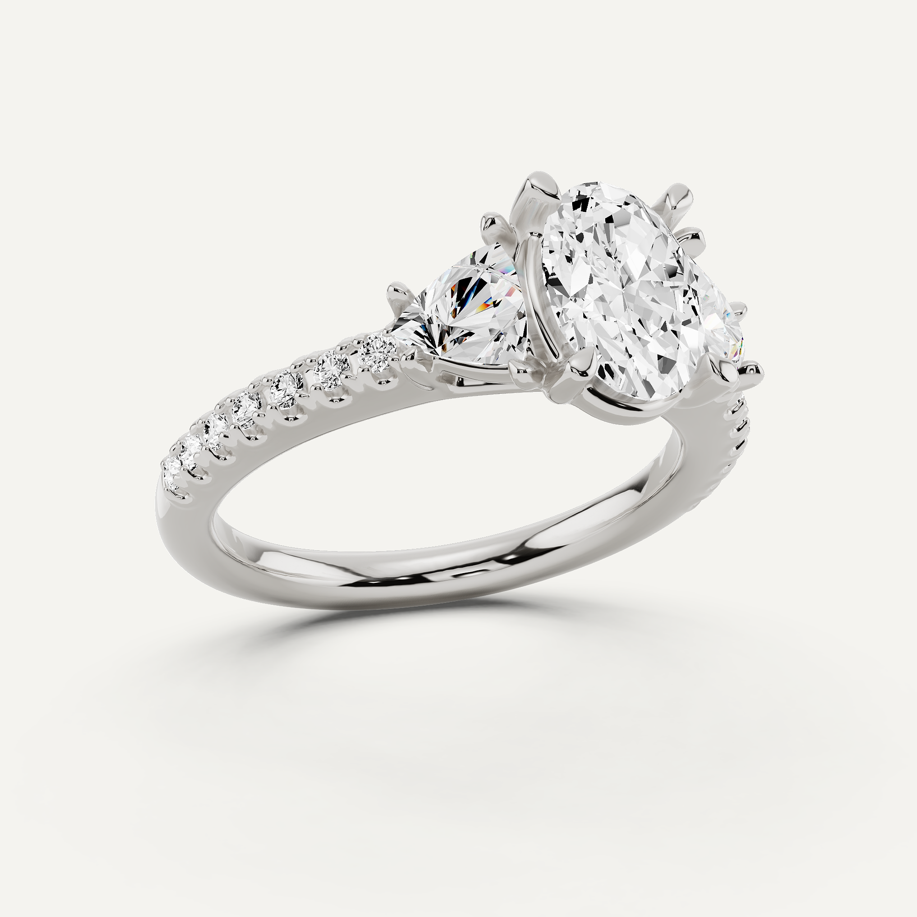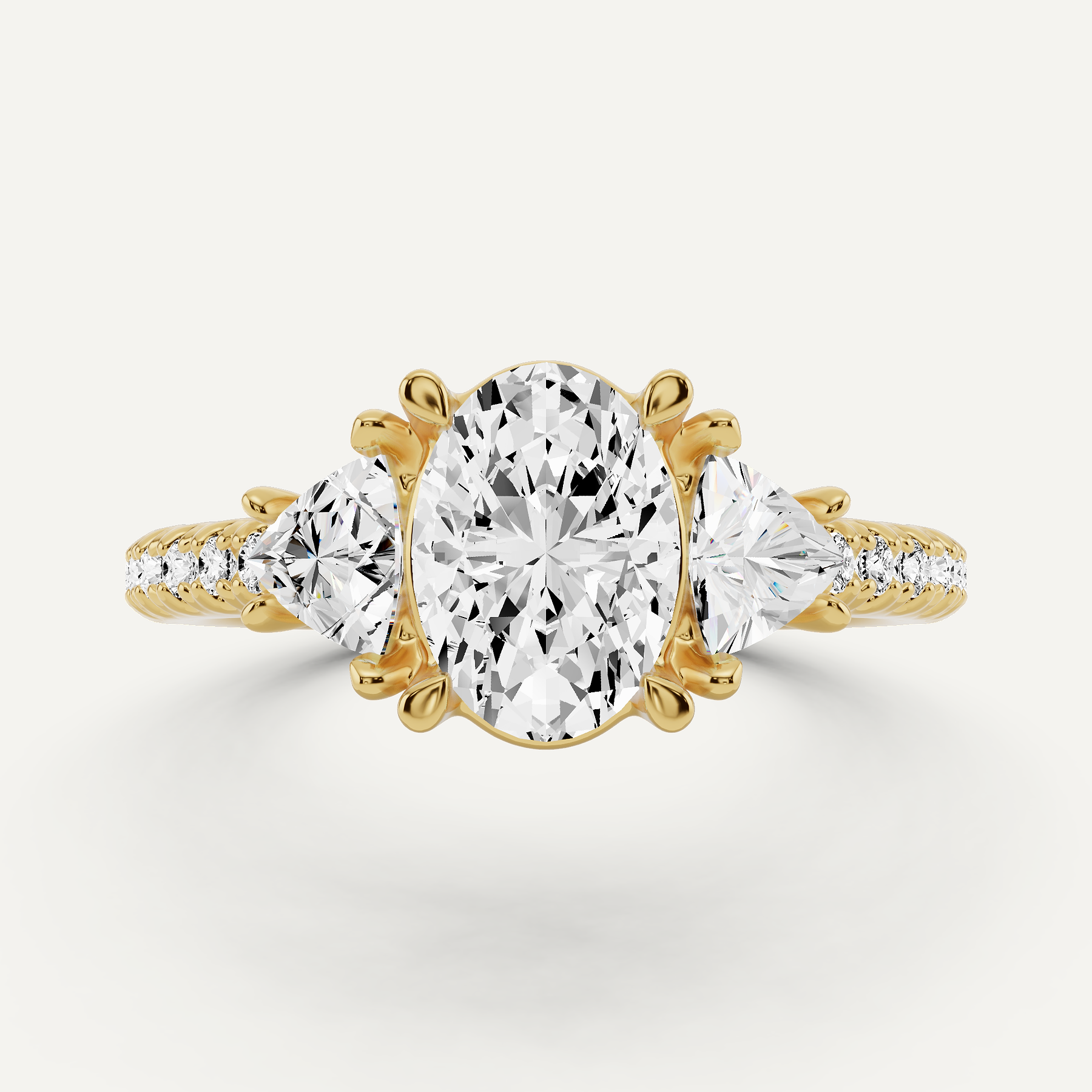 Express your love without breaking the bank - our Oval cut Three Stone Diamond Engagement Ring harmonizes romance with budget-consciousness. Delve into the intricate differences among white gold, yellow gold, and rose gold variations, all while conducting a detailed self-examination of your preference for lab-grown or naturally sourced diamonds.