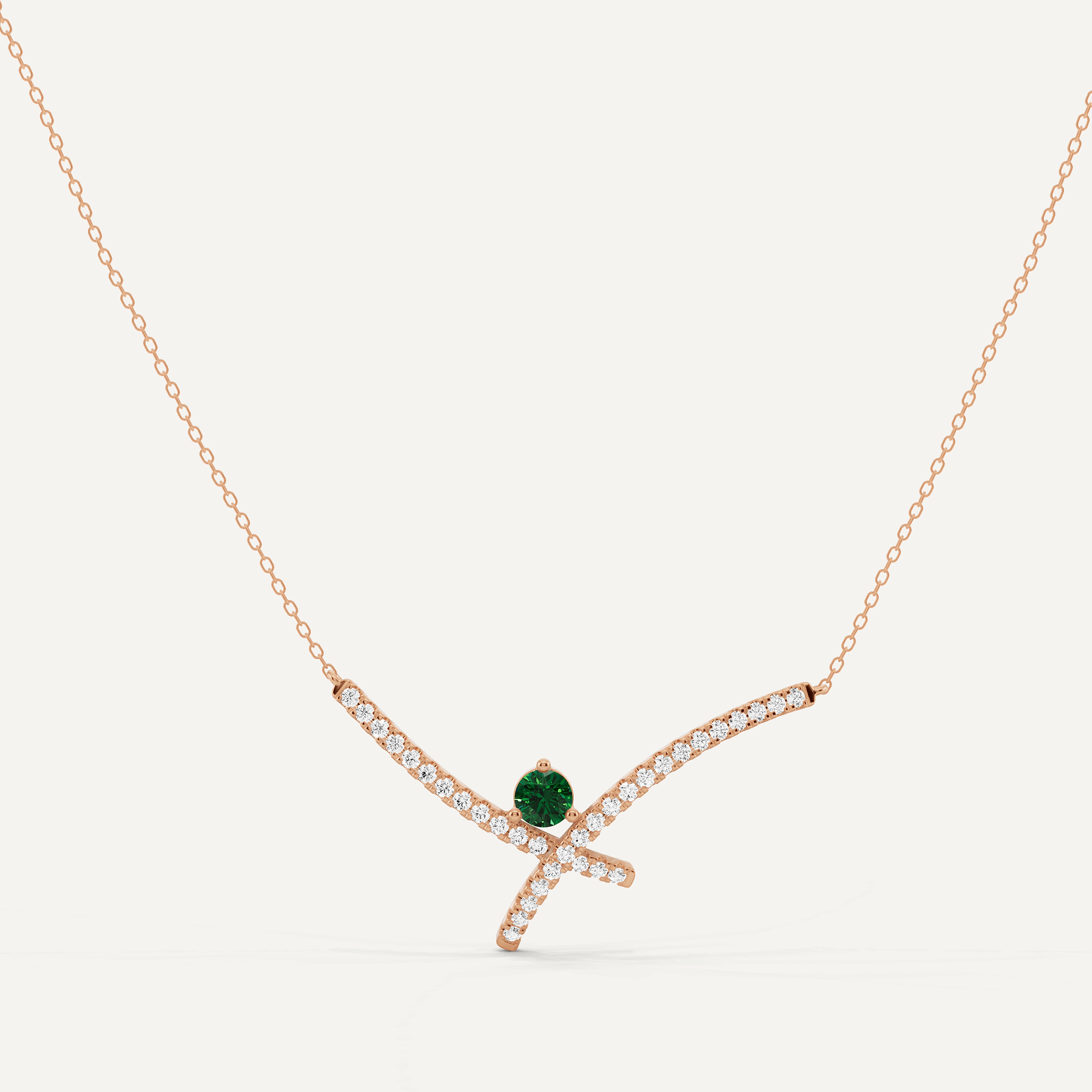7/8 ctw Round Emerald Criss Cross Fashion Necklace in