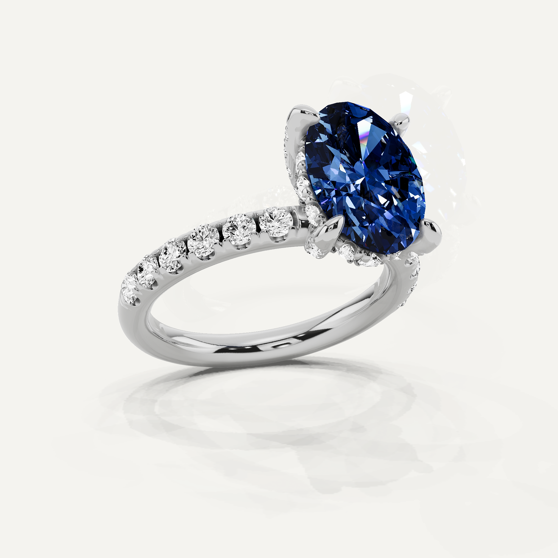 2 1/2 ctw Oval Created Sapphire and Round Diamond Hidden Halo Engagement Ring