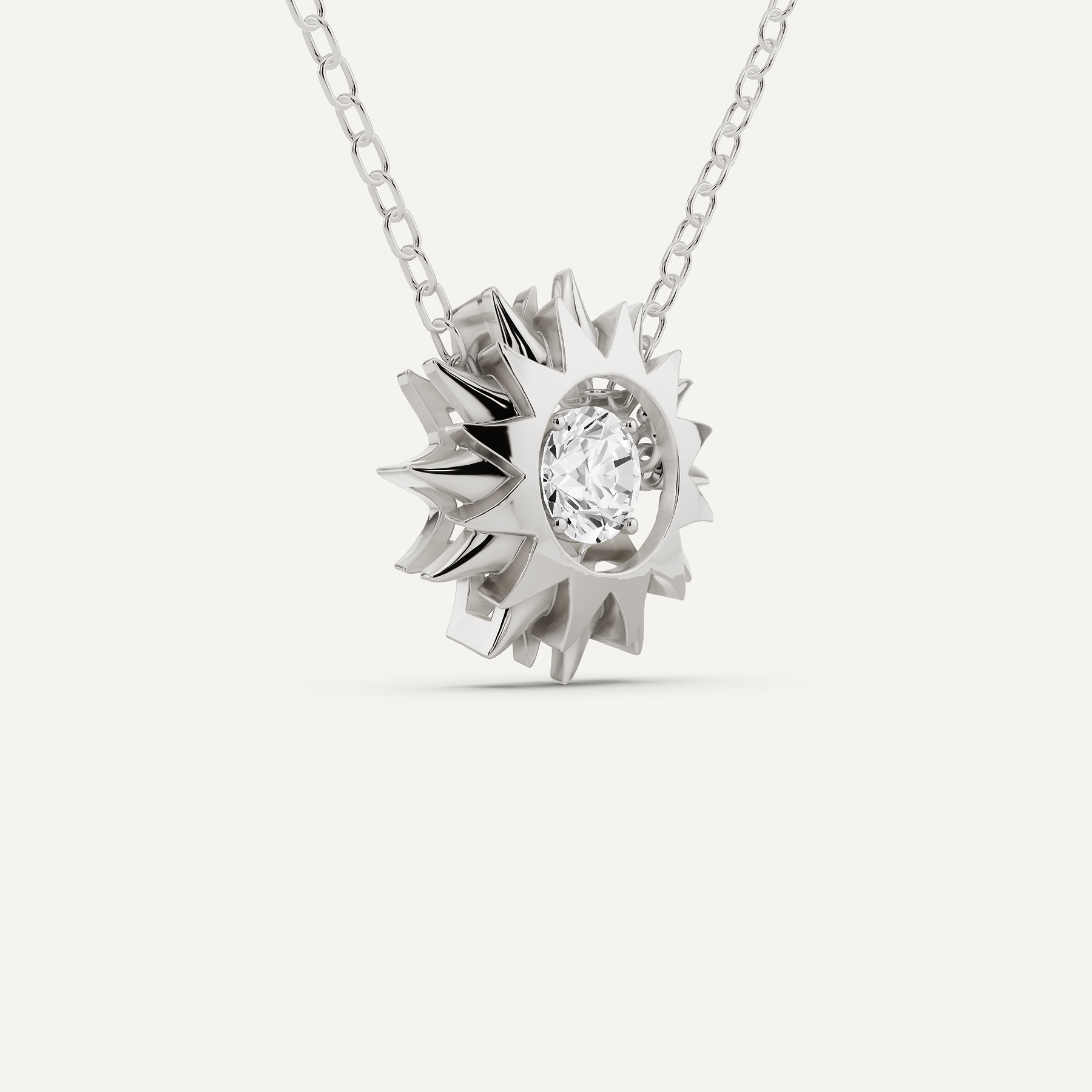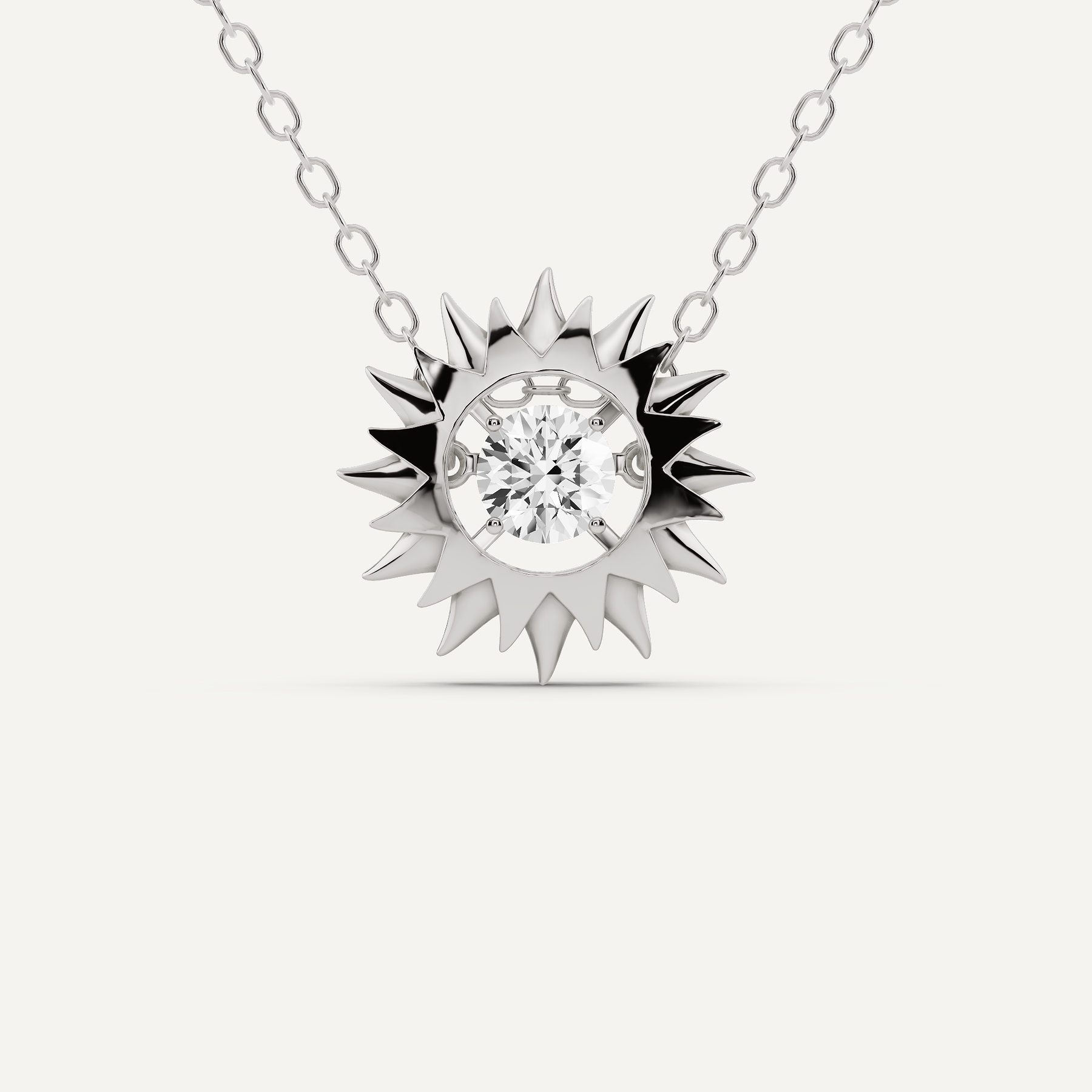 Suspended in perpetual motion, this pendant captures the beauty of life's fleeting moments. Crafted in radiant 10K white gold, its design highlights a carefully set 1/2 ctw round center stone that appears to dance with the wearer's every breath. This necklace brings a sense of grace and wonder to any occasion, a true reflection of extraordinary craftsmanship.