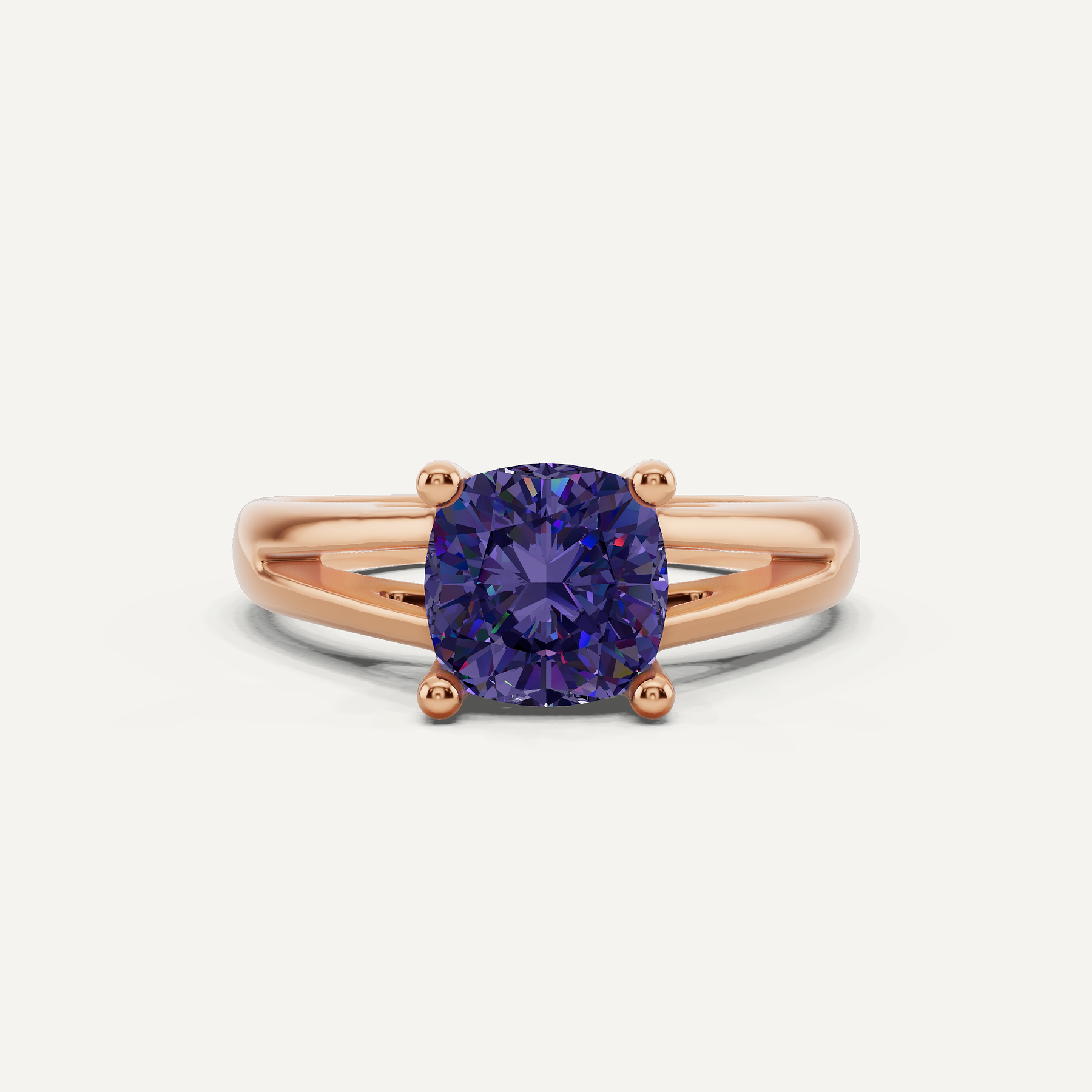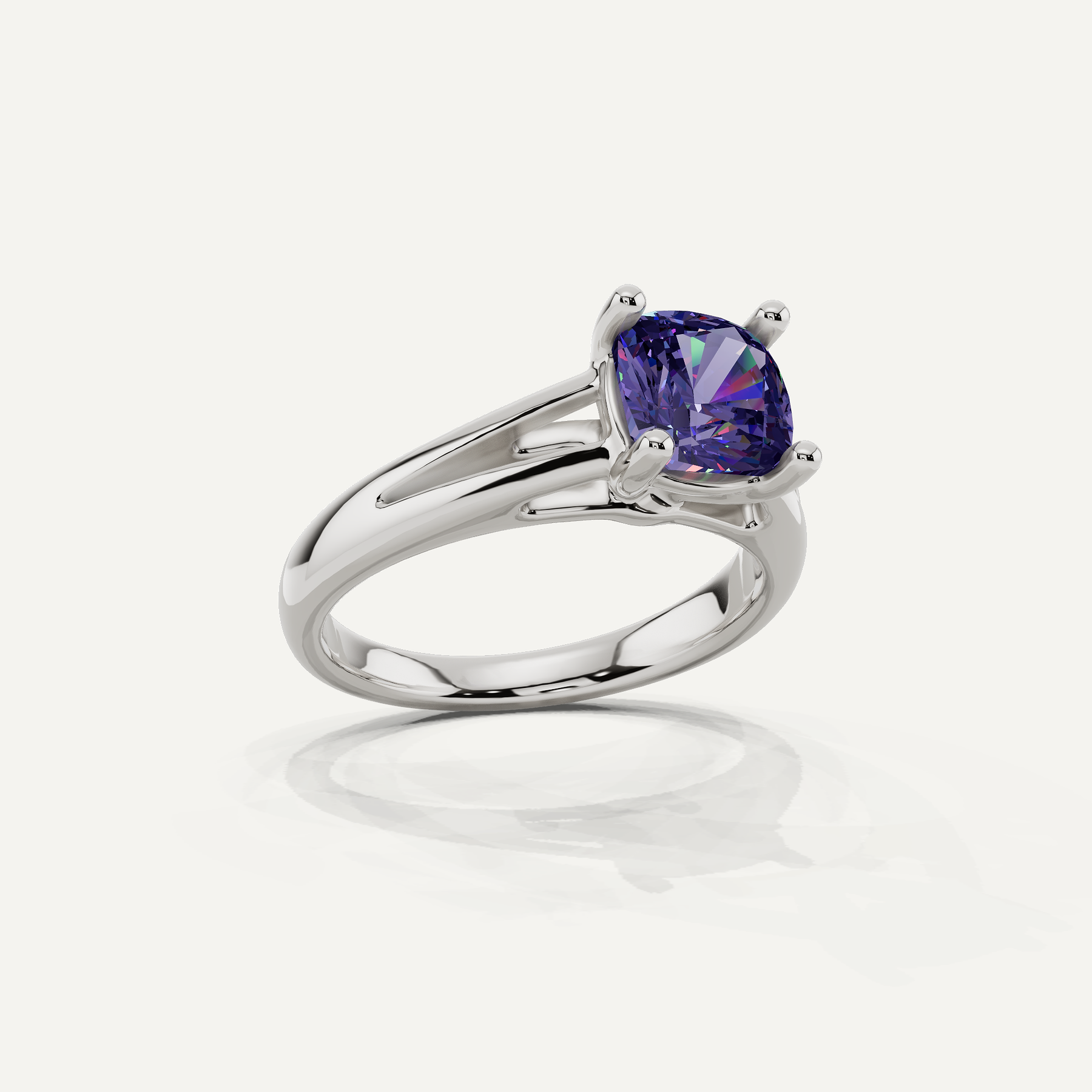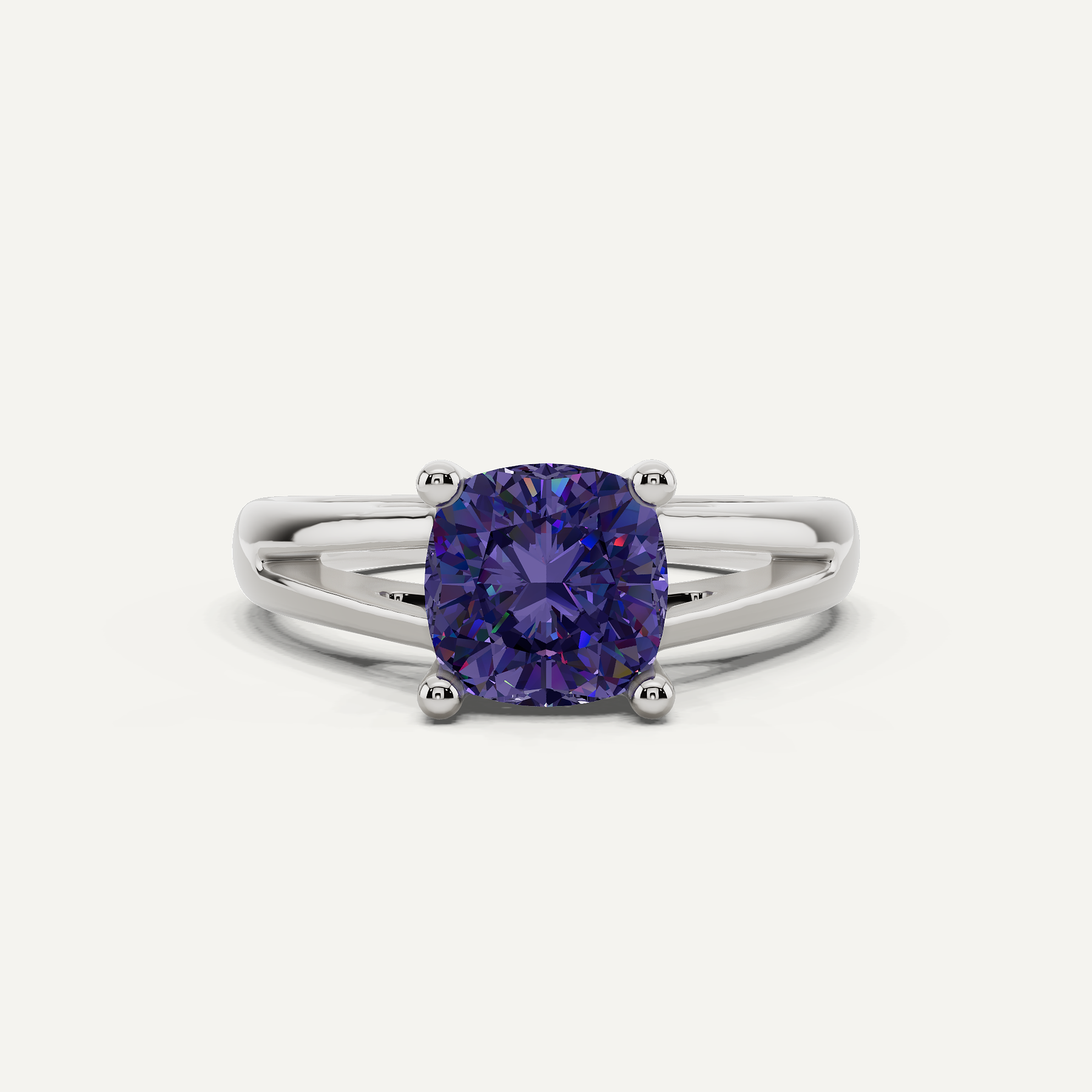 1 1/2 ctw Cushion Created Alexandrite Double Band Solitaire Engagement Ring