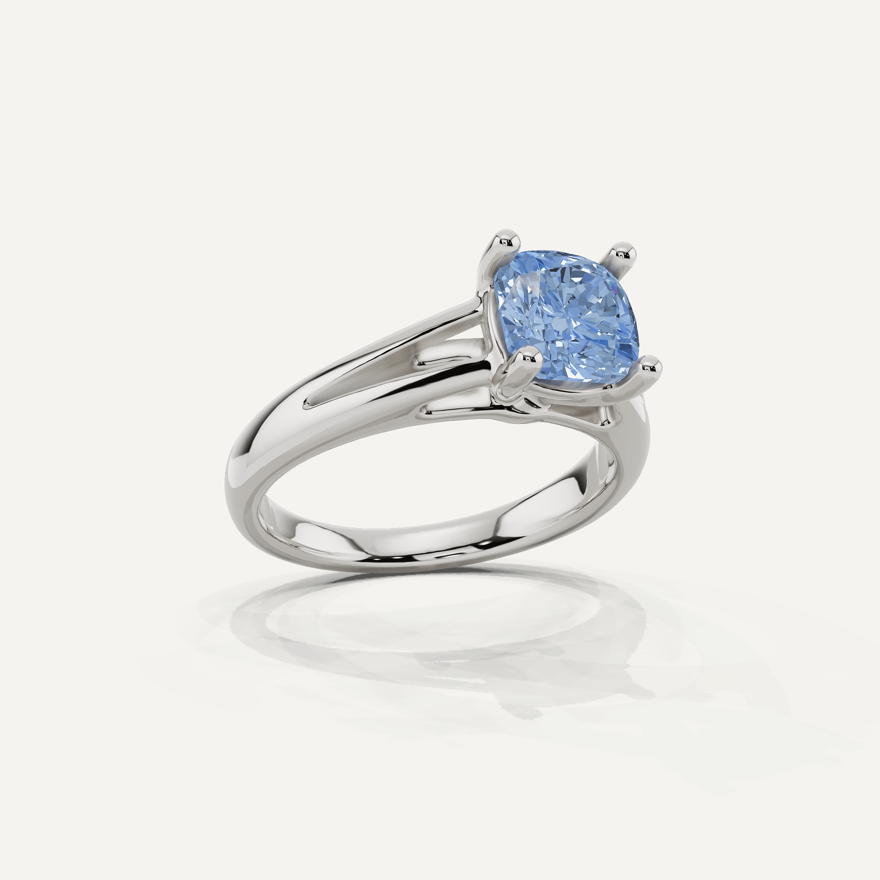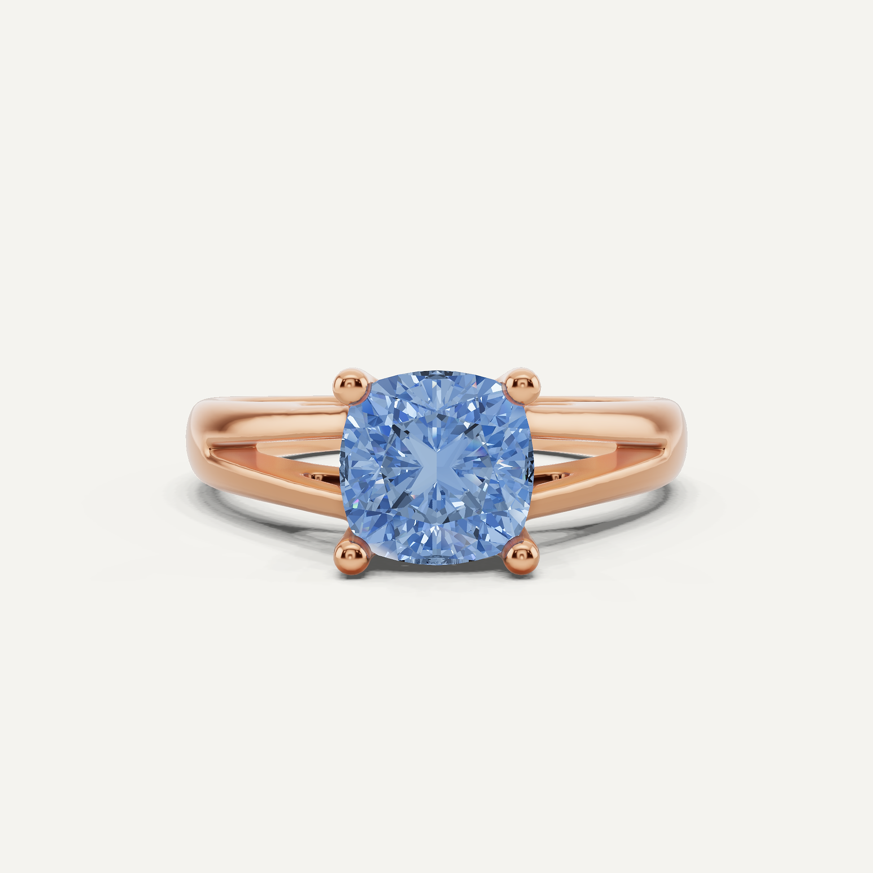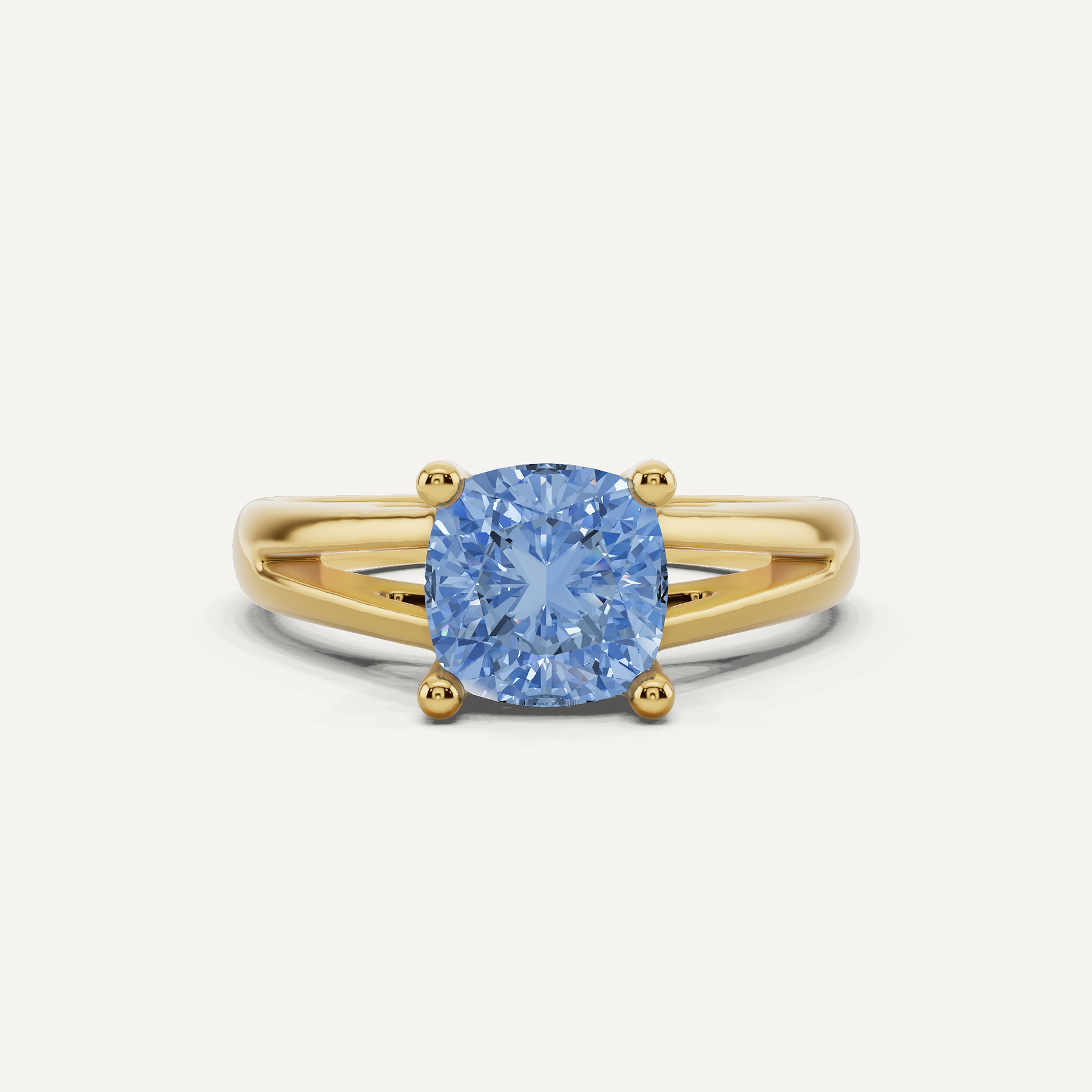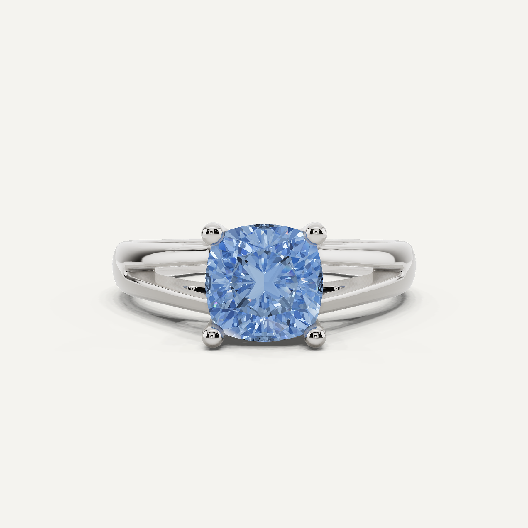 1 1/2 ctw Cushion Created Aquamarine Double Band Solitaire Engagement Ring