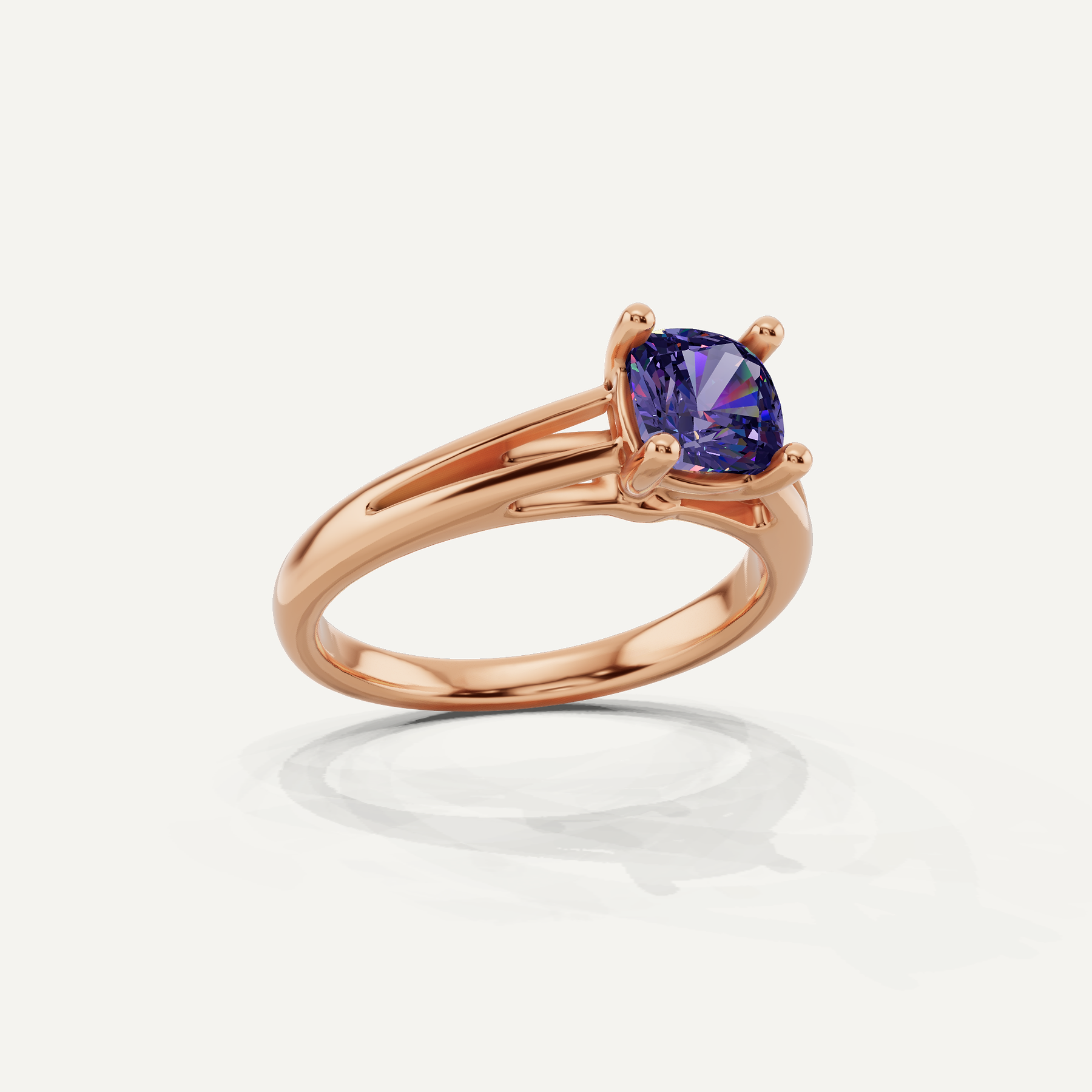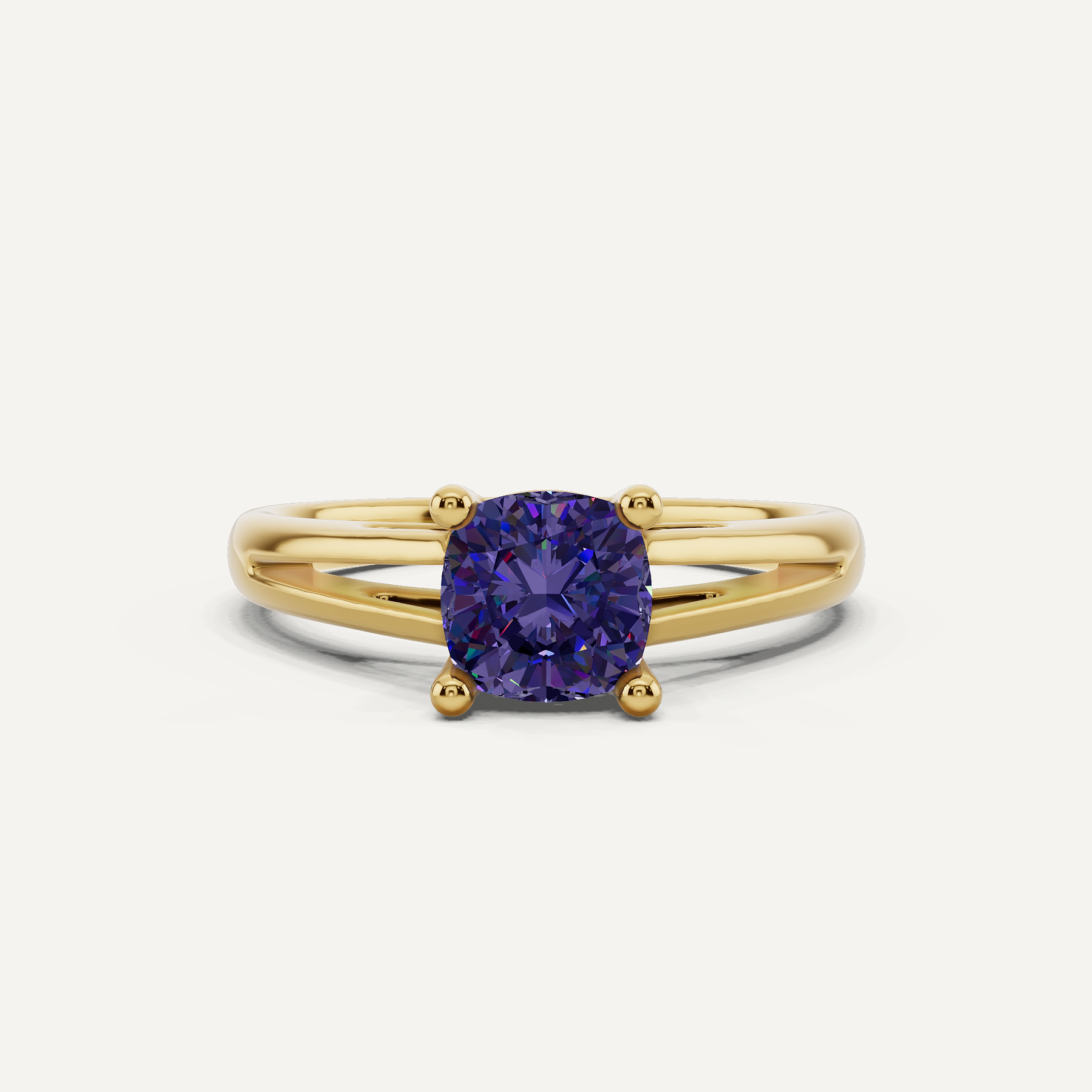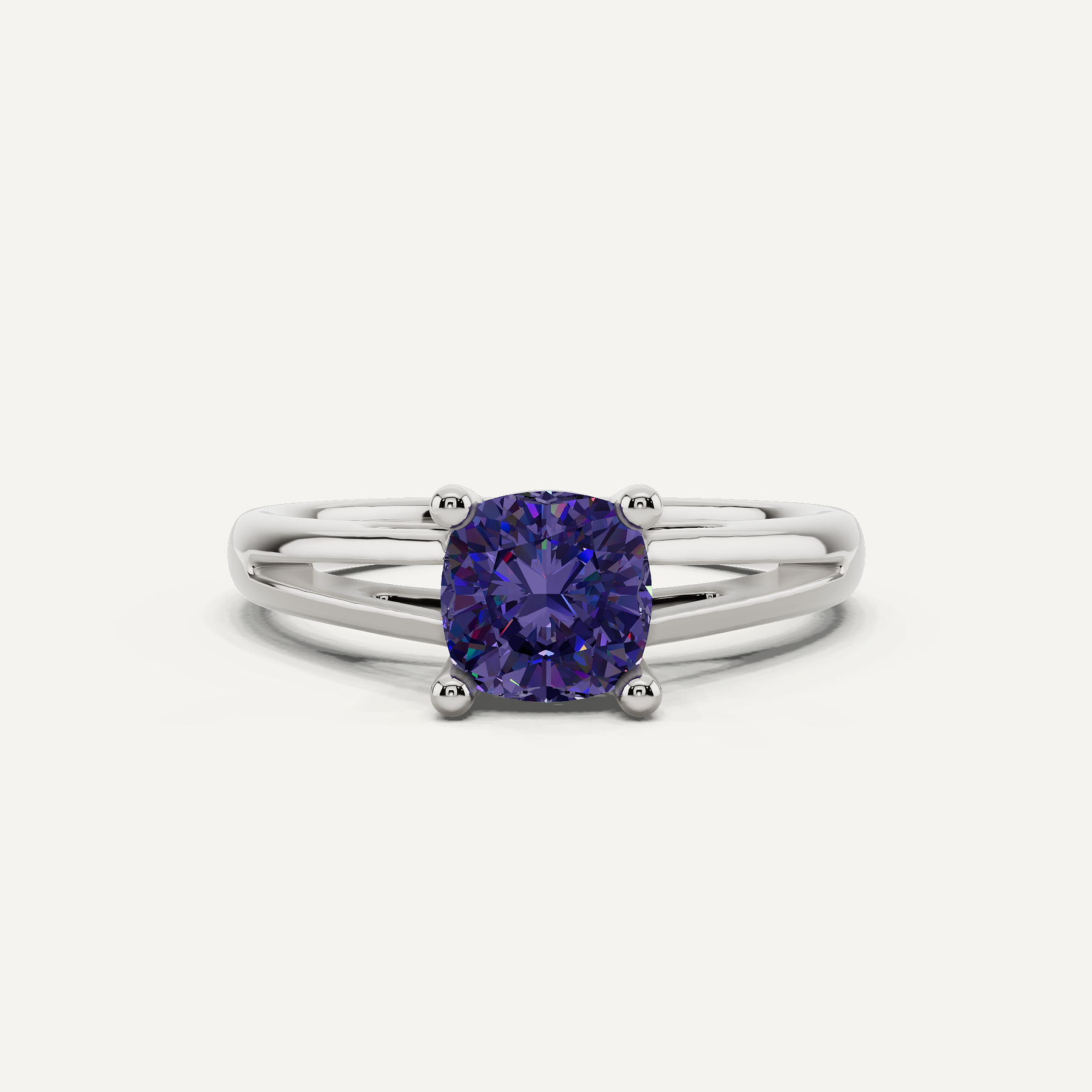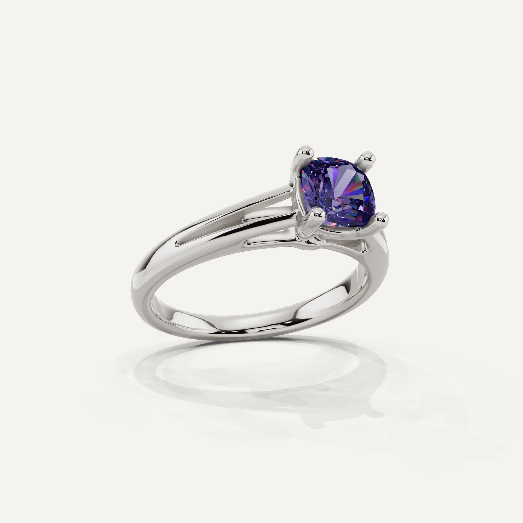 1 ctw Cushion Created Alexandrite Double Band Solitaire Engagement Ring