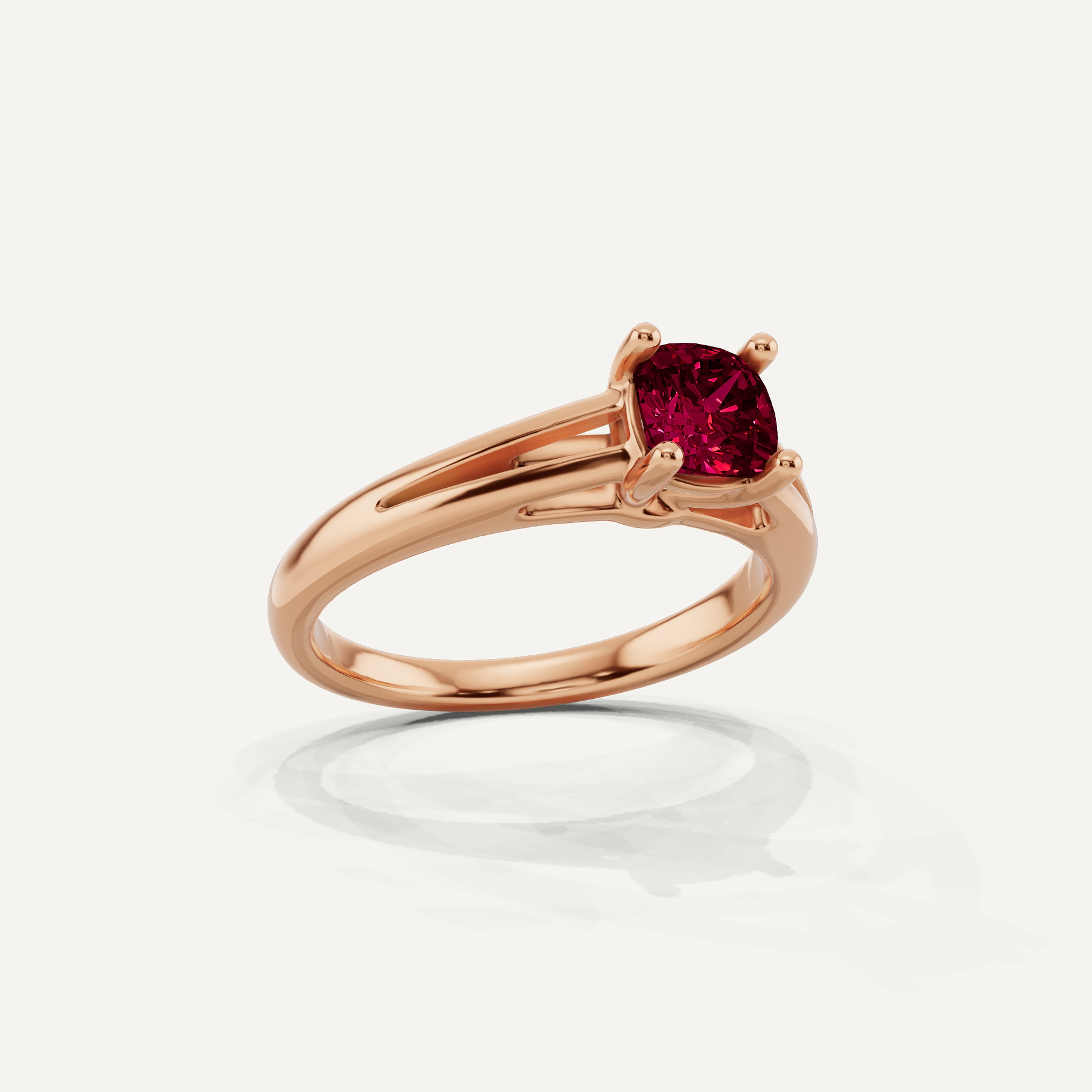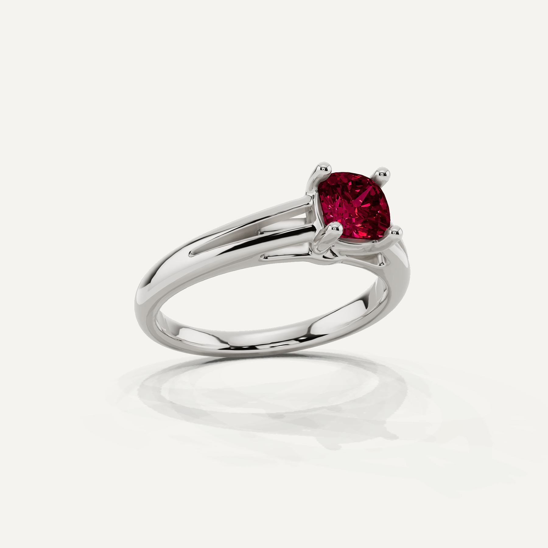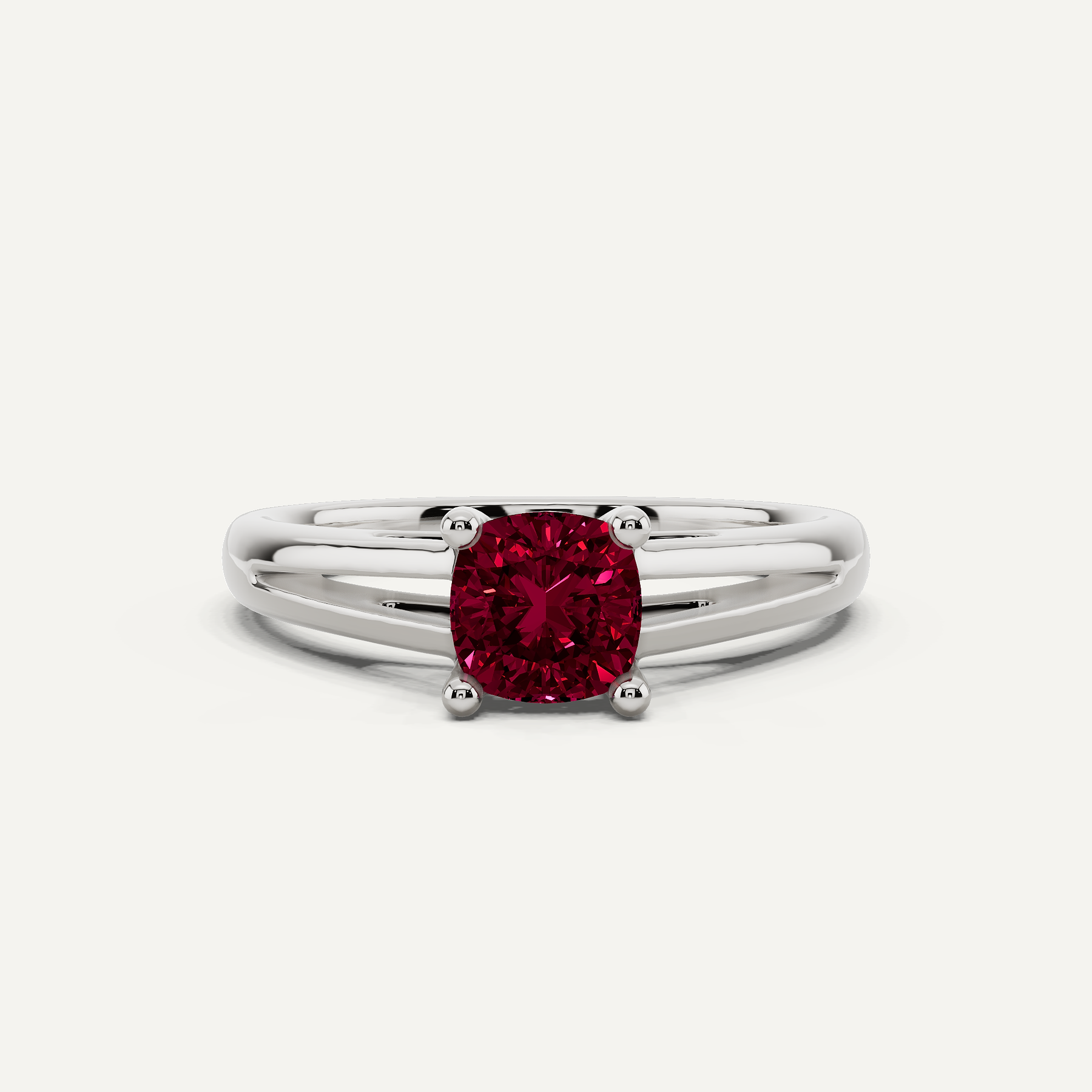 5/8 ctw Cushion Created Ruby Double Band Solitaire Engagement Ring