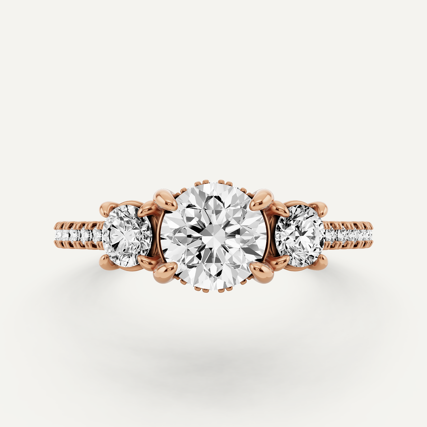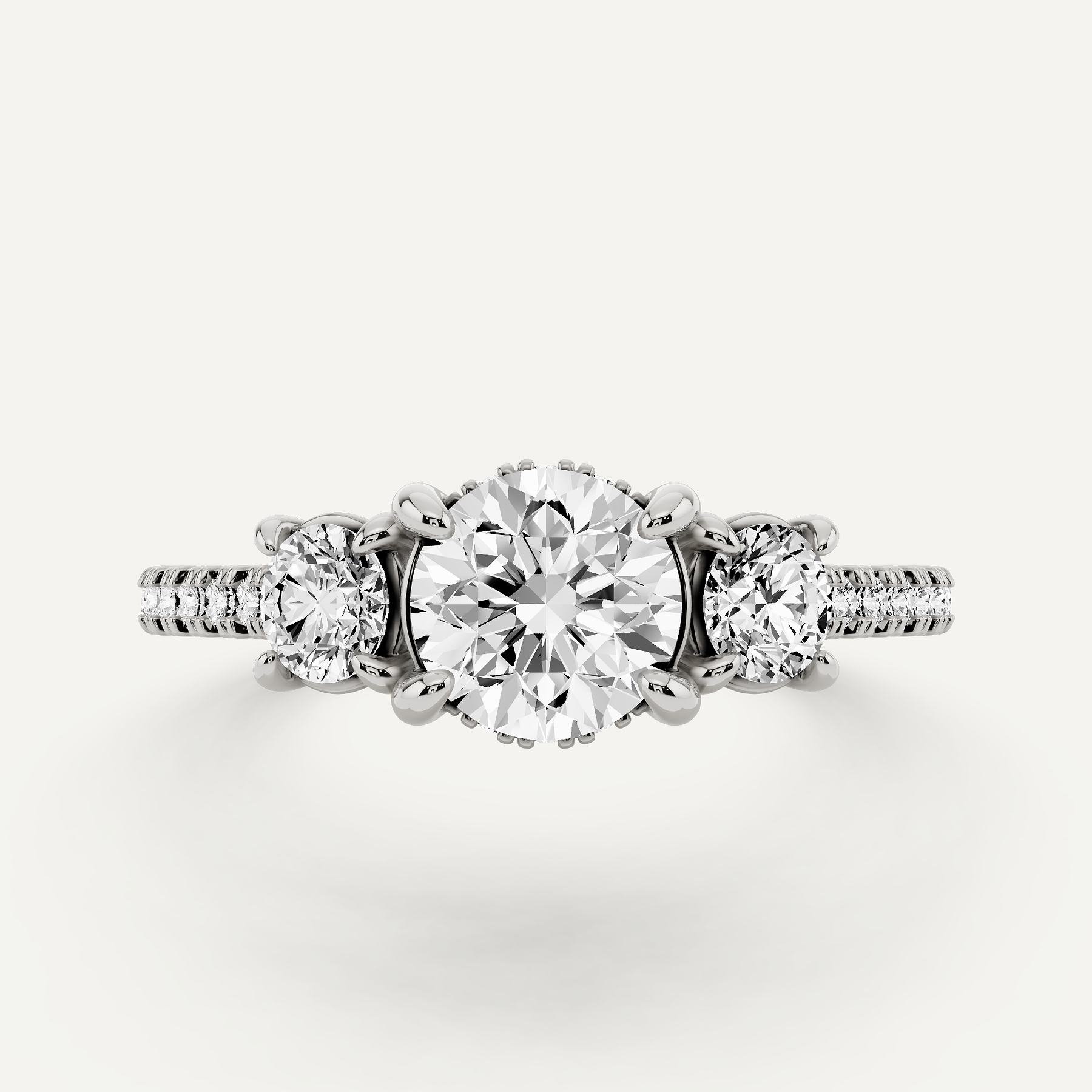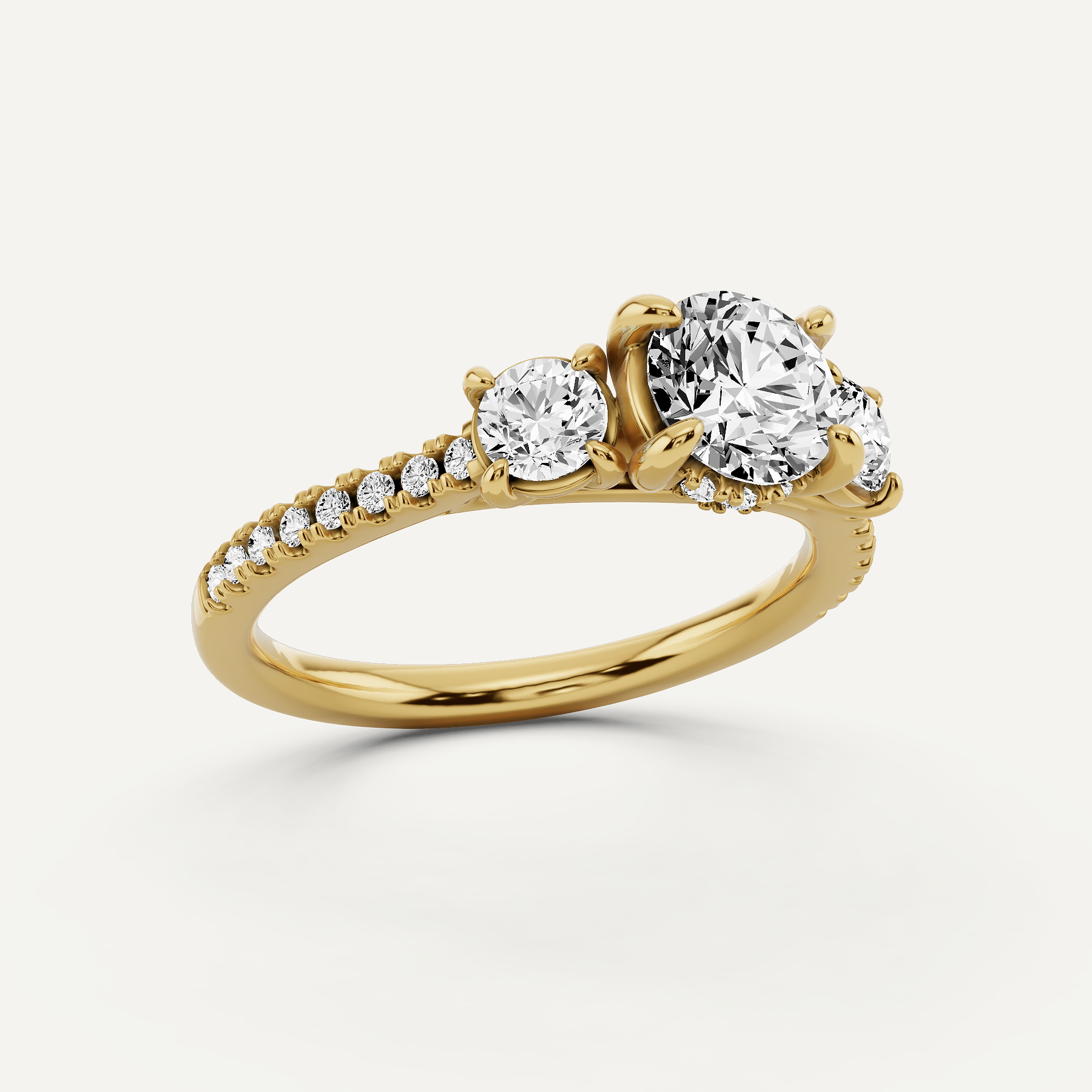 Experience the sparkle of romance without breaking the bank with our Three Stone Round Diamond Engagement Ring, a timeless design that marries love and affordability. Explore the fine differences between white gold, yellow gold, and rose gold options, and carry out a thorough self-analysis of your preference for lab-grown diamonds.