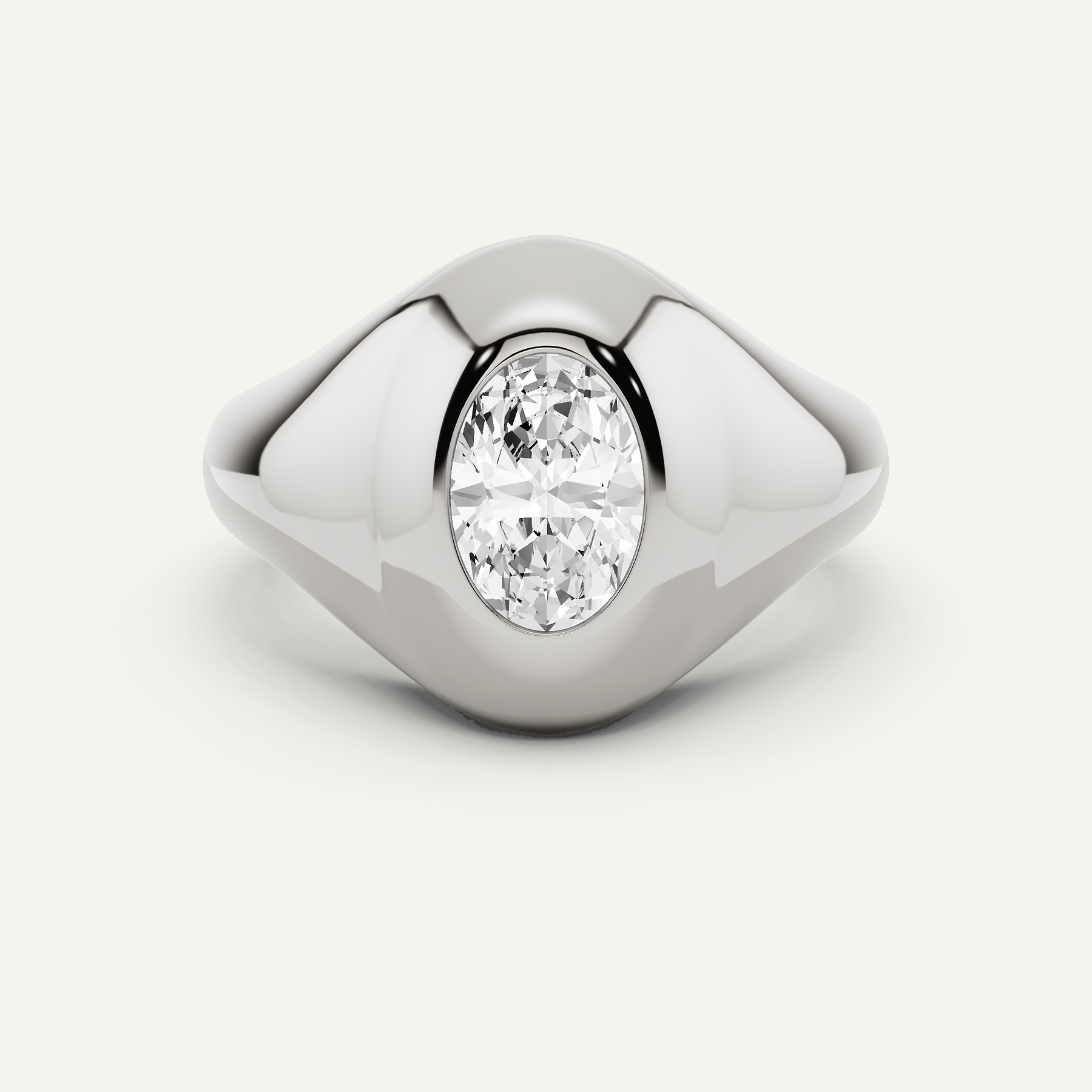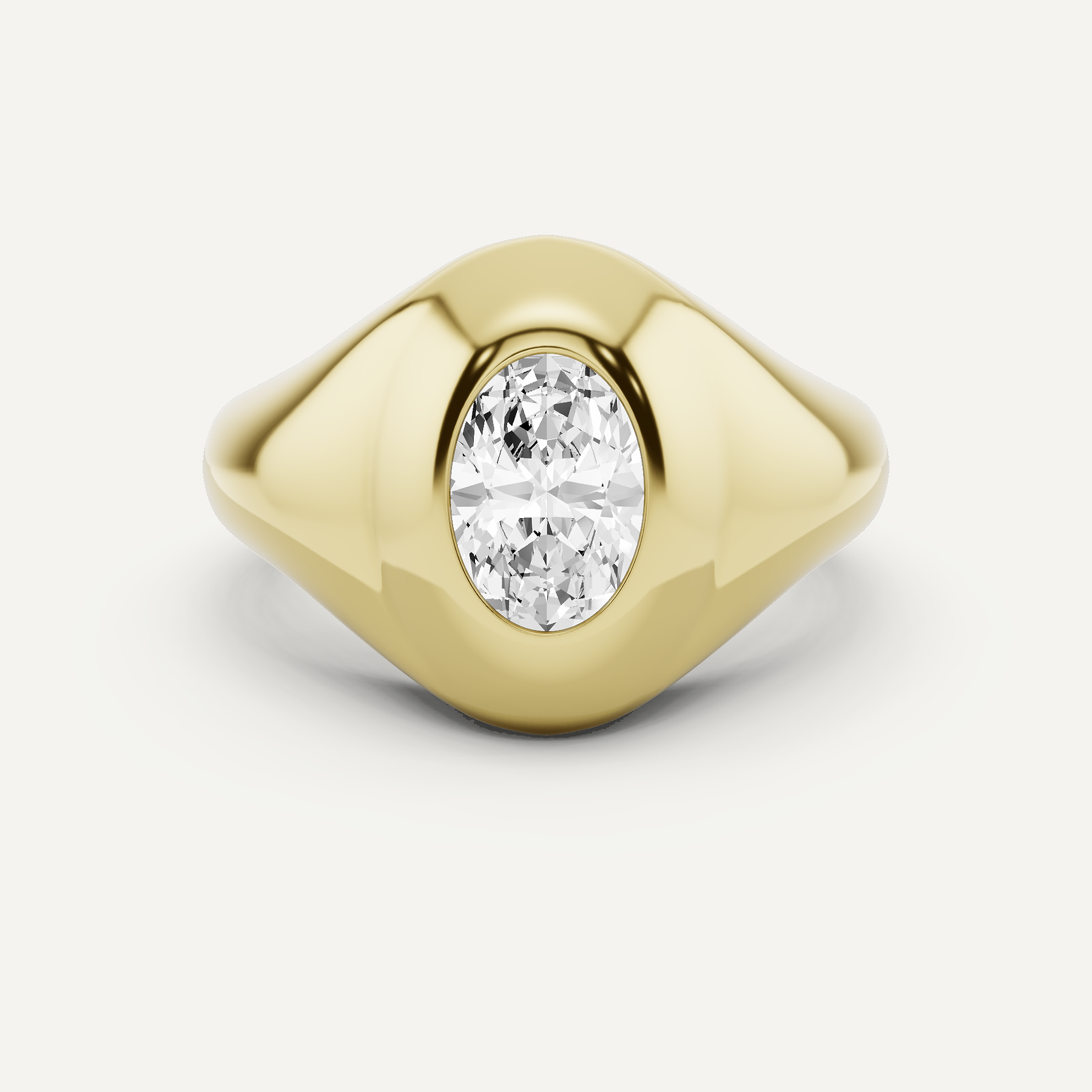 1 ctw Oval Diamond Bezel Set Solitaire Ring with 14K Vermeil