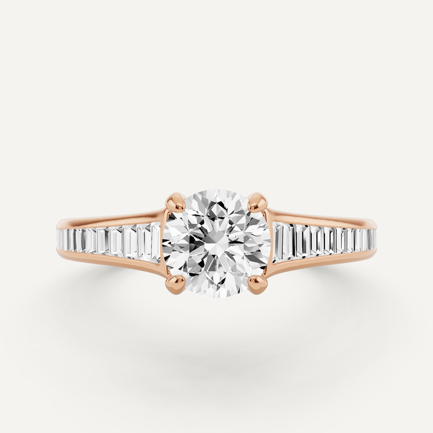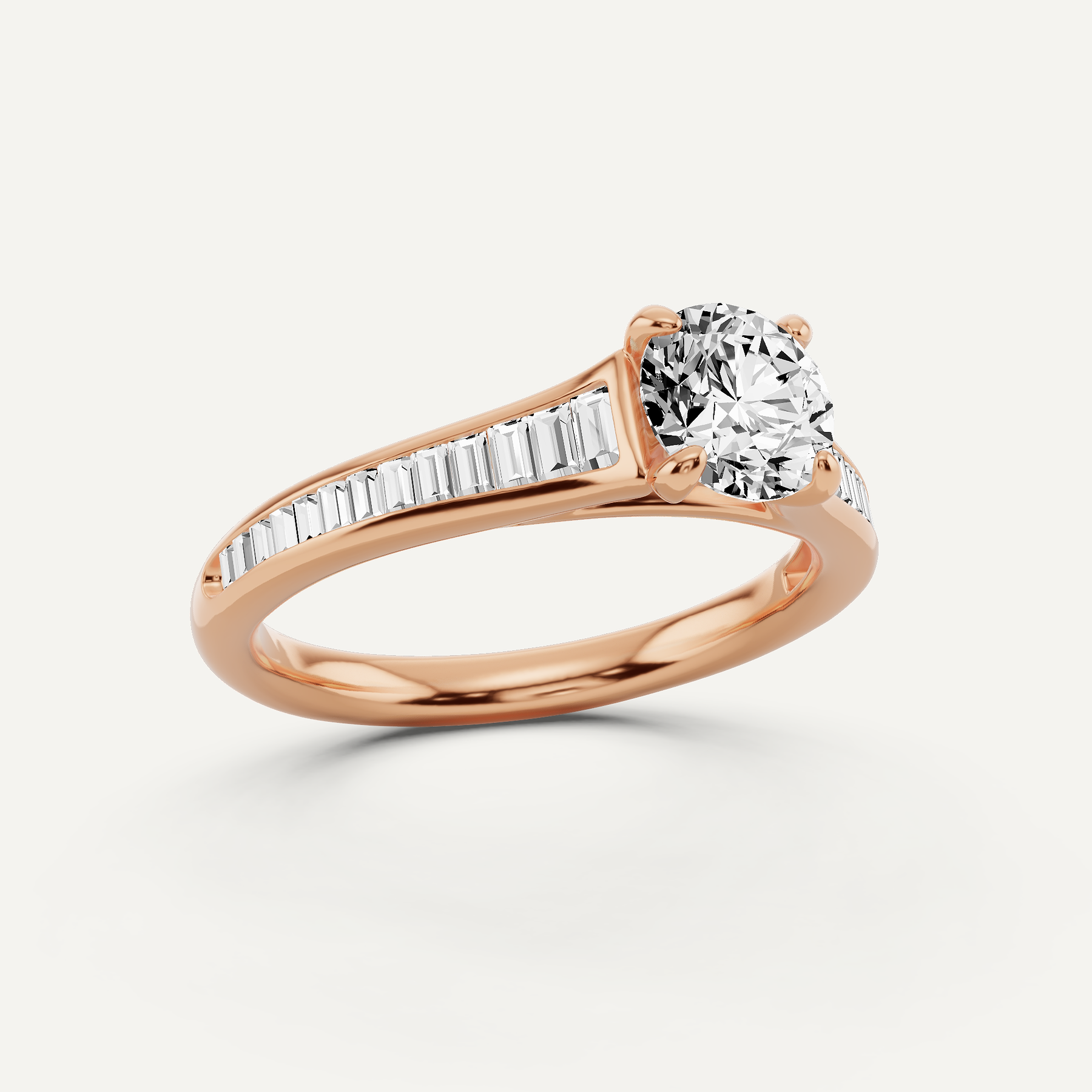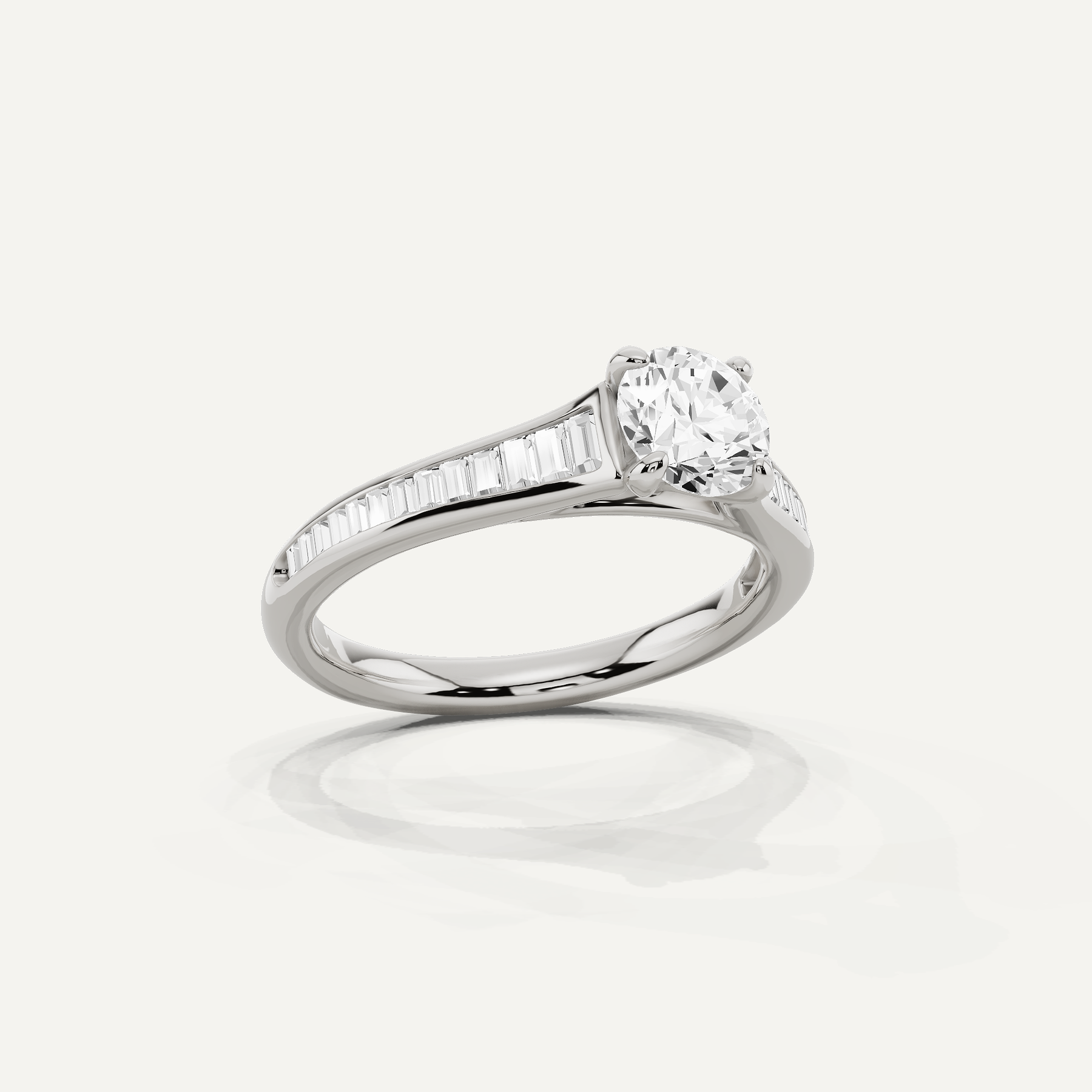1 ctw Round Diamond Baguette Side Stone Engagement Ring