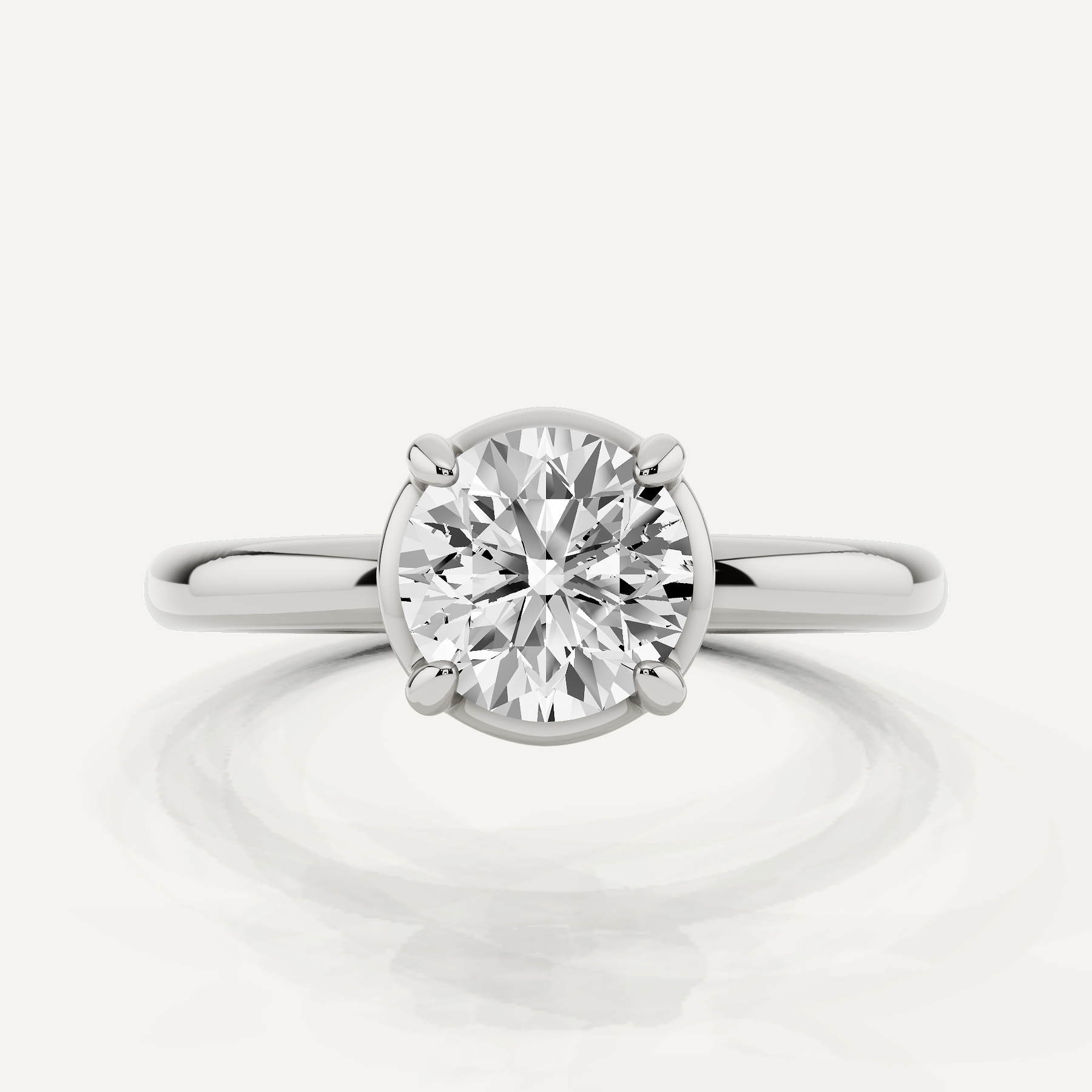 A singular expression of devotion, this 14K white gold solitaire engagement ring cradles a 1.0 ctw round lab grown diamond in a design of pure simplicity. The luminous craftsmanship of the band allows the diamond to take center stage, capturing the light and hearts alike. A piece of timeless artistry, it celebrates the beauty of beginnings with enduring grace.