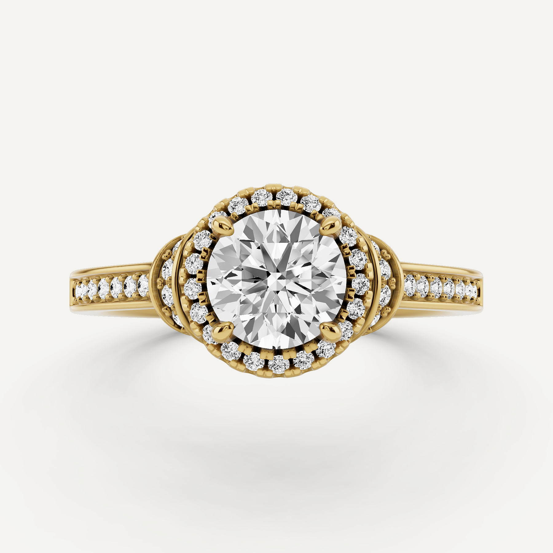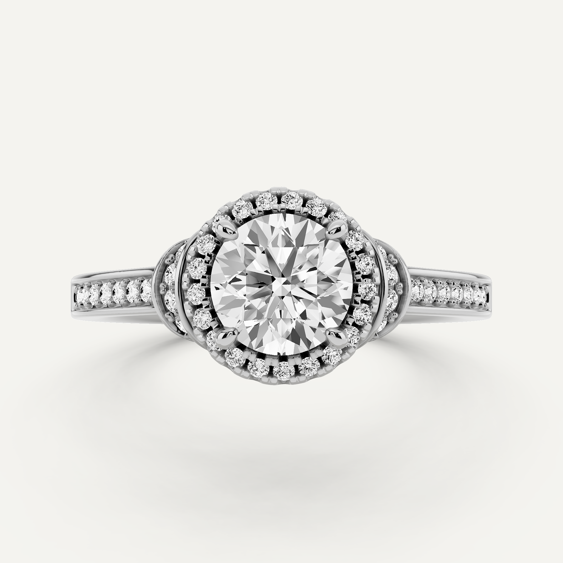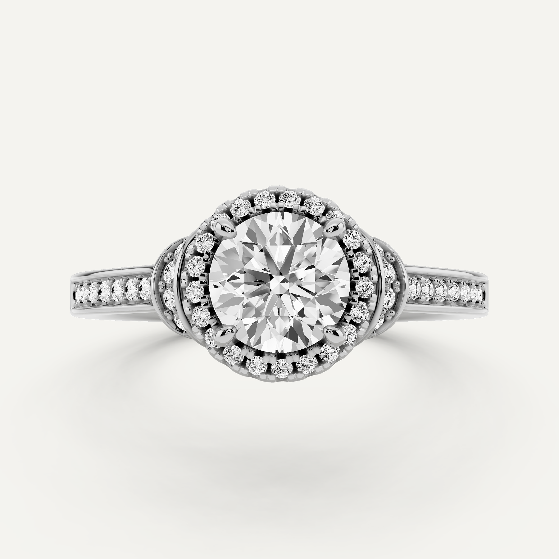 1 ctw Round Diamond French Pave Halo Engagement Ring
