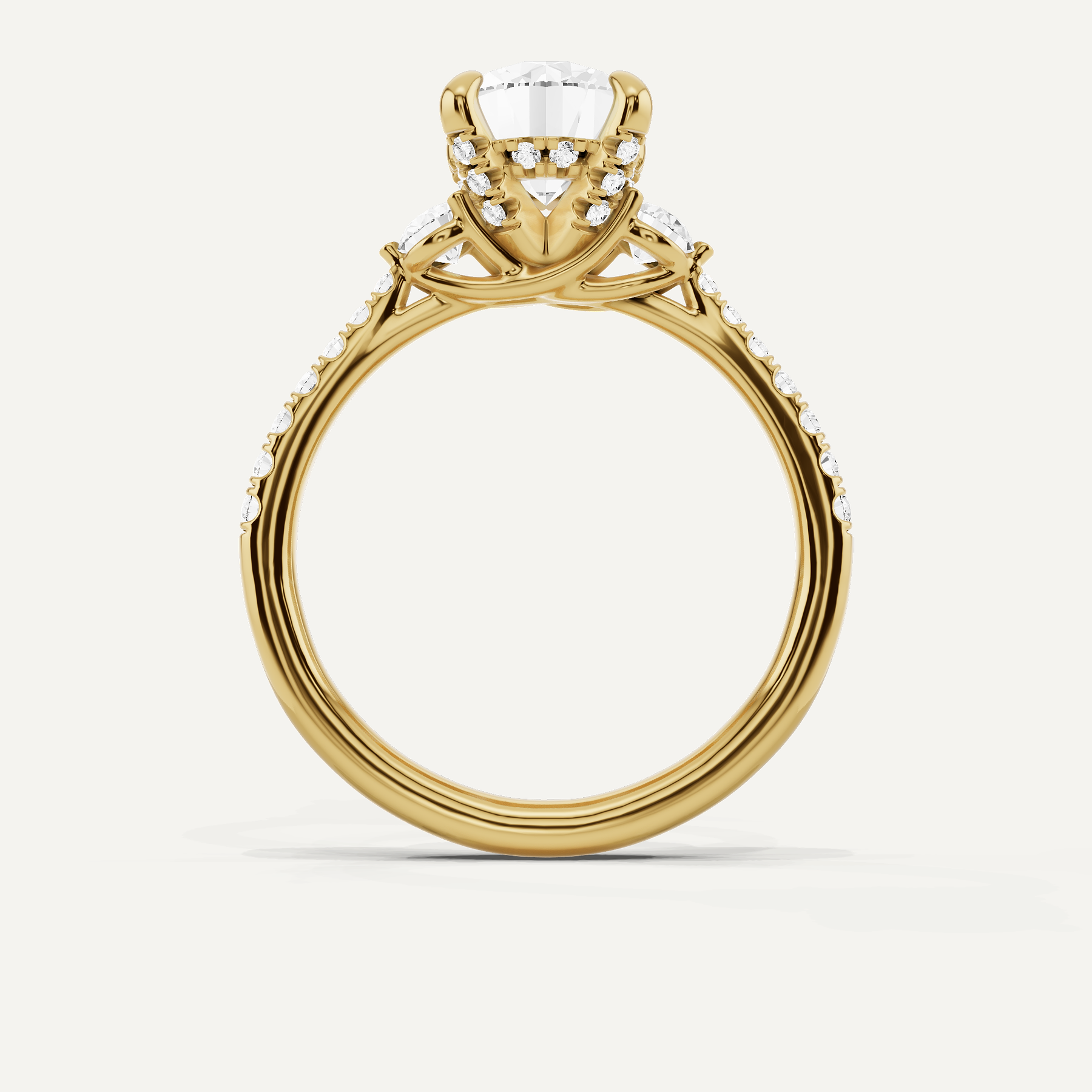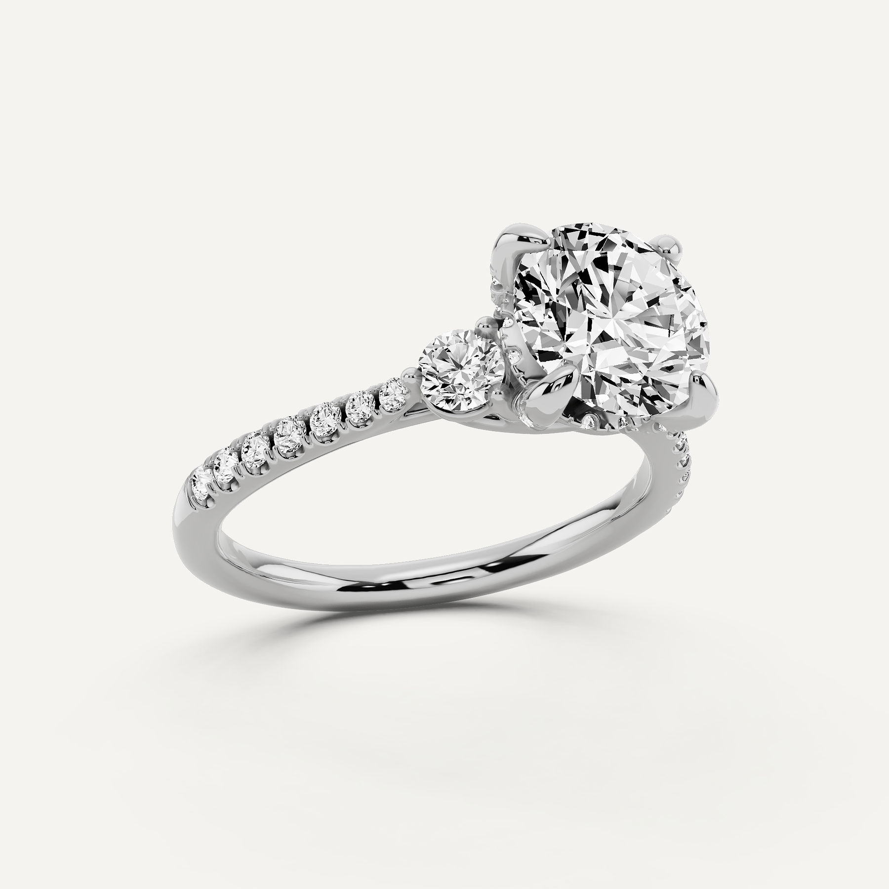 2 ctw Round Diamond Three Stone Hidden Halo Engagement Ring with Side Accent
