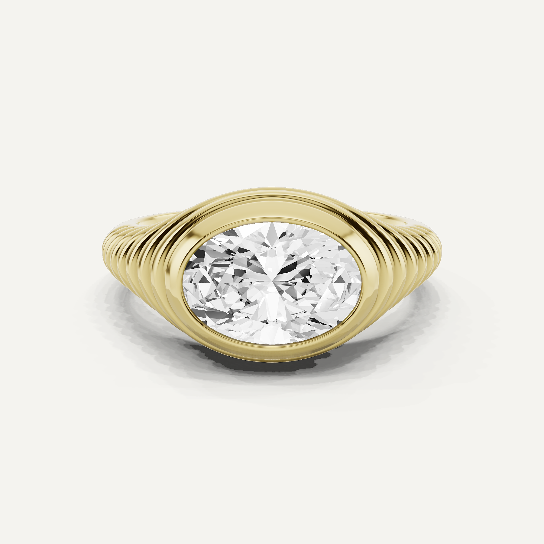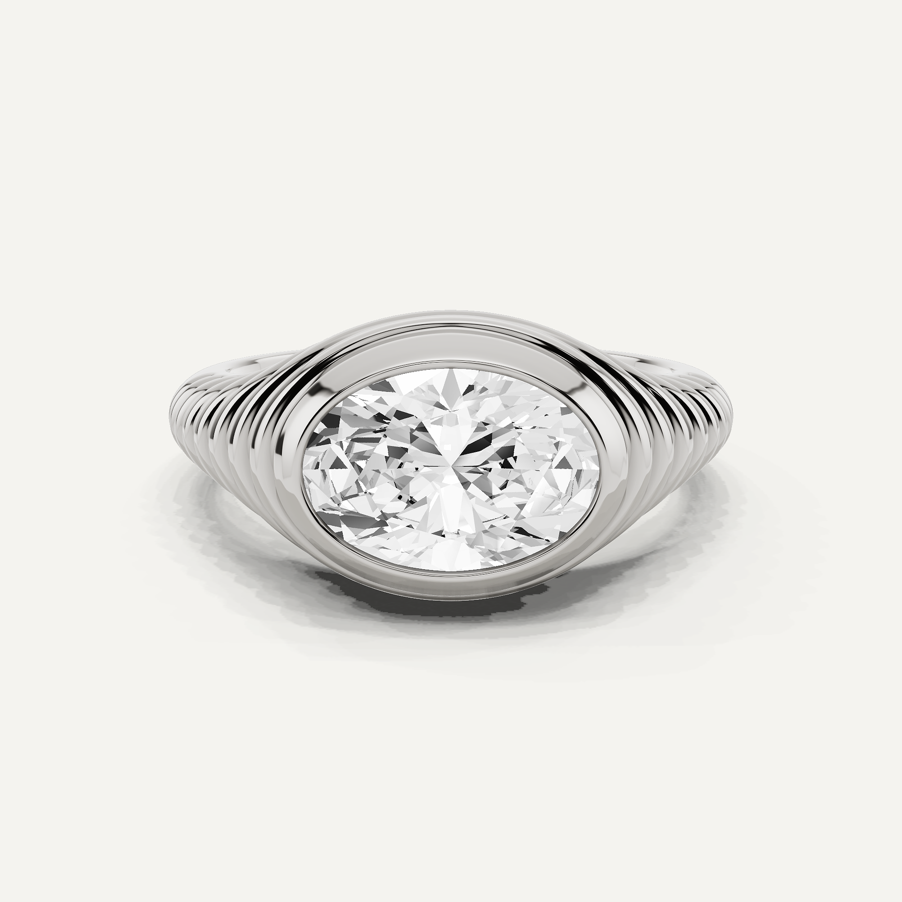 2 ctw Oval Diamond Bezel Set Silver East-West Solitaire Ring with 14K Vermeil