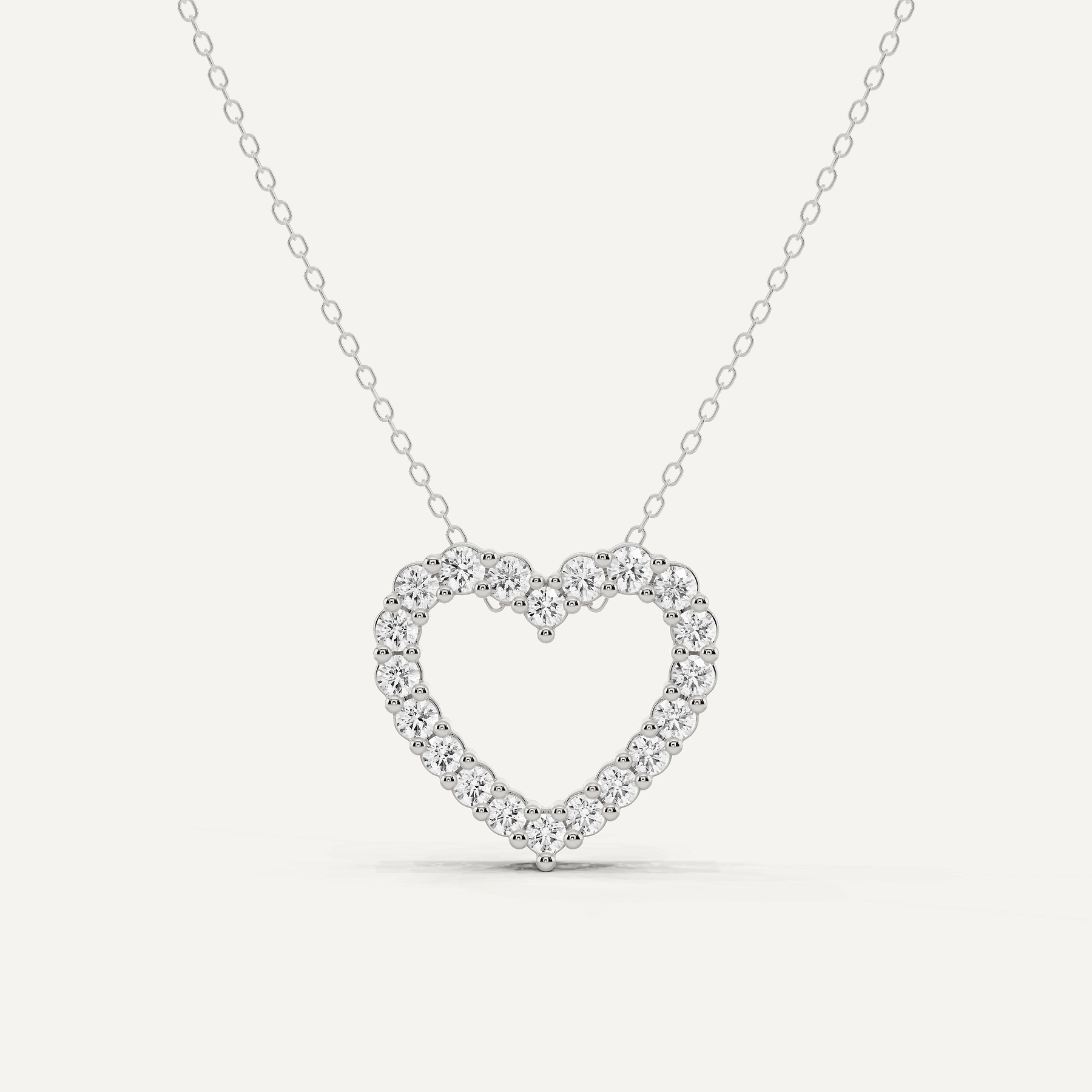 1 ctw Round Diamond Prong Set Heart Pendant Set With Chain in Sterling Silver