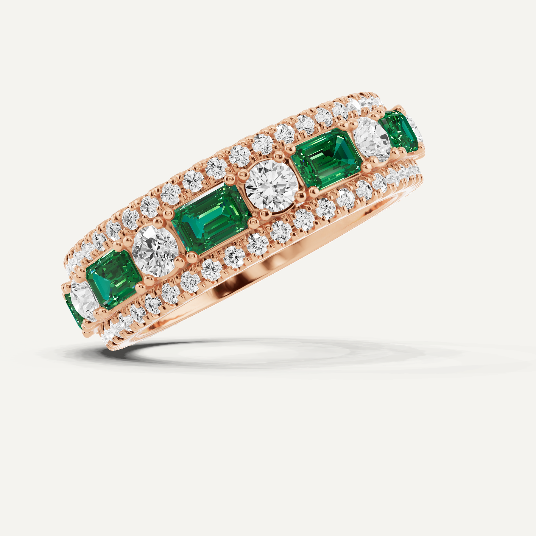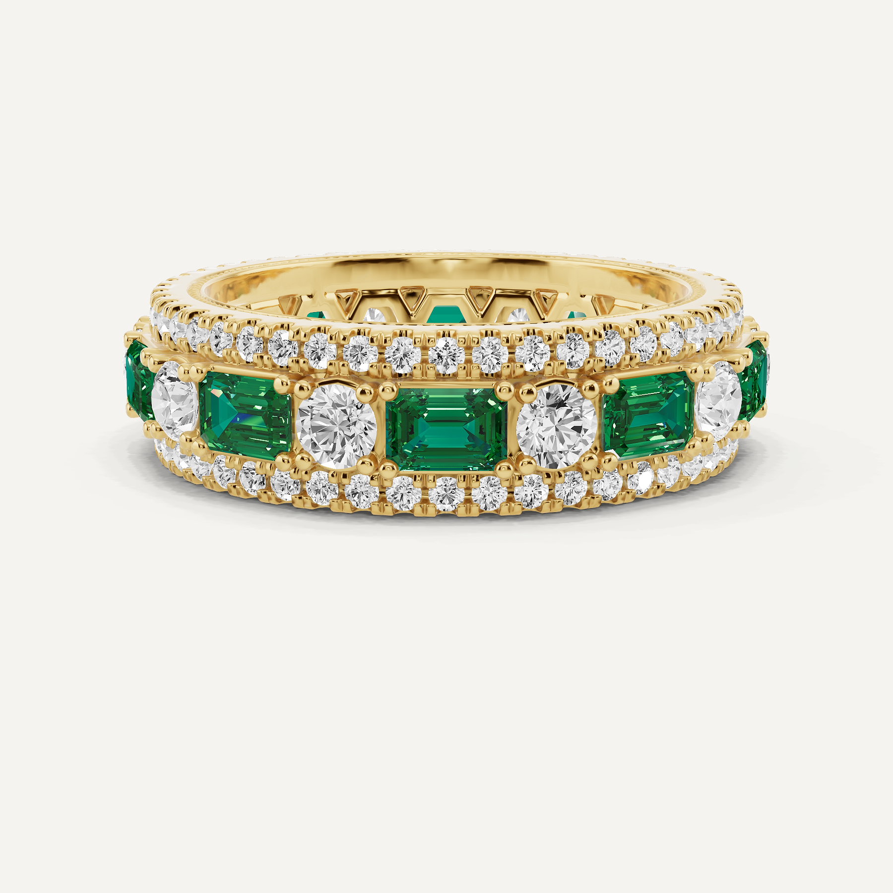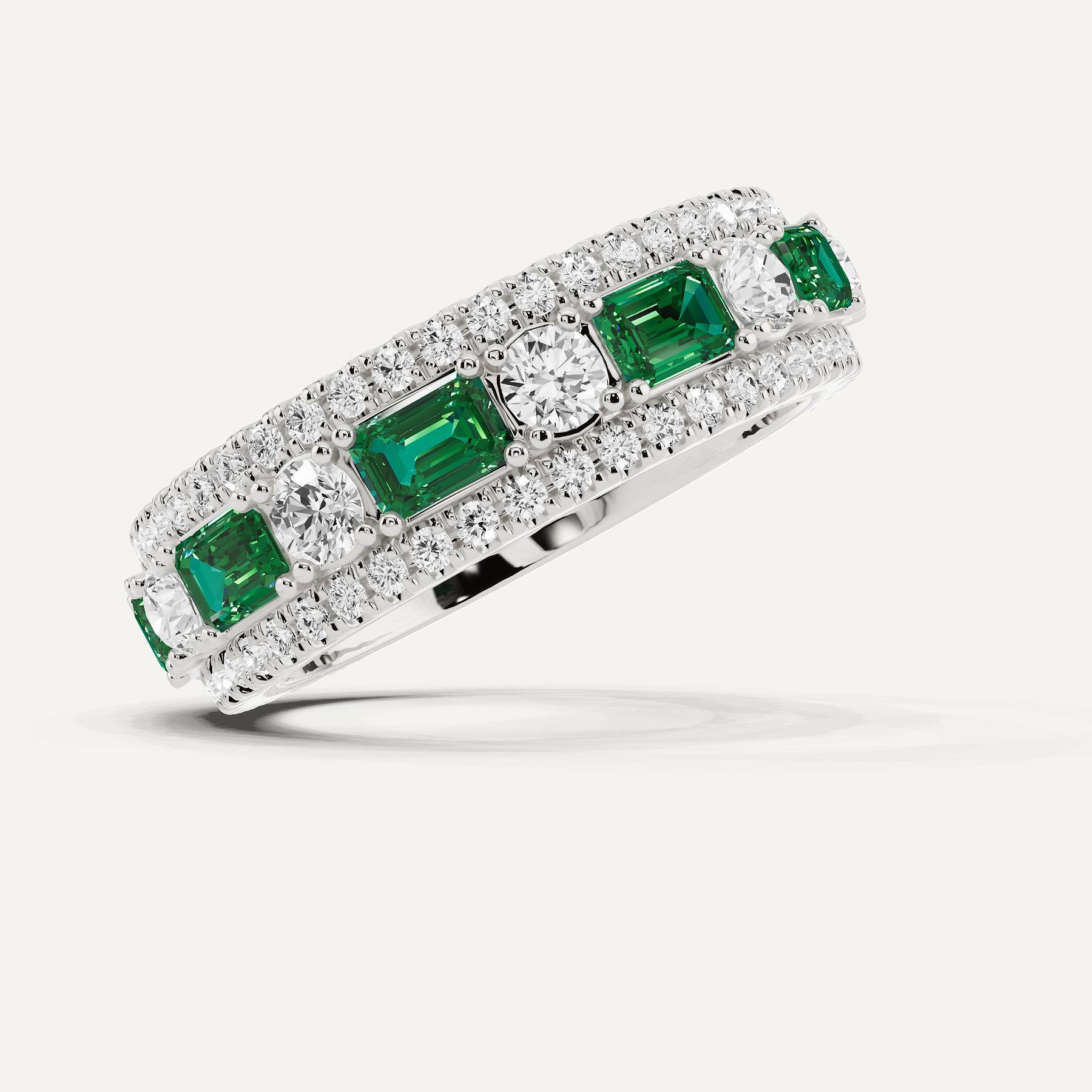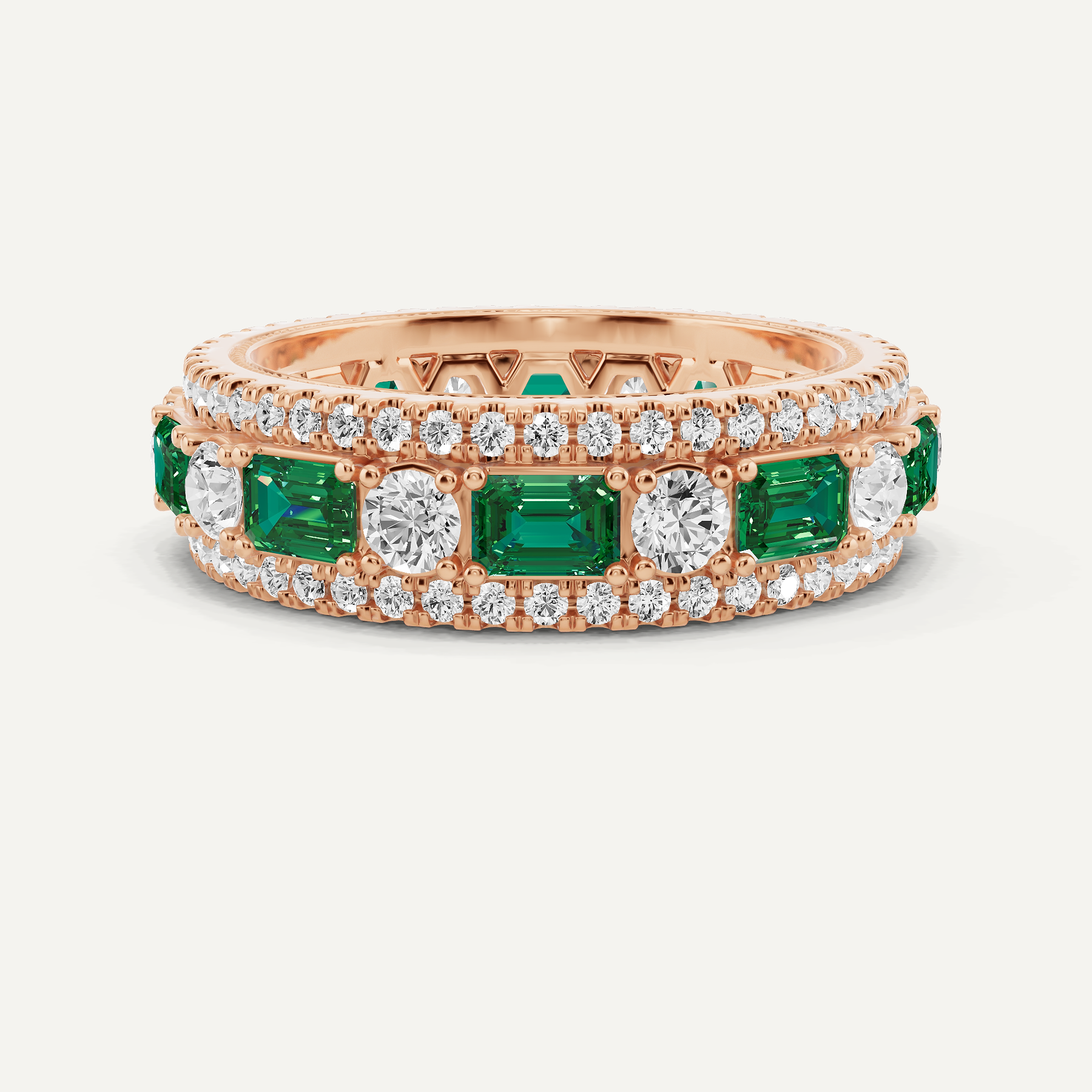 3 ctw Created Emerald and Round Diamond Three Row Eternity Band