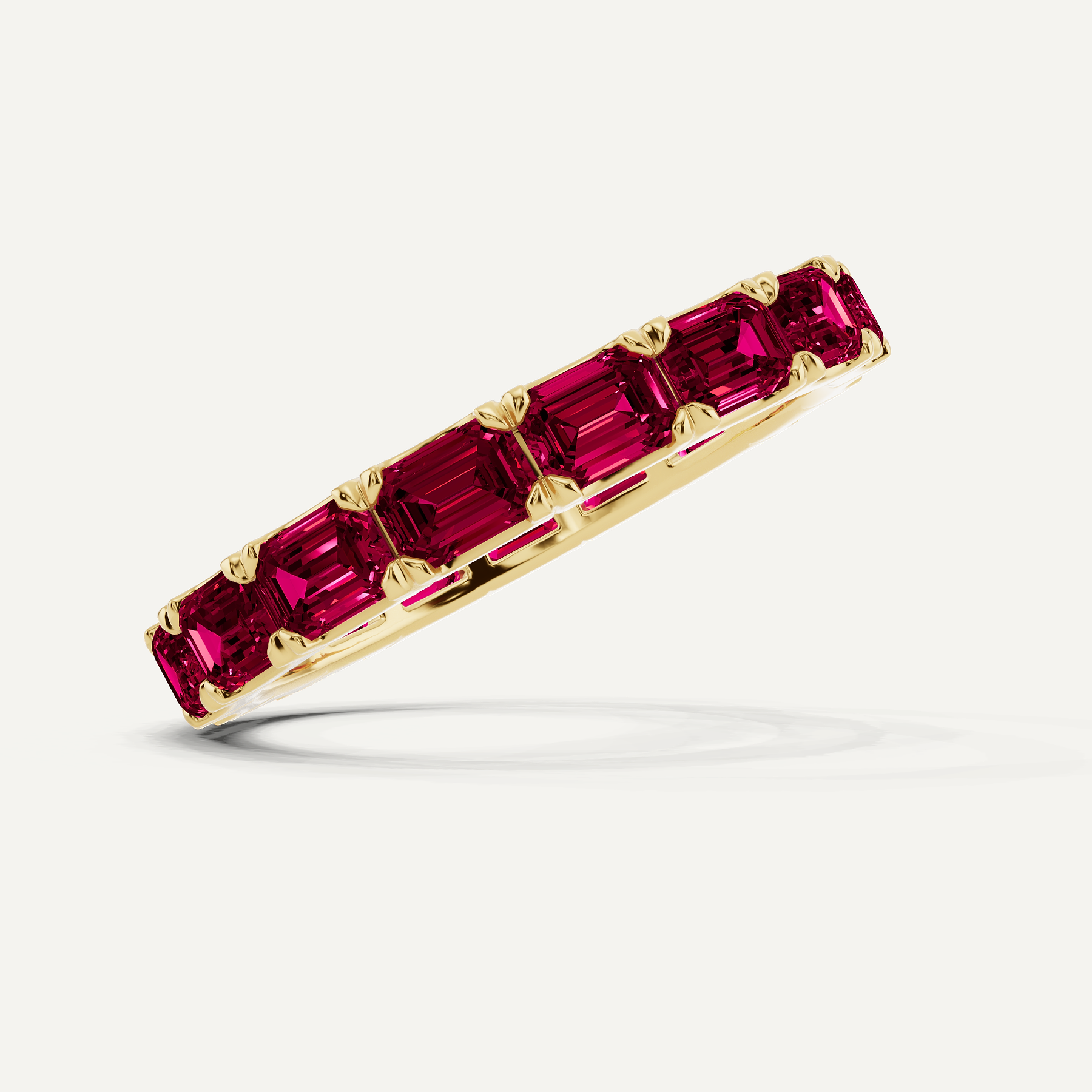 3 ctw Emerald Created Ruby East-West Eternity Band