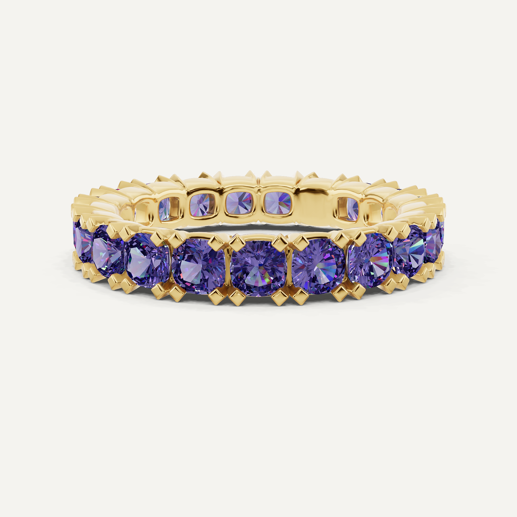Make a statement with our Cushion Diamond Eternity Band. The cushion-cut diamonds encircle your finger in brilliance, providing a chic and affordable way to symbolize your eternal love.