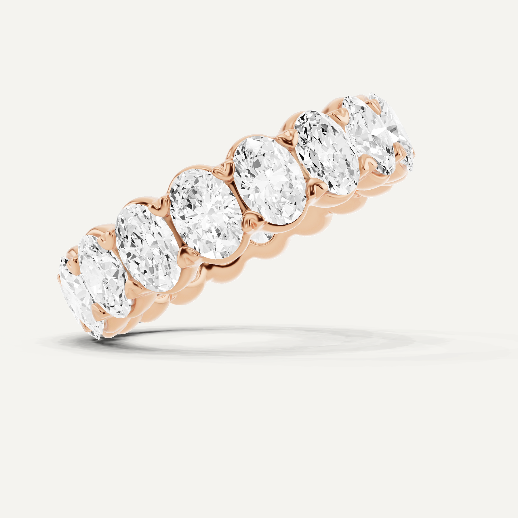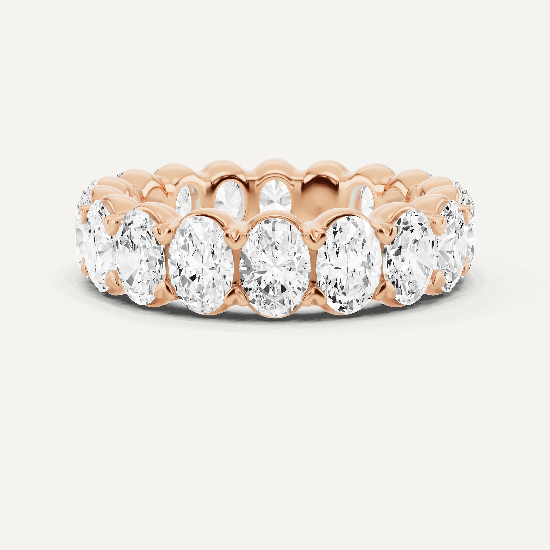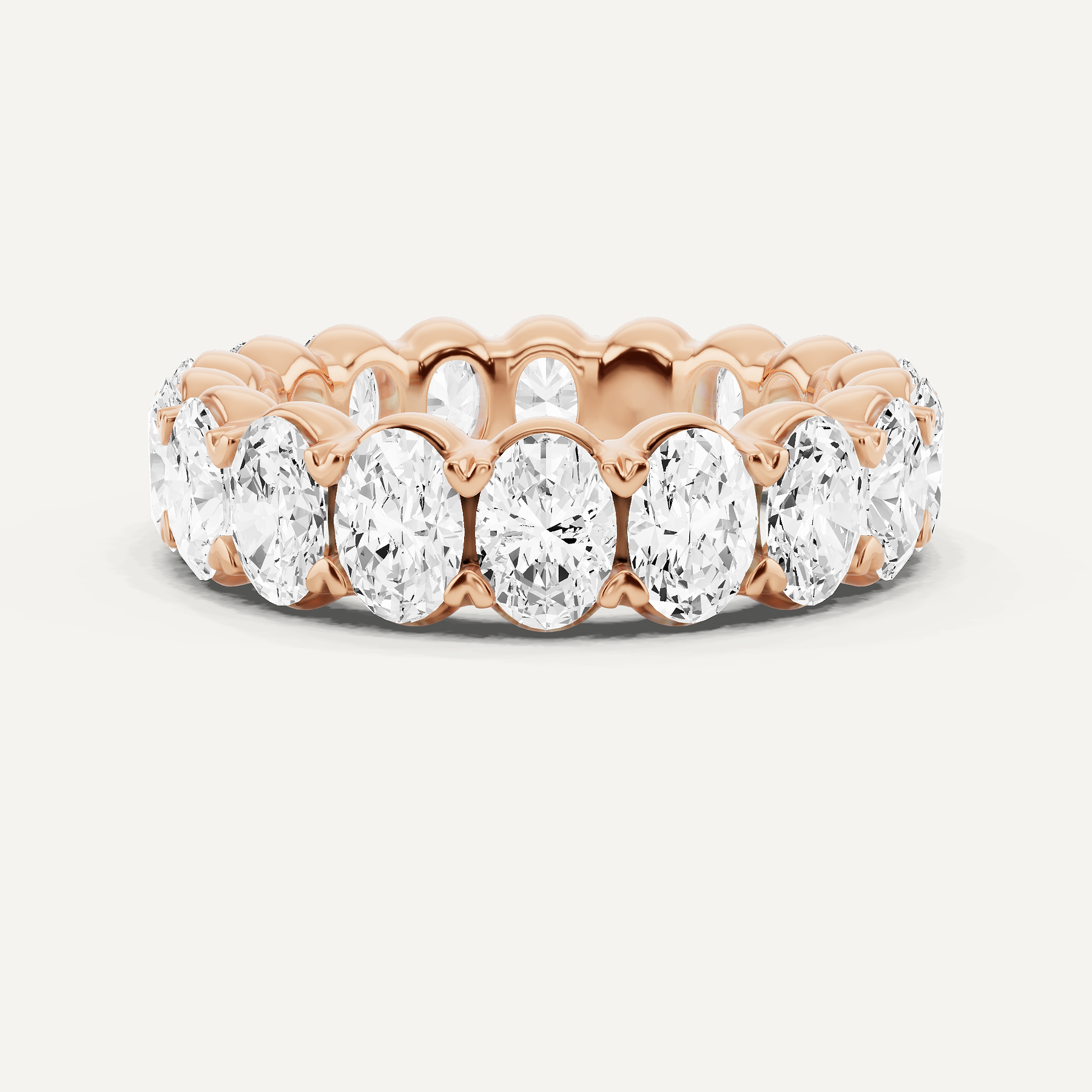 An unbroken circle of devotion, this eternity band brings a poetic grace to life's most cherished moments. Each exquisite oval lab grown diamond is set in 14K rose gold, its soft hue harmonizing with the fiery beauty of the stones. Expertly crafted, this design celebrates the enduring nature of love with an artistry that transforms it into a treasure to be held forever.
