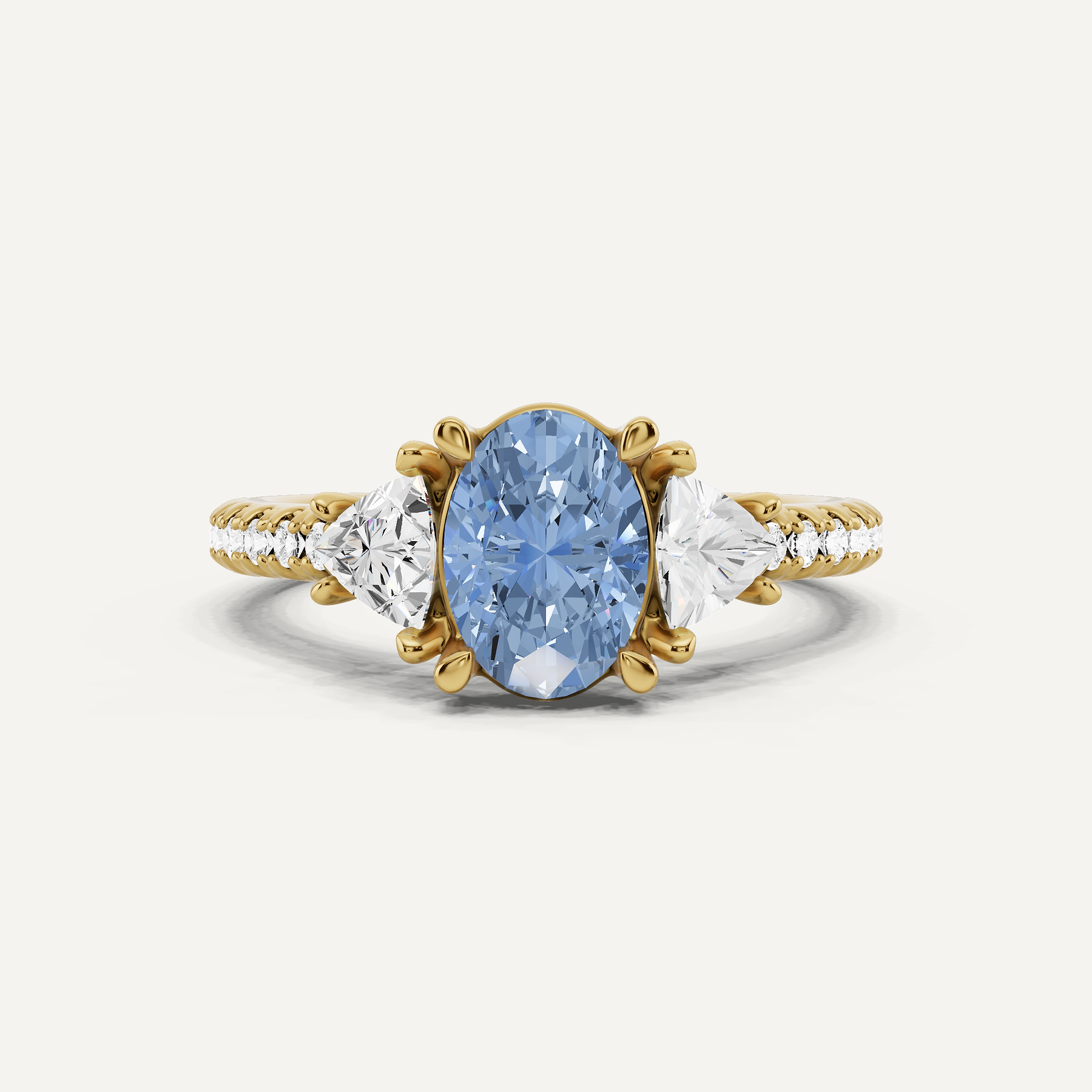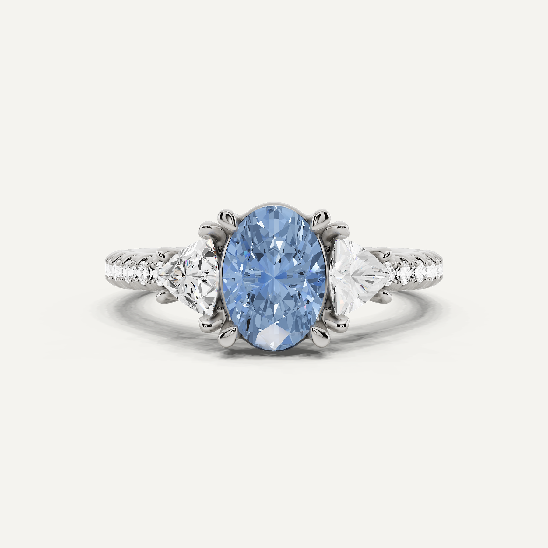 1 1/2 ctw Oval Created Aquamarine Three Stone Engagement Ring With Trillion Side Stones