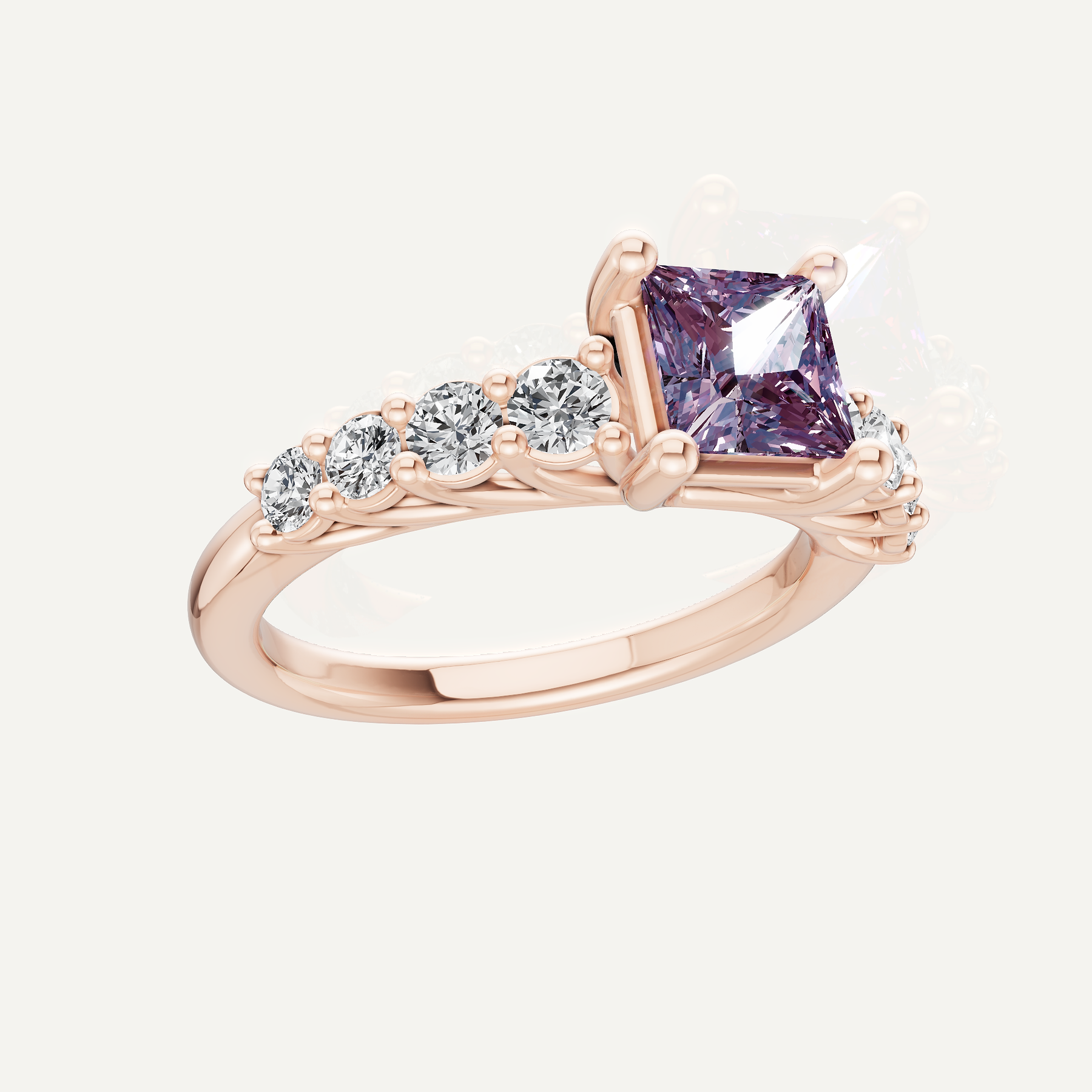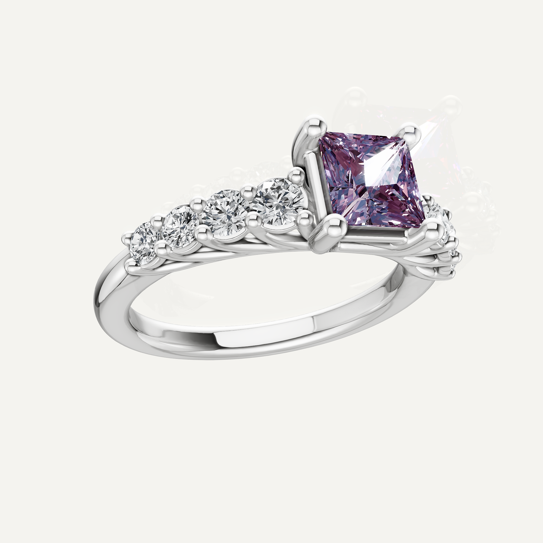 Shine brilliantly without compromising your budget - our Princess Sidestone Diamond Engagement Ring is an exquisite yet budget-conscious symbol of your love and commitment, Immerse yourself in the delicate distinctions that set white gold, yellow gold, and rose gold apart, and thoughtfully assess your individual preference for lab-grown or naturally formed diamonds
