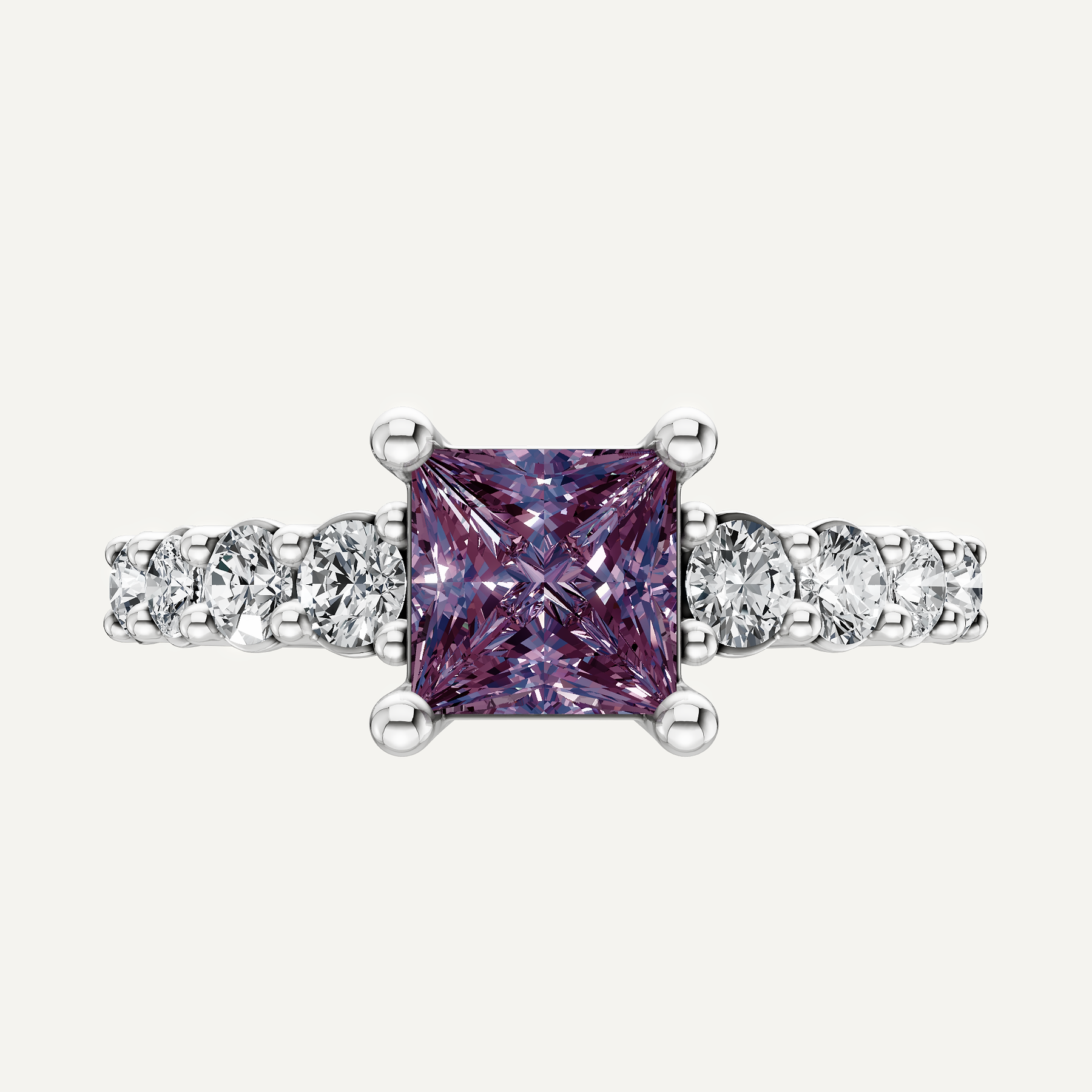 1 1/2 ctw Princess Created Alexandrite Graduating Side Stone Engagement Ring