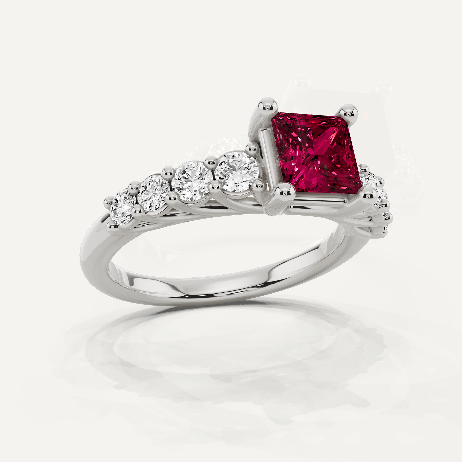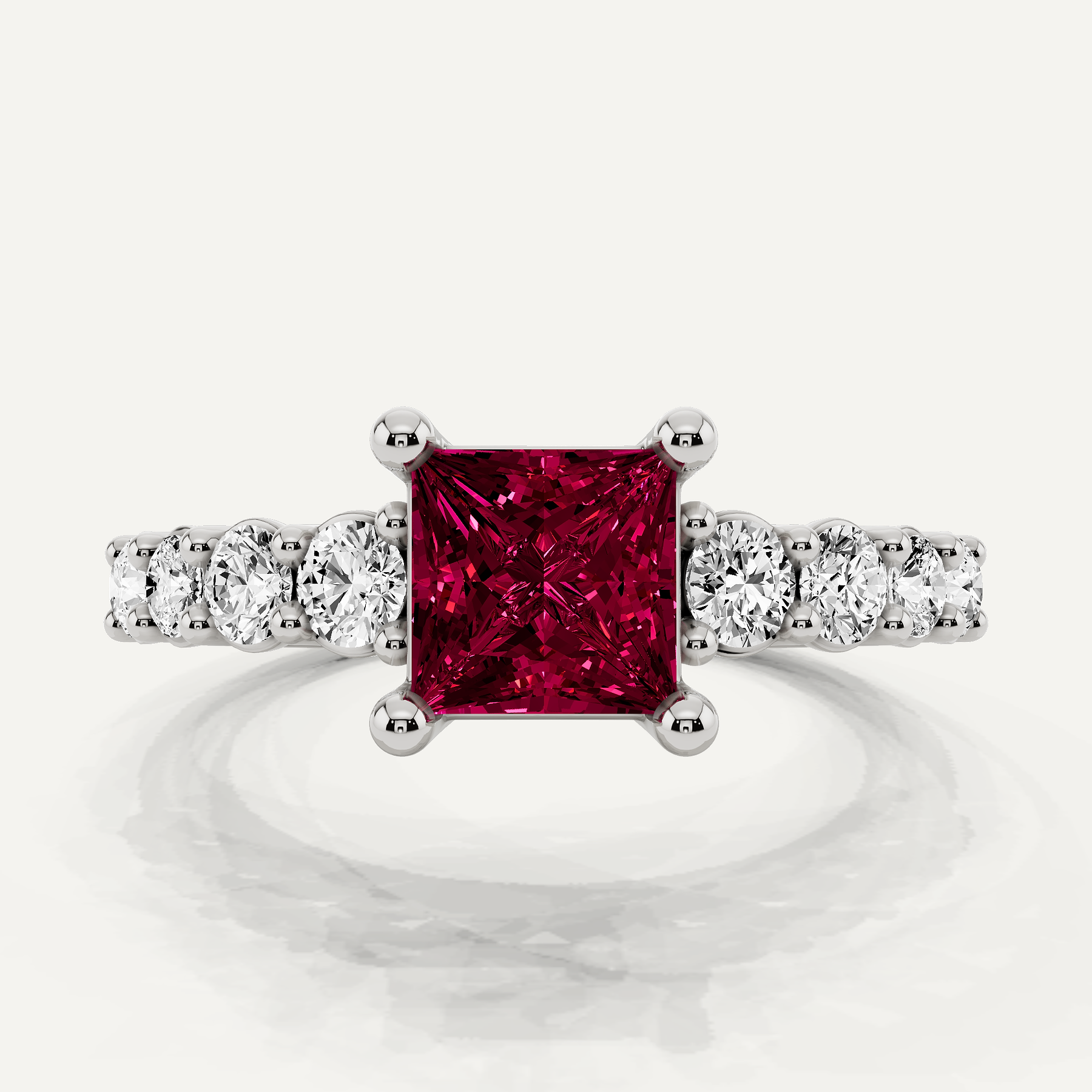 1 1/2 ctw Princess Created Ruby Graduating Side Stone Engagement Ring