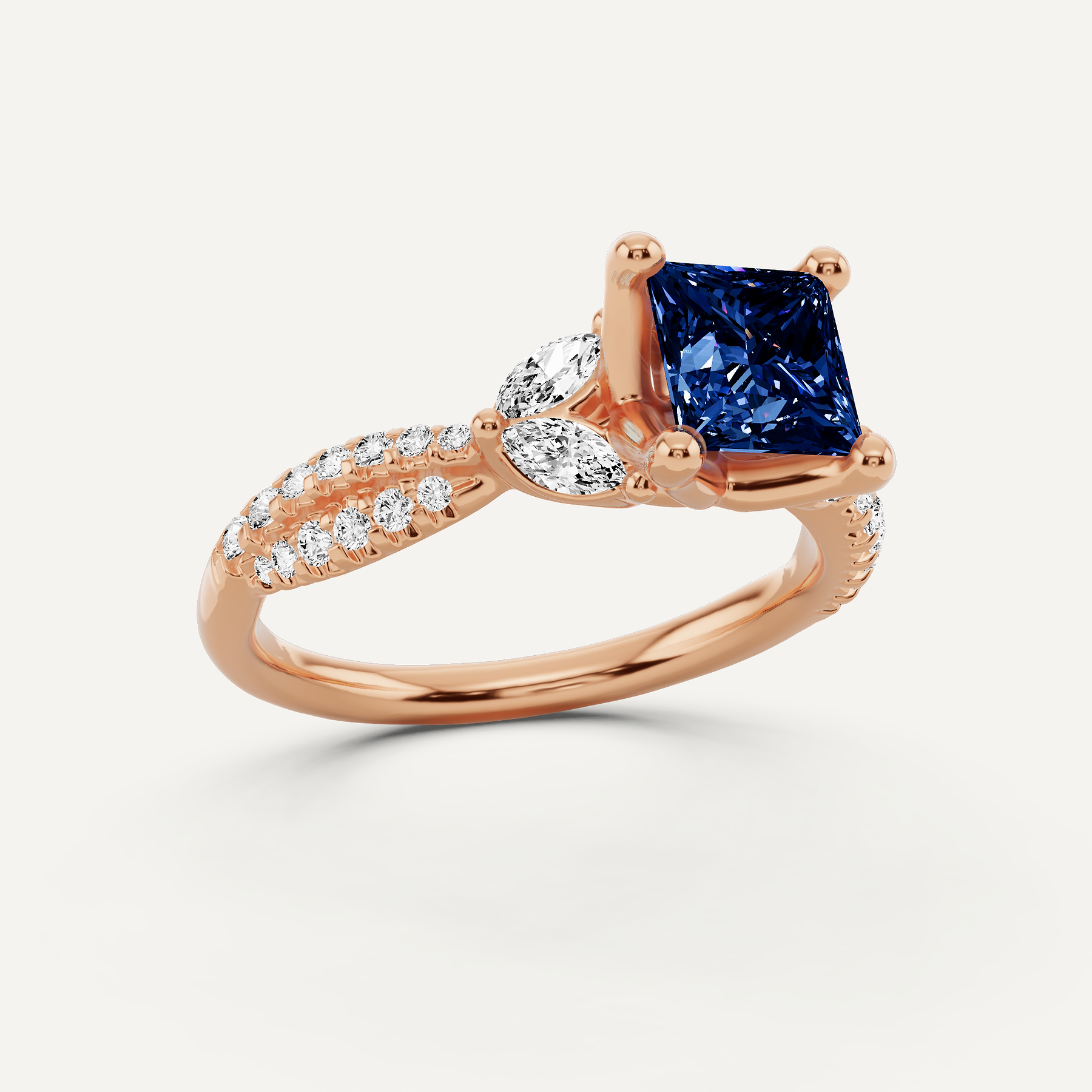 1 1/3 ctw Princess Created Sapphire Side Stone Engagement Ring