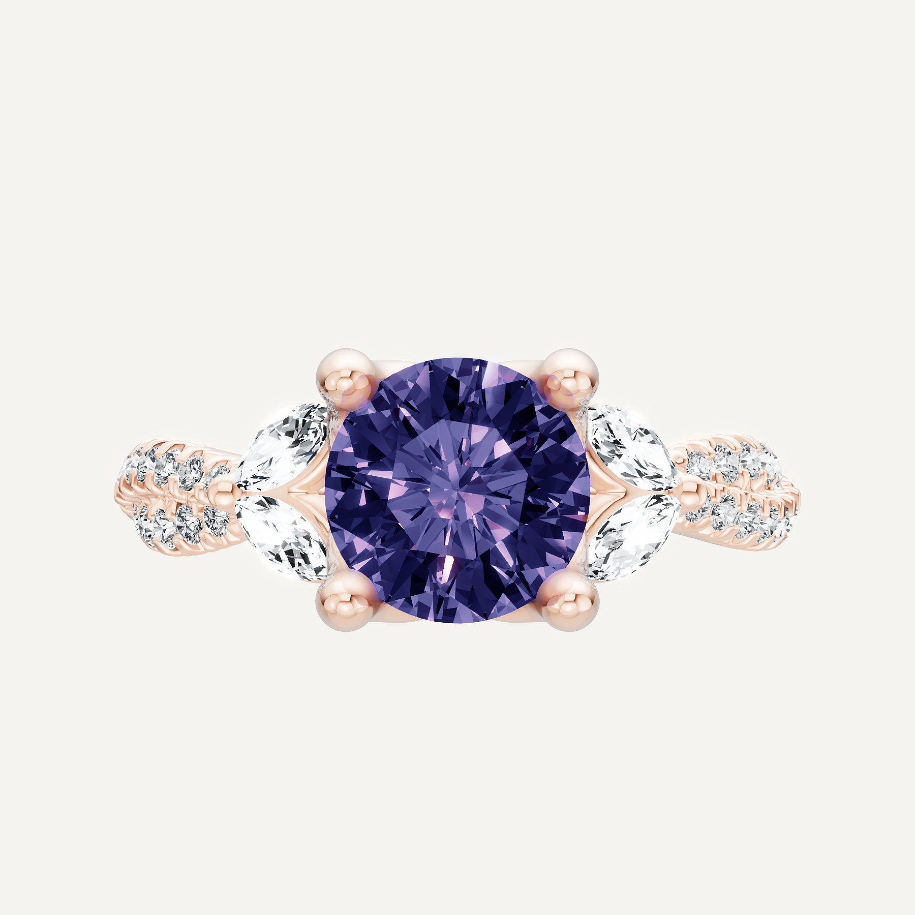 1 1/3 ctw Round Created Alexandrite Side Stone Engagement Ring
