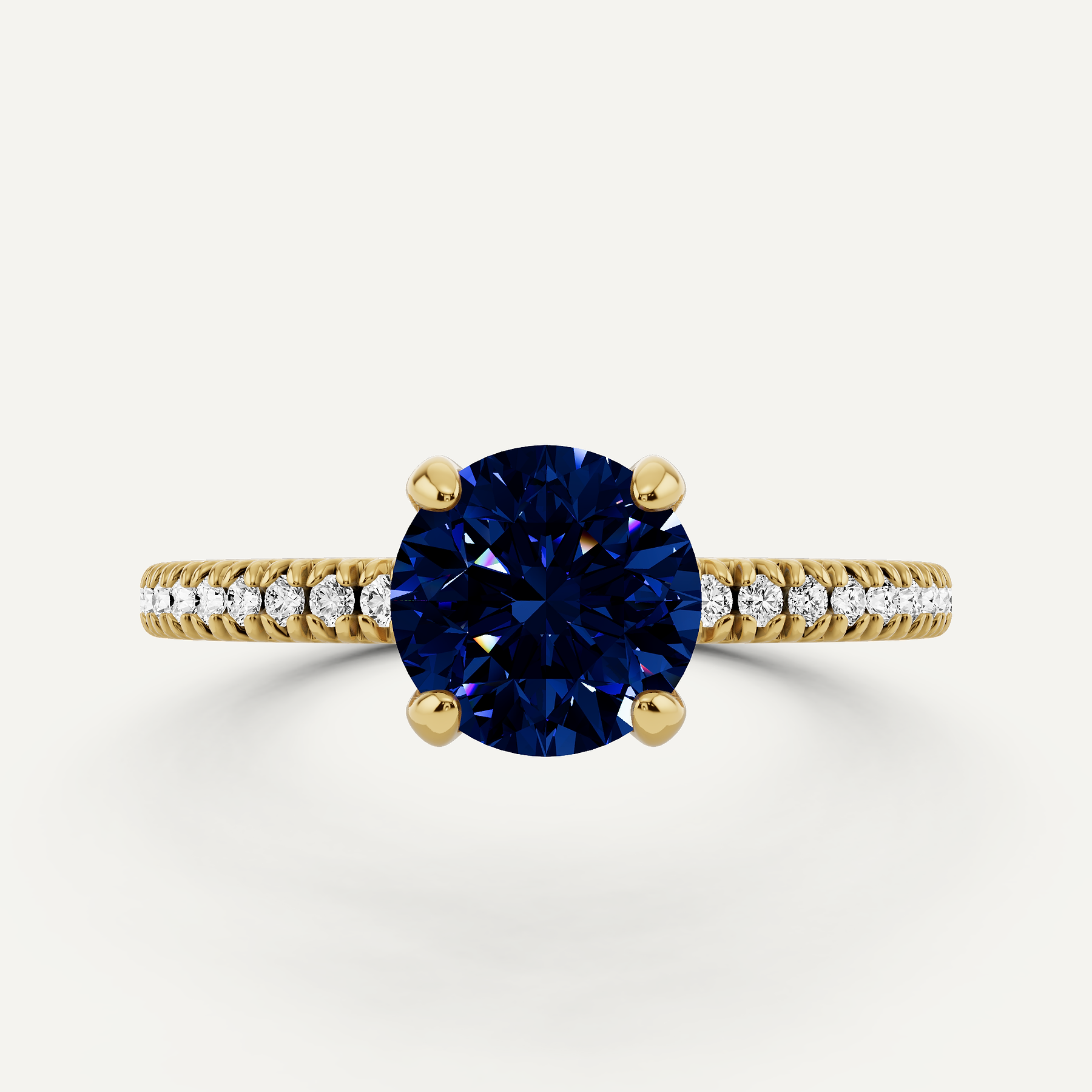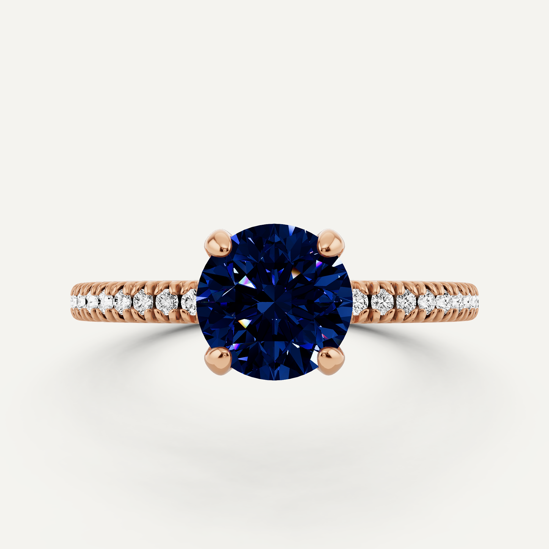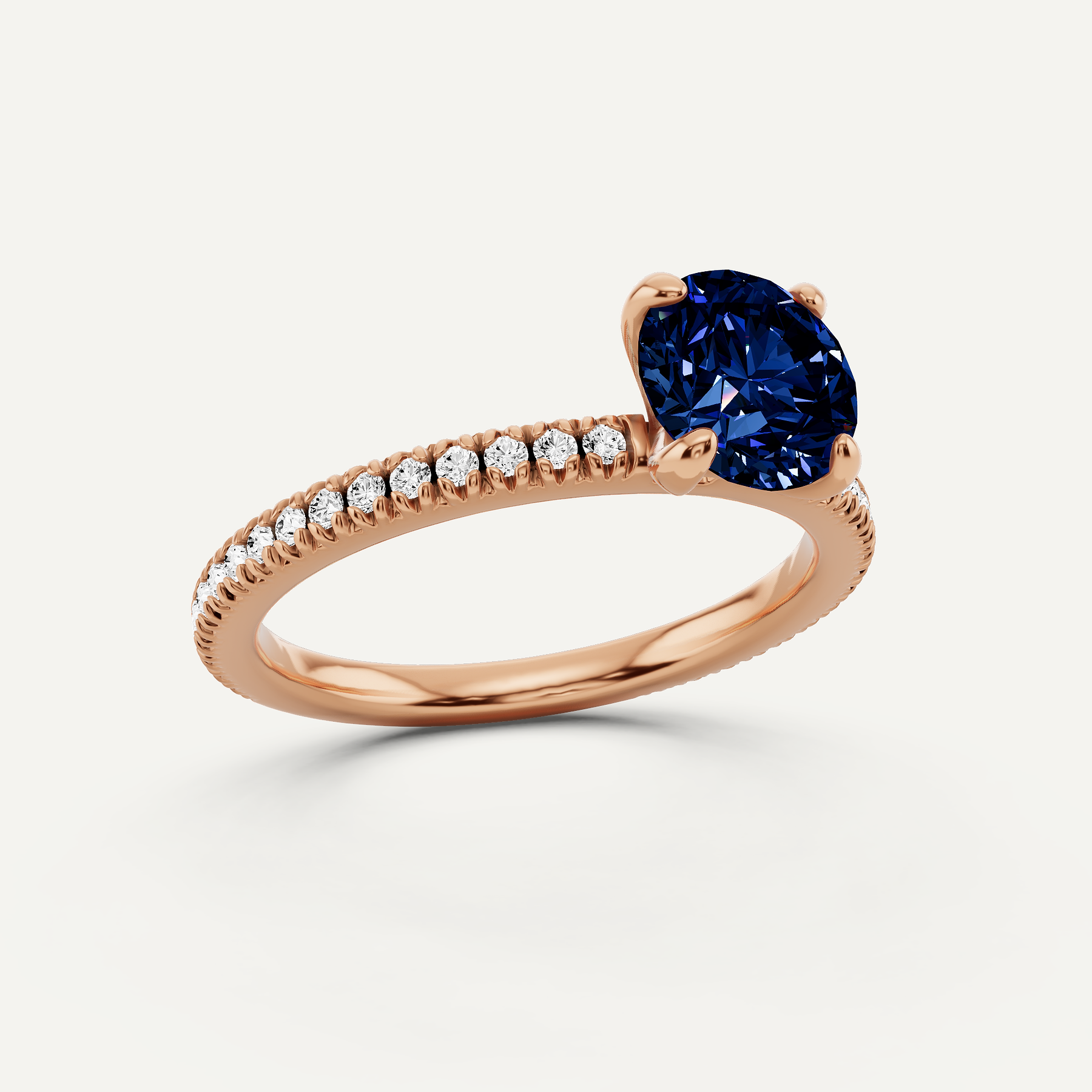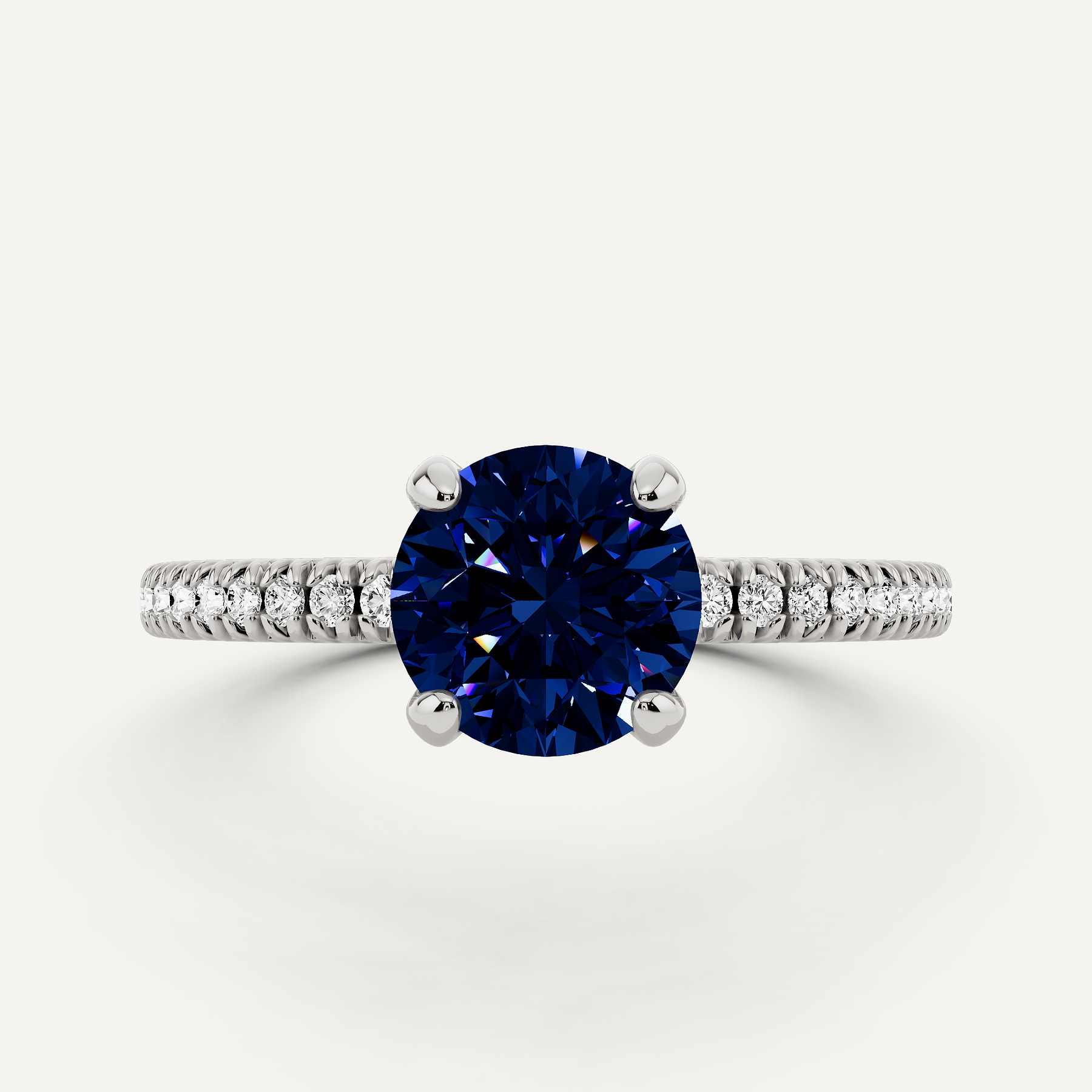 1 1/4 ctw Round Created Blue Sapphire Pave Set Side Stone Engagement Ring
