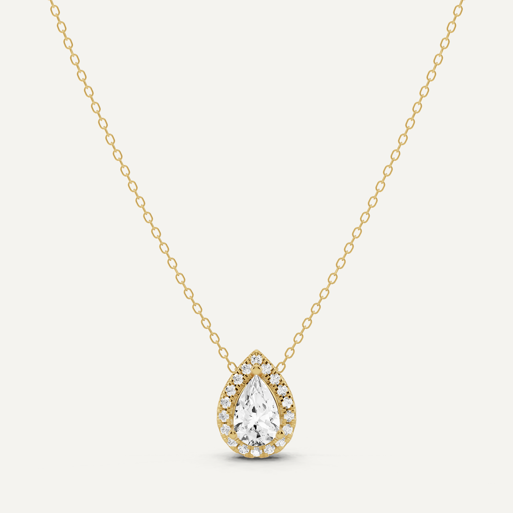 Elevate your style without breaking the bank with our Pear Diamond Halo Fashion Pendant. This exquisite piece combines the timeless allure of Pears with a dazzling diamond halo, offering a perfect blend of sophistication and affordability.