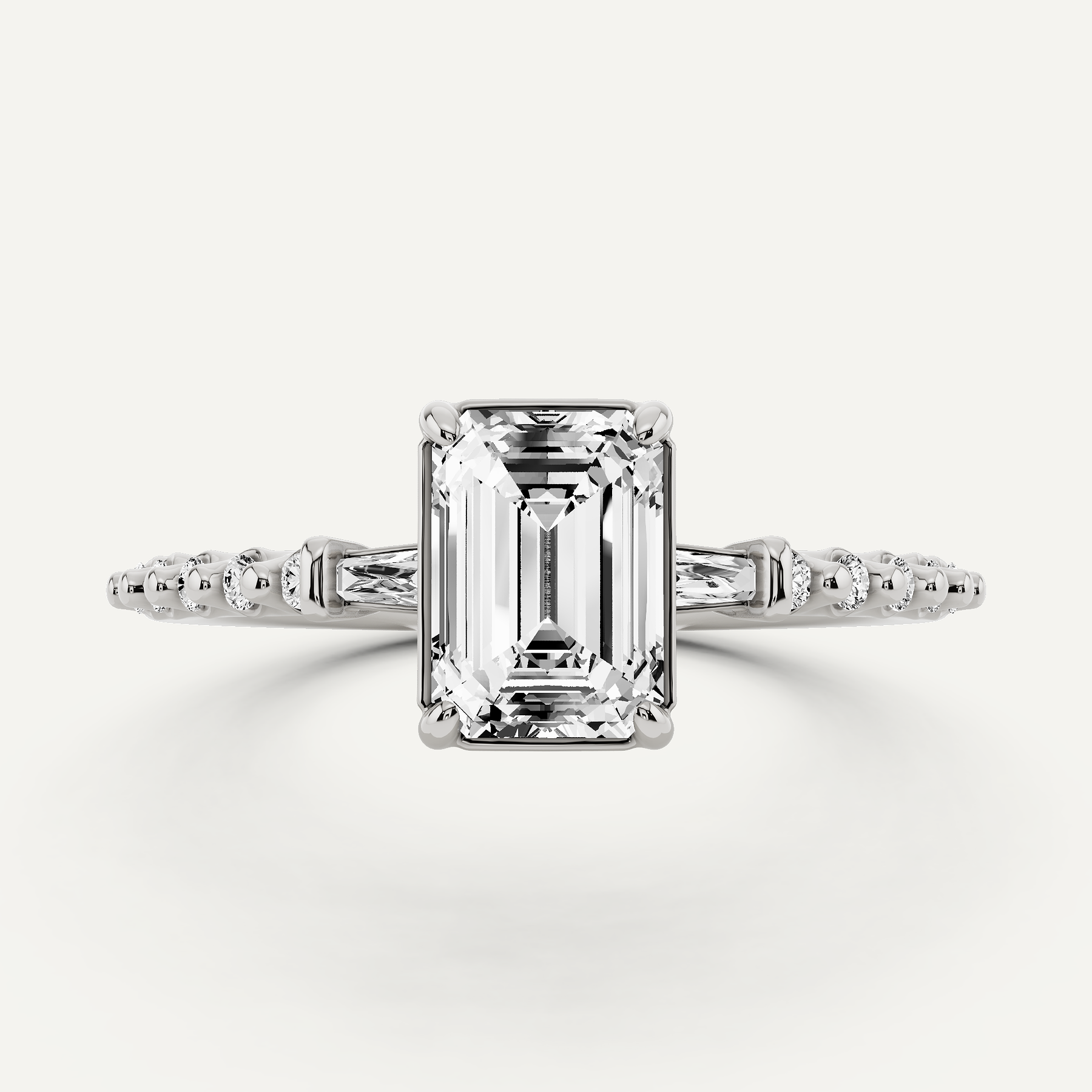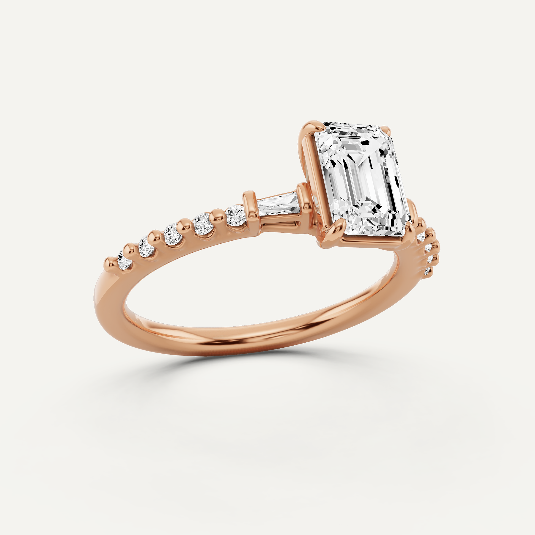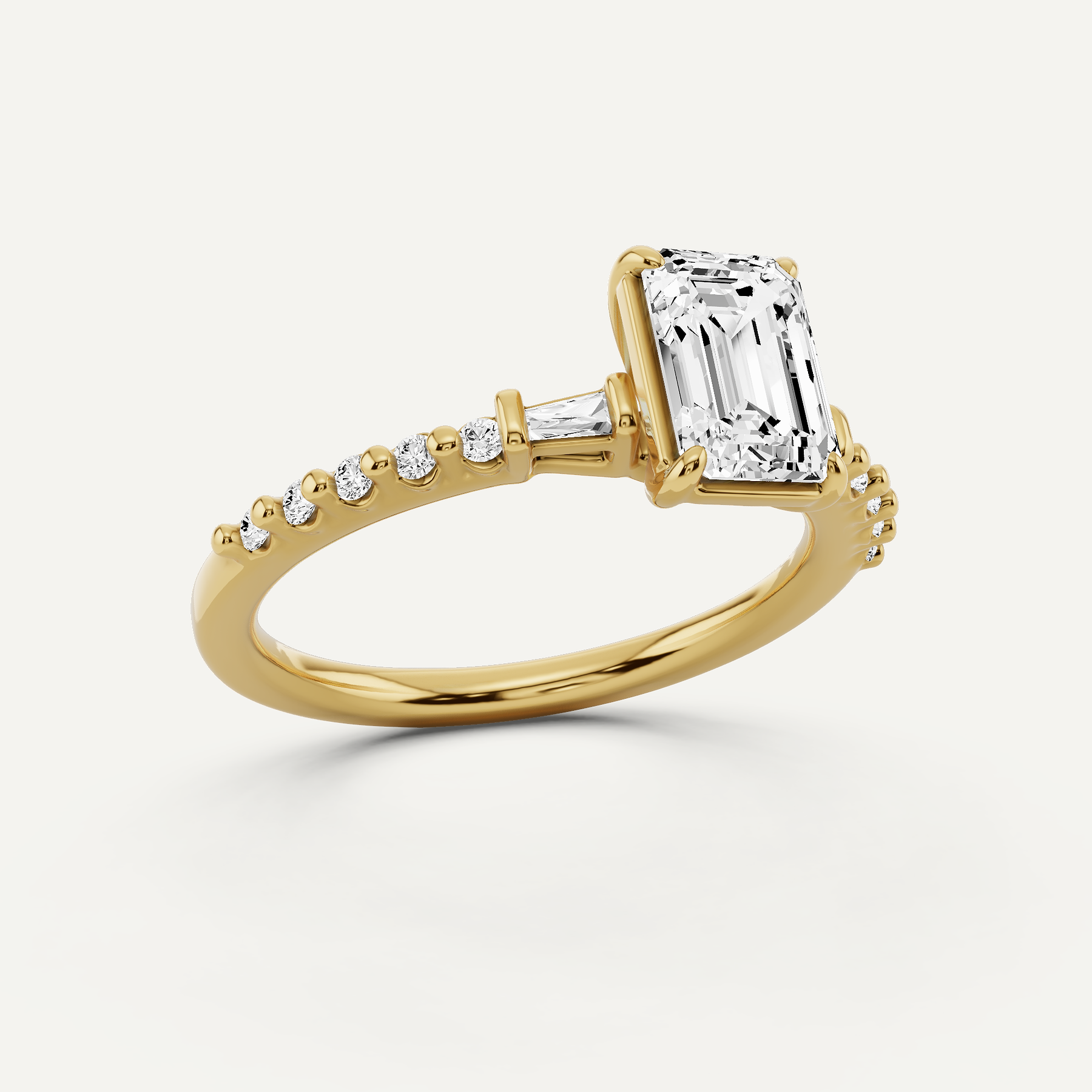 1 1/6 ctw Emerald Diamond Baguette Sides Side Stone Engagement Ring
