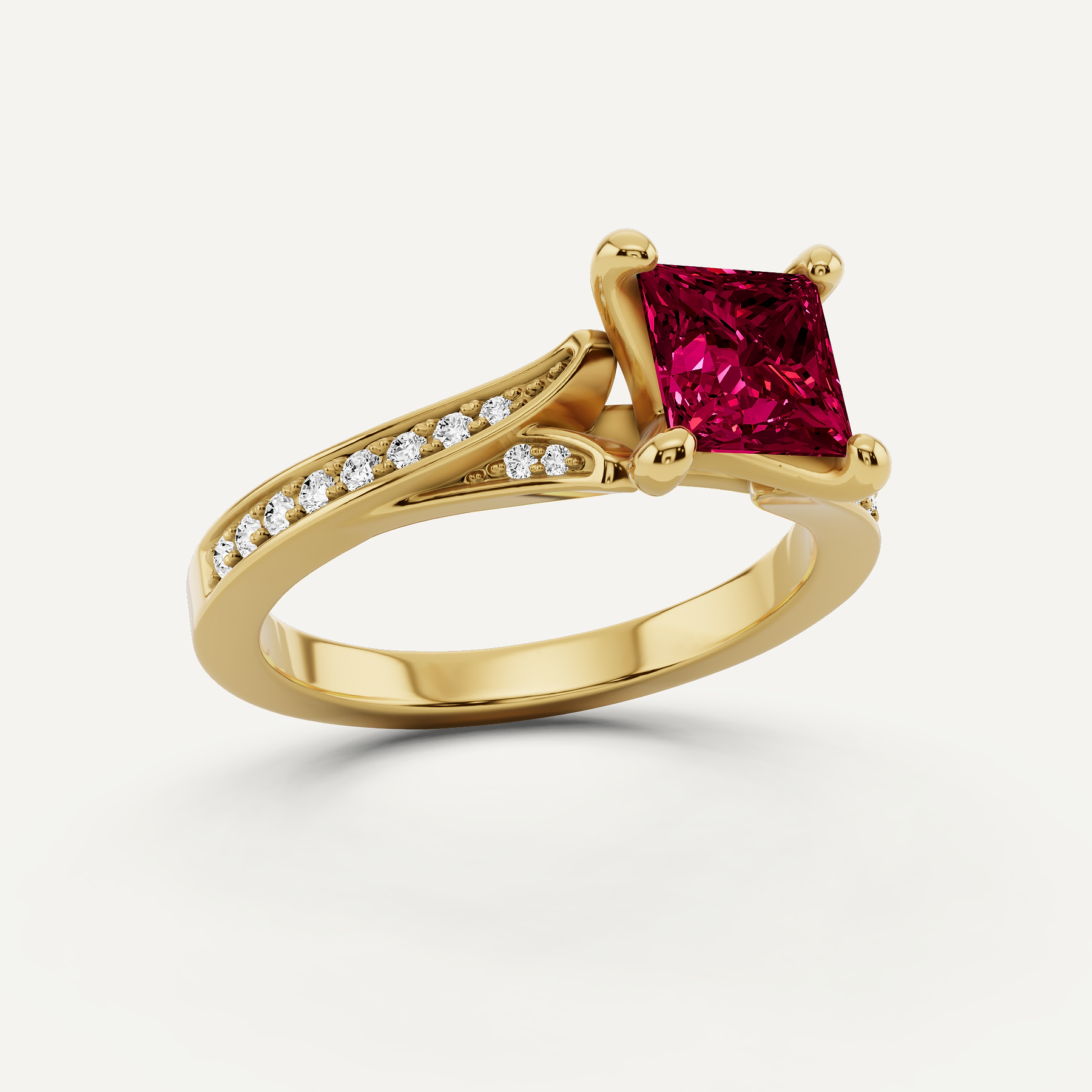 1 1/6 ctw Princess Created Ruby Contemporary Split Shank Side Stone Engagement Ring