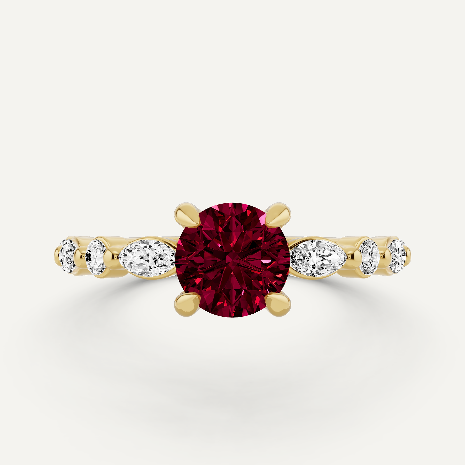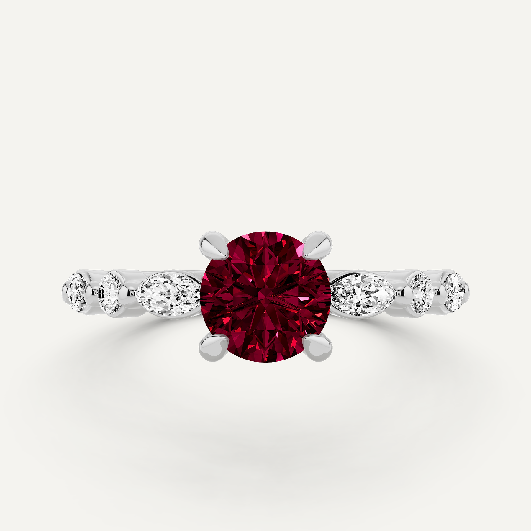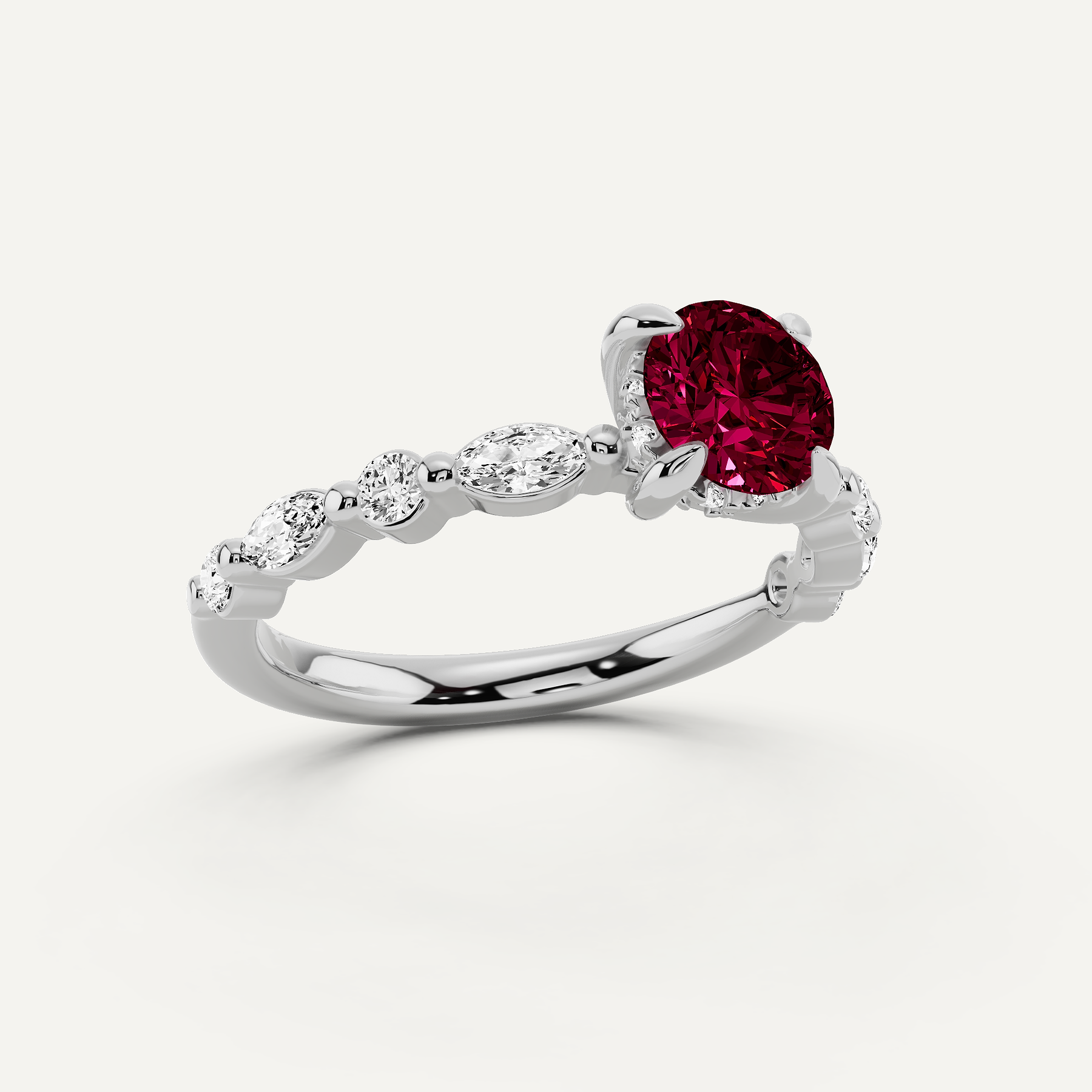 1 1/6 ctw Round Created Ruby Hidden Halo Engagement Ring with Floating SIde Stones