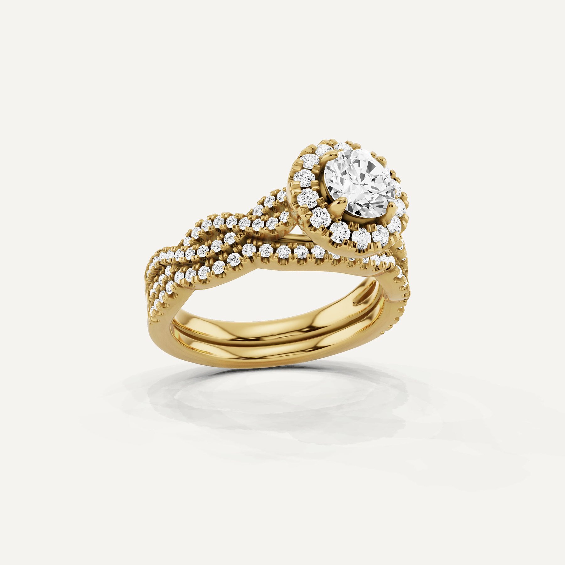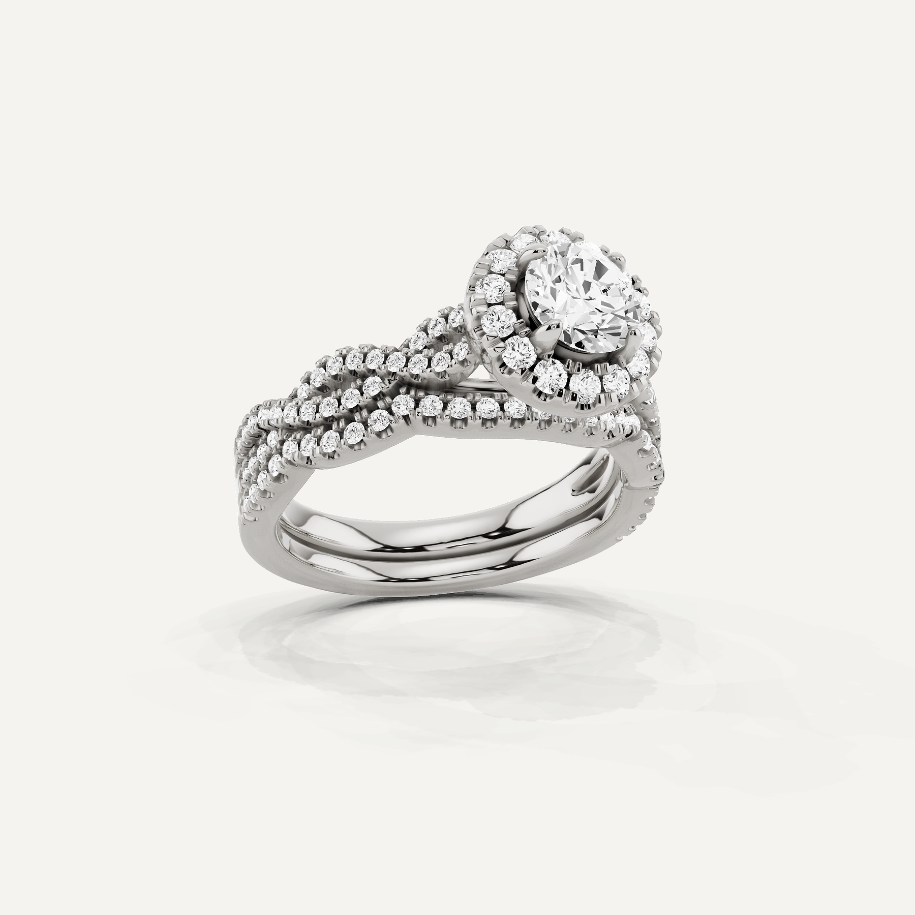 1 2/5 ctw Round Diamond Double Twist Halo Bridal Set