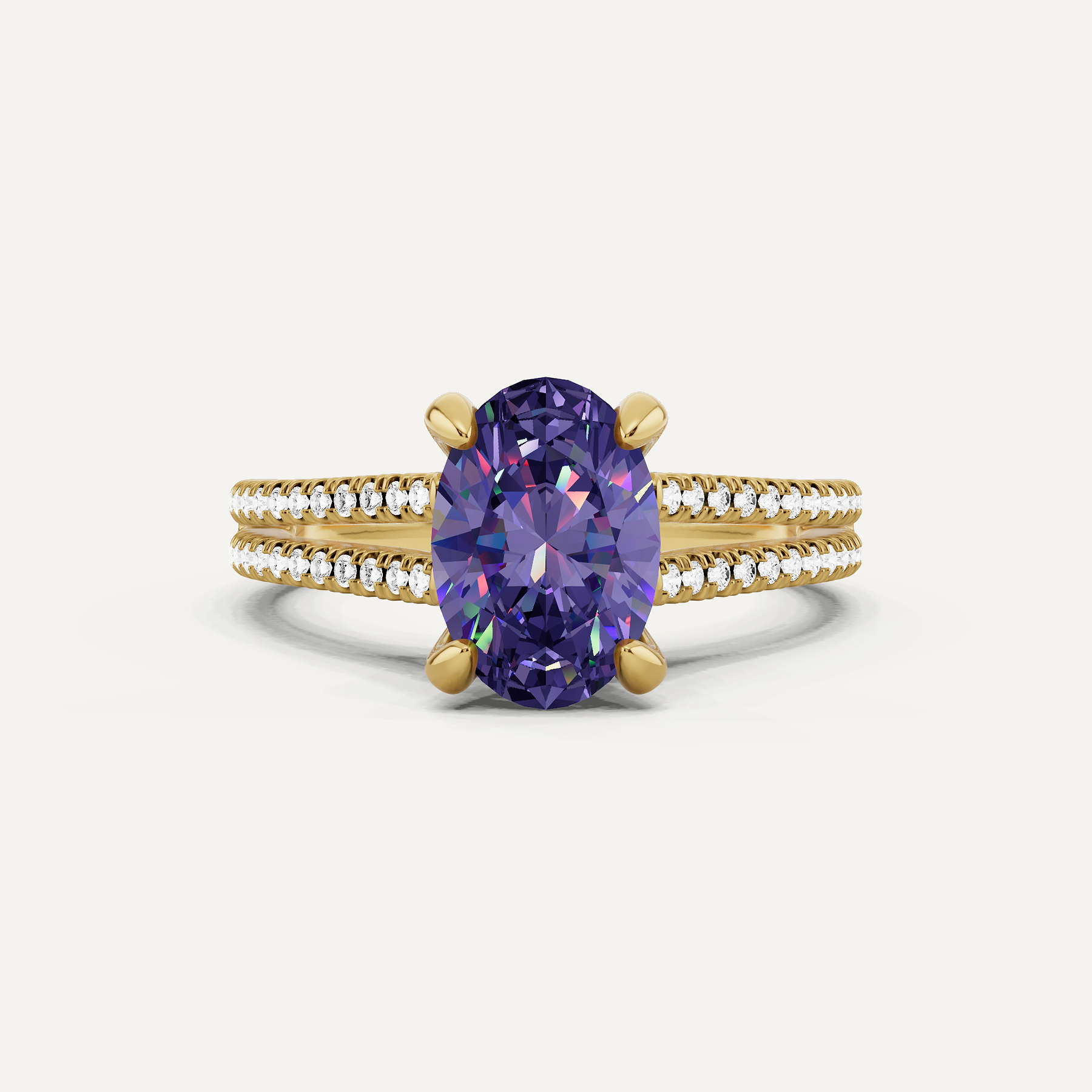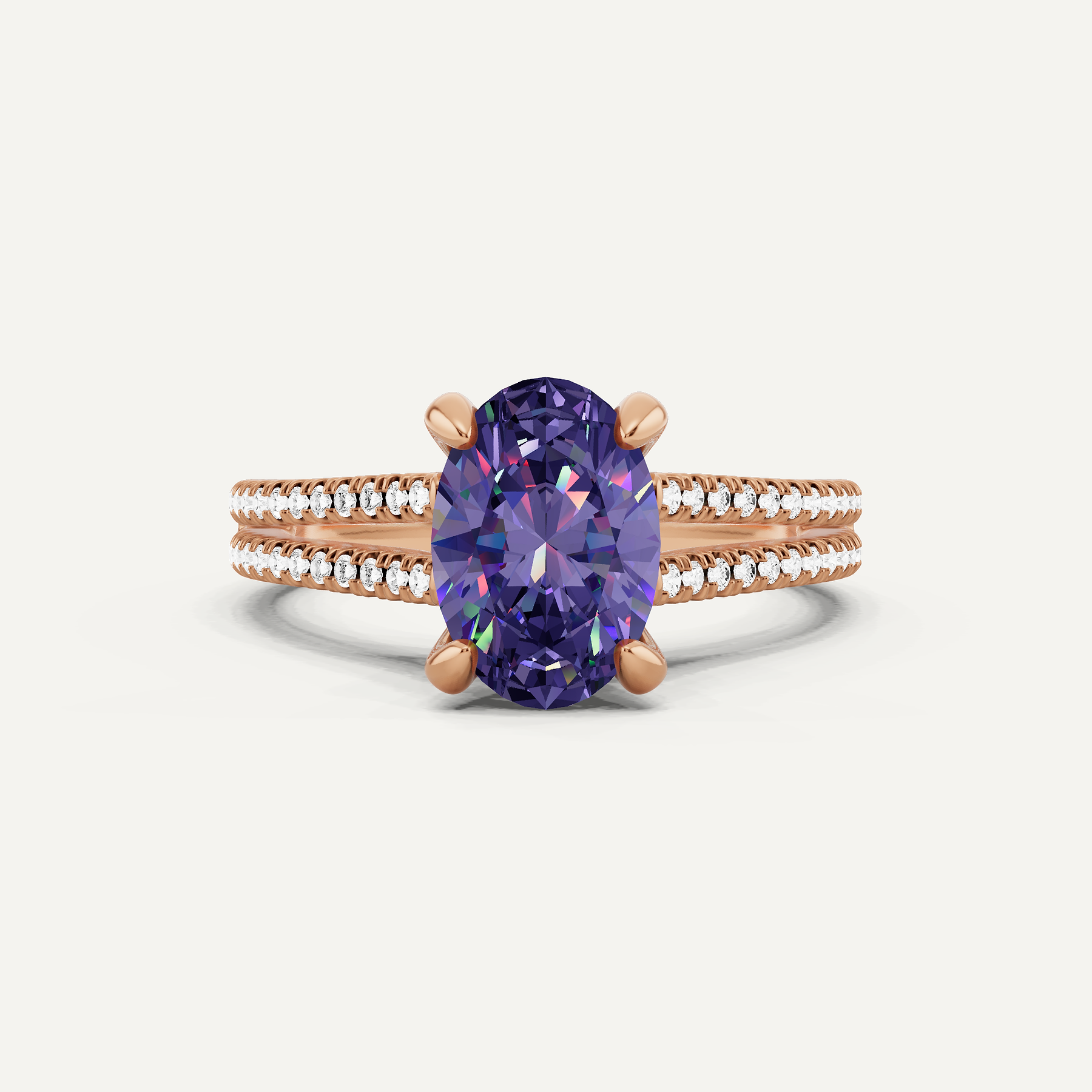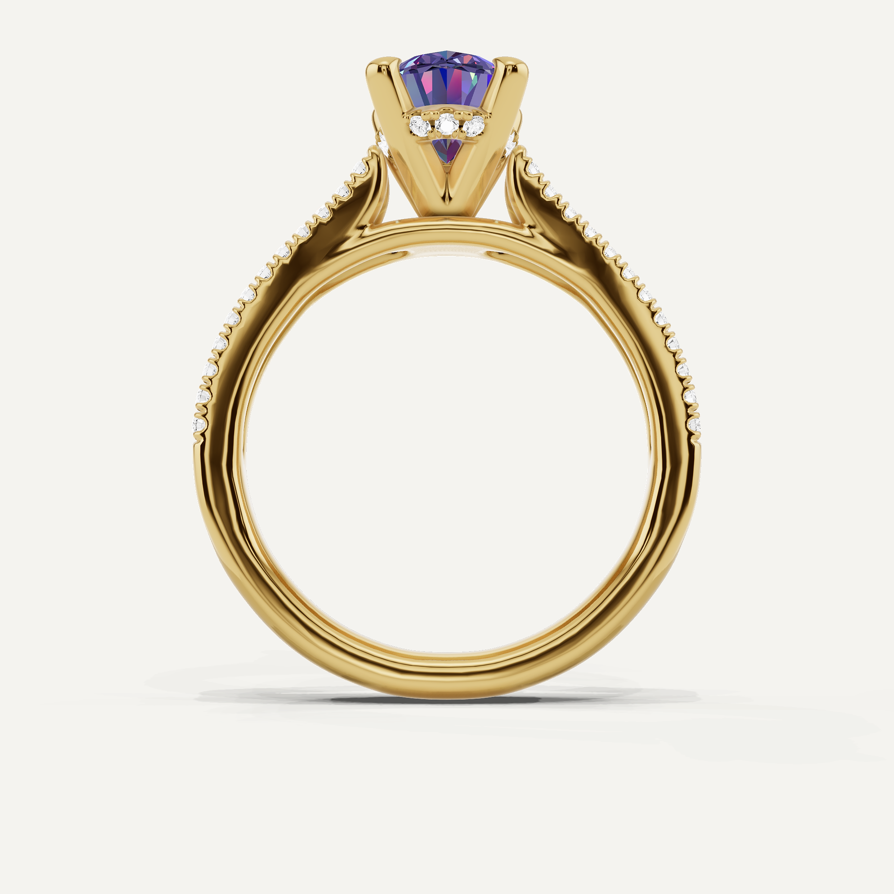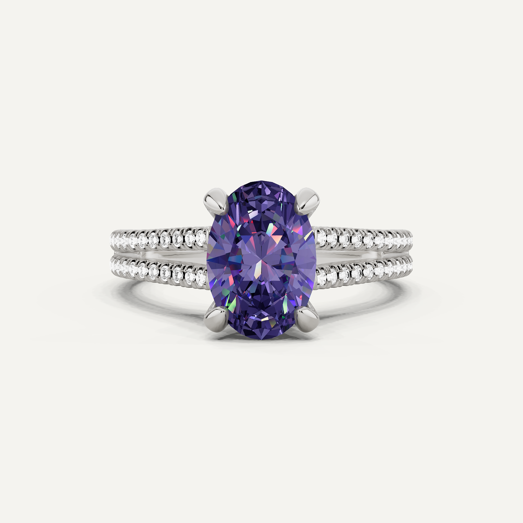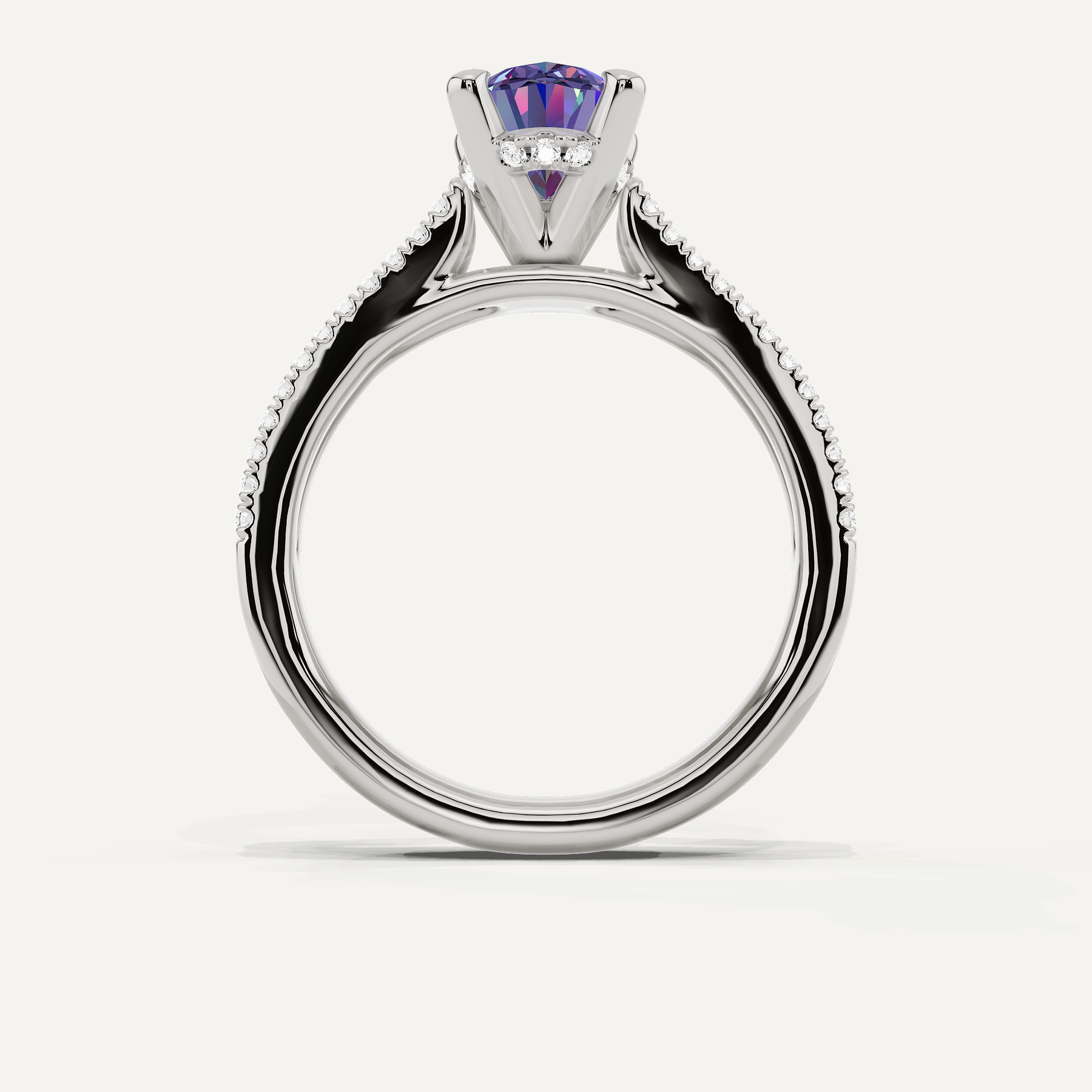 1 3/4 ctw Oval Created Alexandrite Split Shank Hidden Halo Engagement Ring