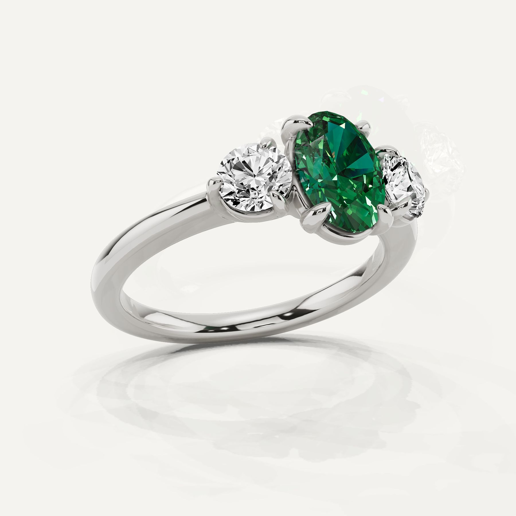 1 5/8 ctw Oval Created Emerald Three Stone Engagement Ring