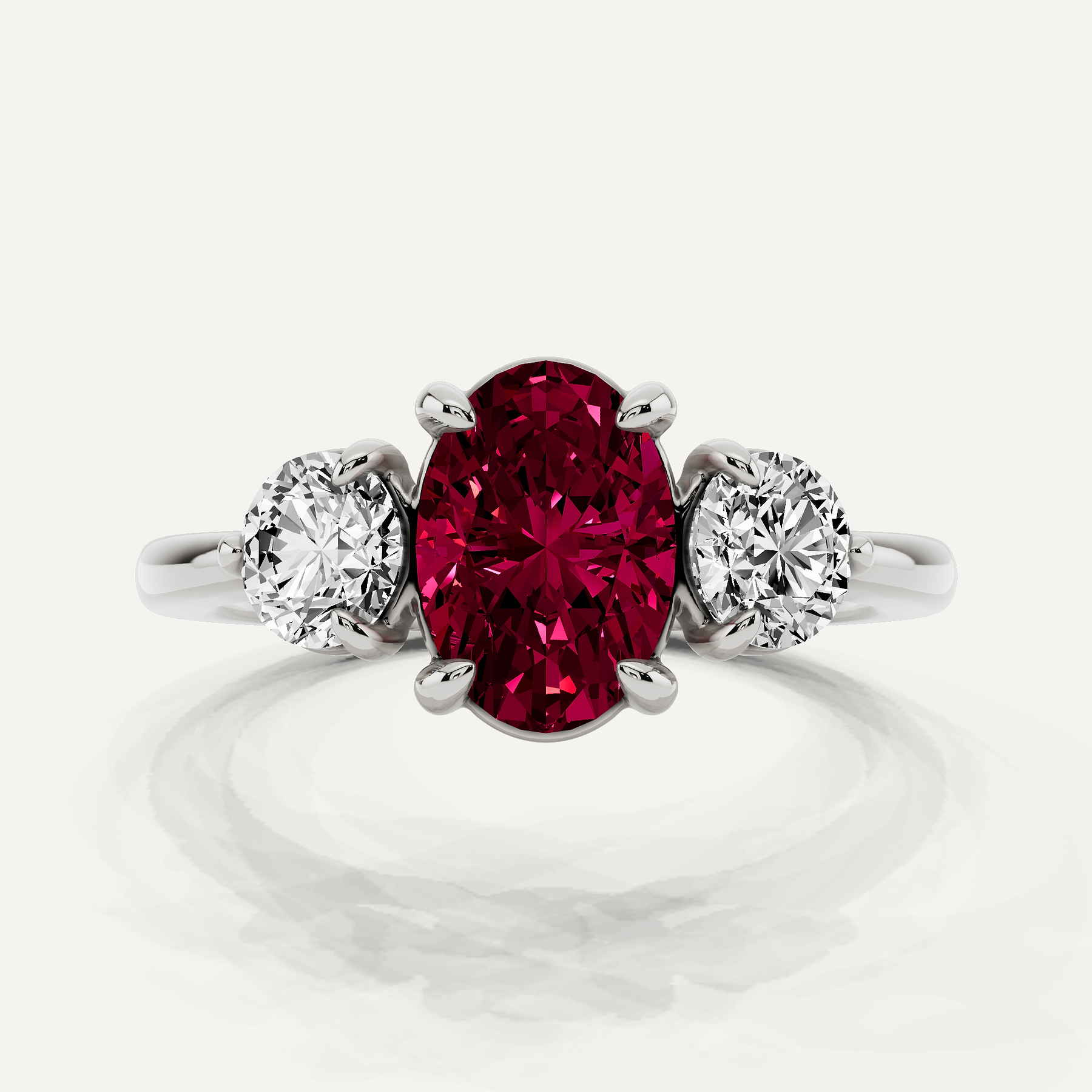 1 5/8 ctw Oval Created Ruby Three Stone Engagement Ring