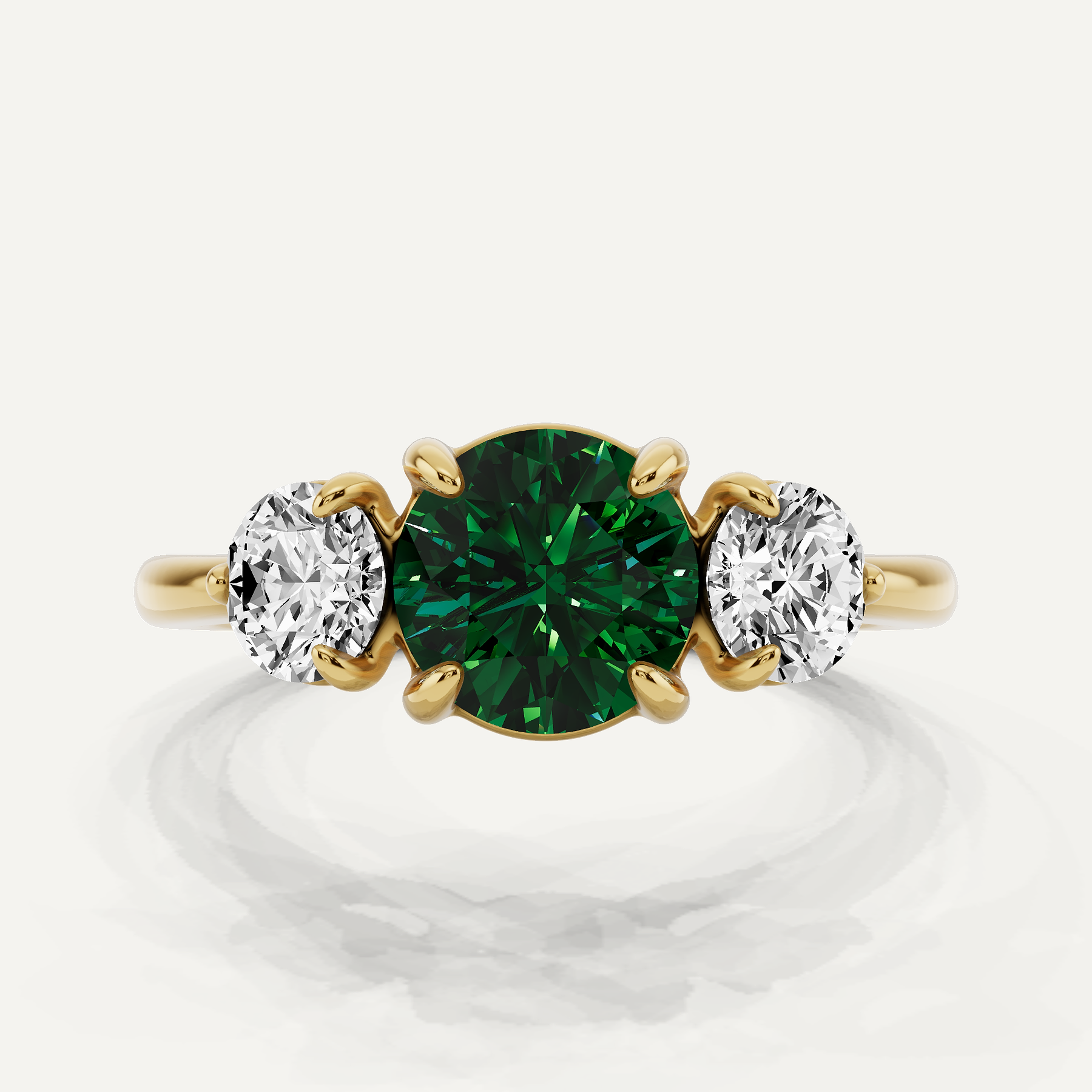 1 5/8 ctw Round Created Emerald Three Stone Engagement Ring