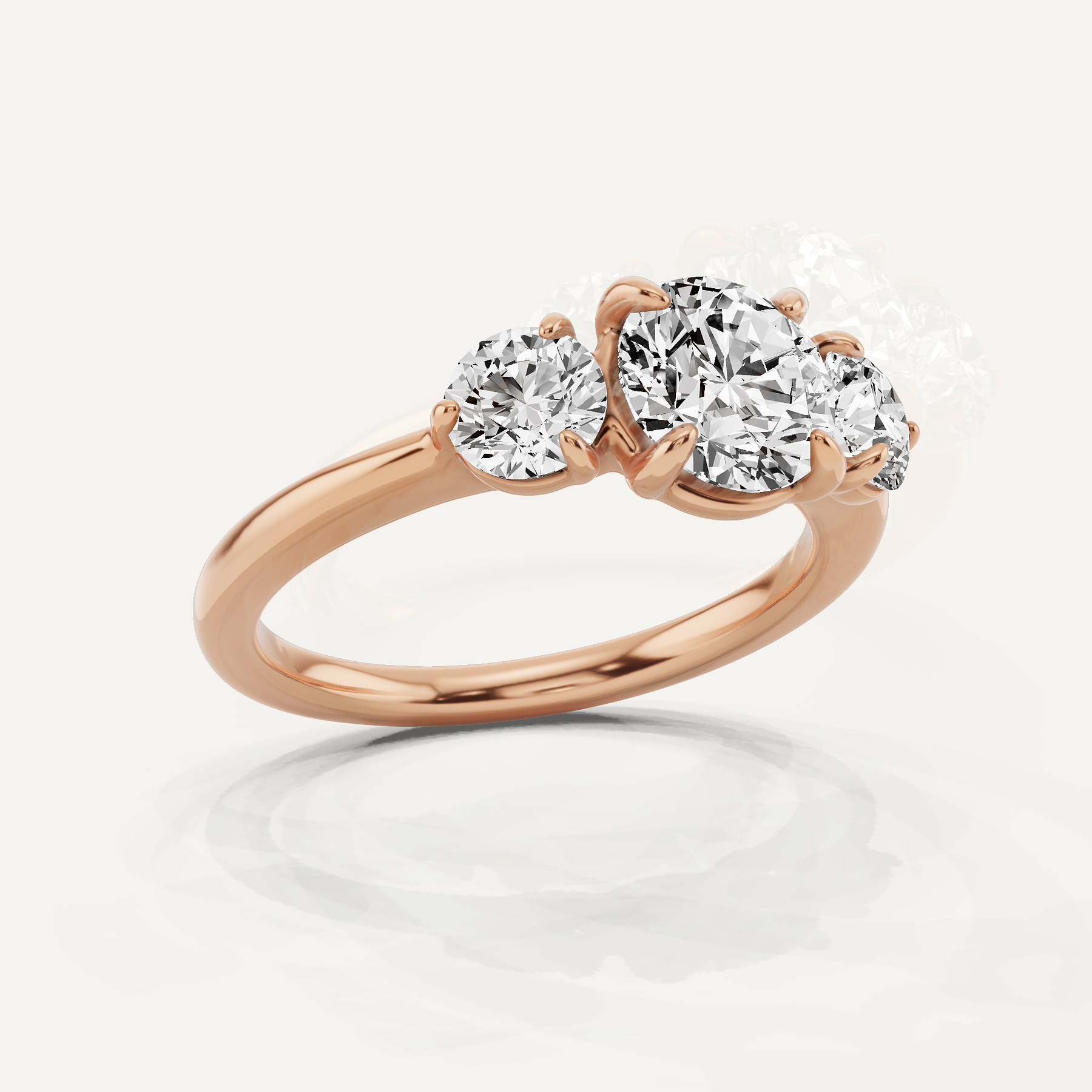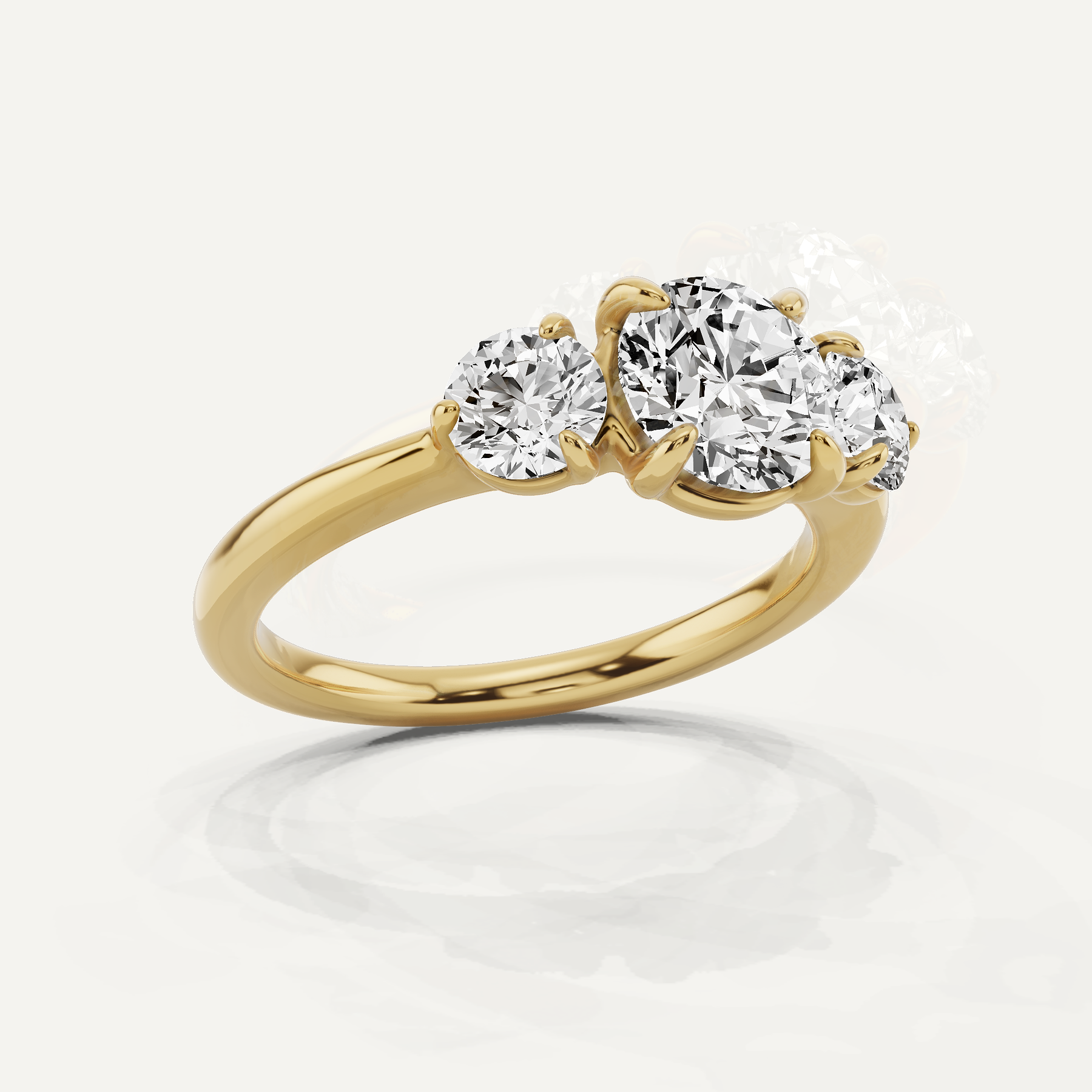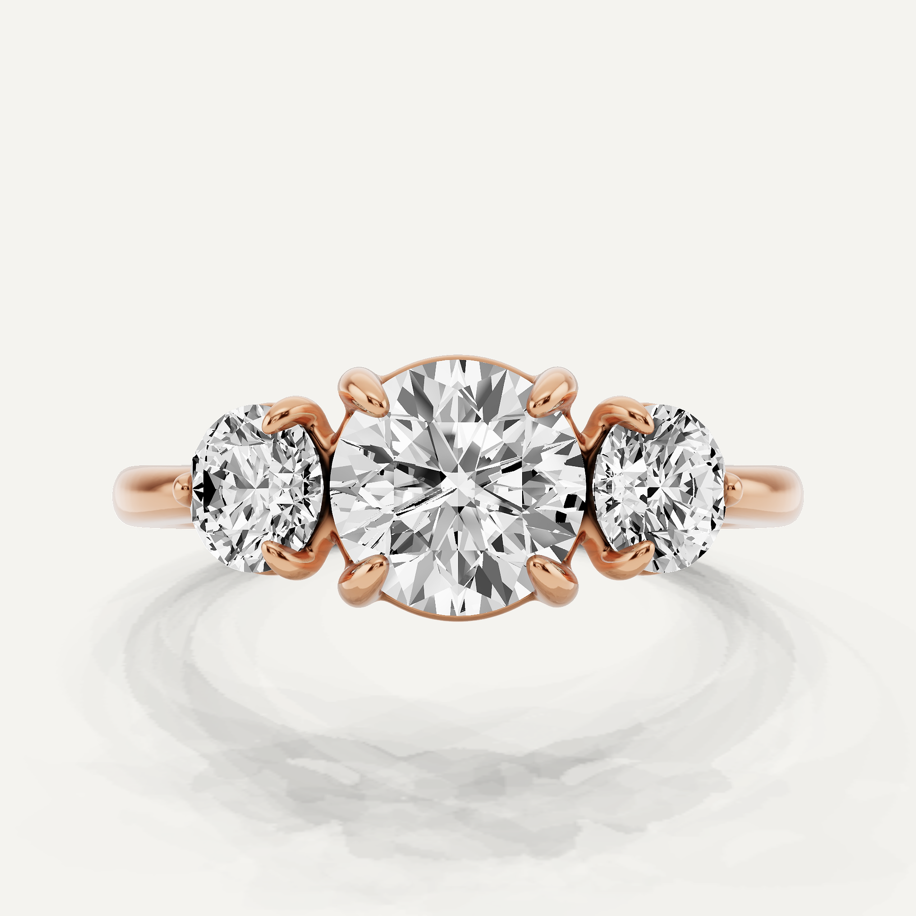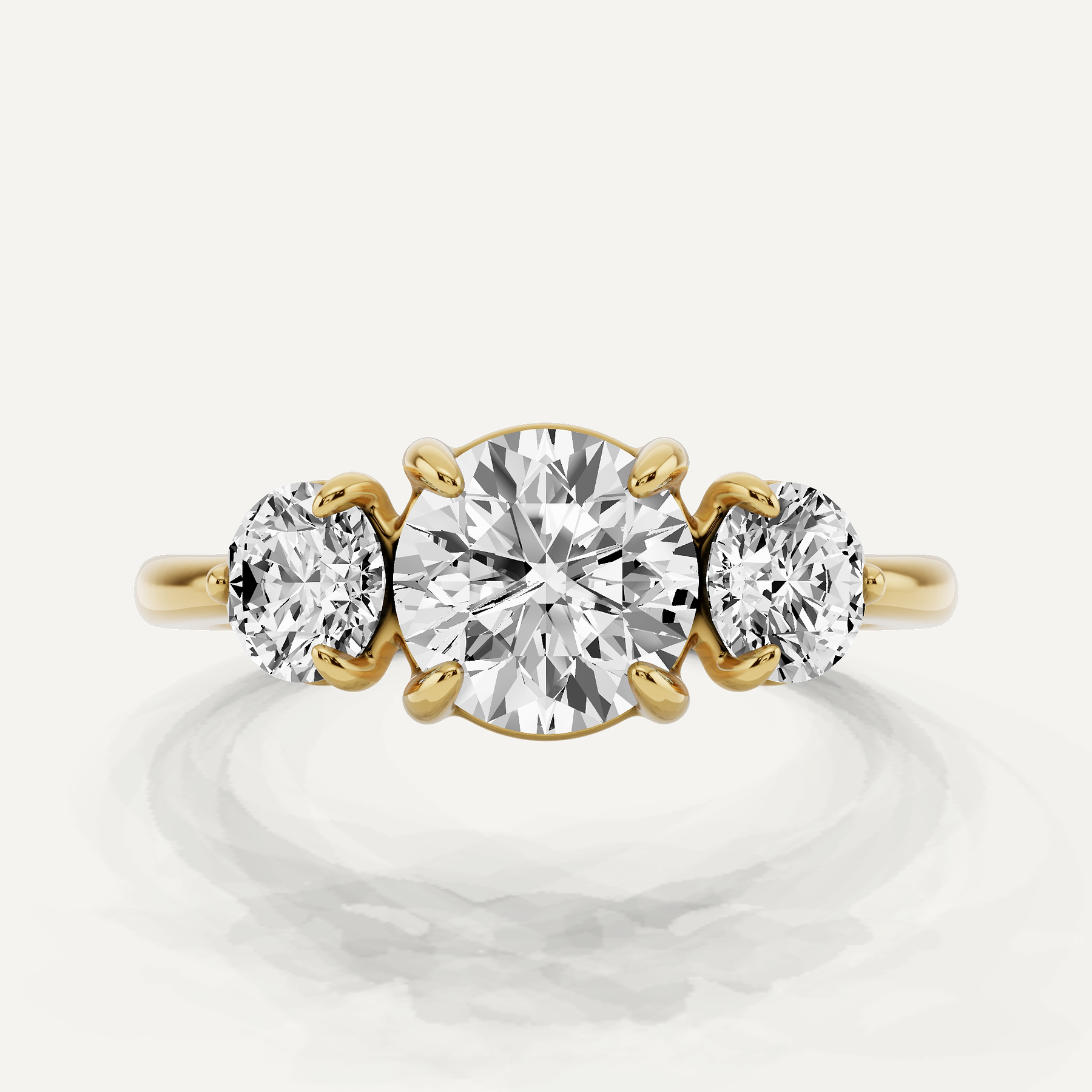 Create unforgettable moments without a hefty price tag with our Three stone Round Diamond Engagement Ring, a design that harmoniously combines romance and affordability. Immerse yourself in the detailed distinctions between white gold, yellow gold, and rose gold choices, and thoughtfully evaluate your individual leaning toward lab-grown or naturally acquired diamonds.
