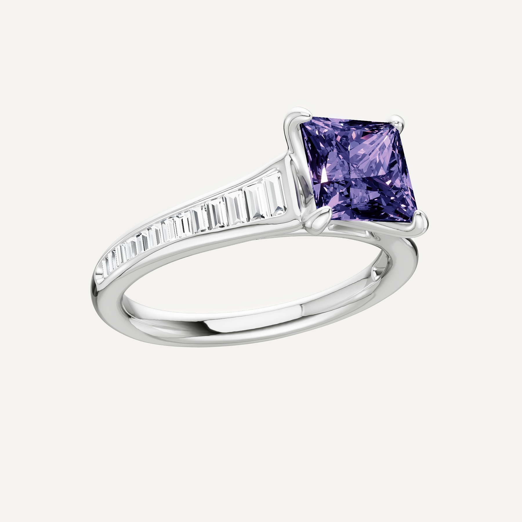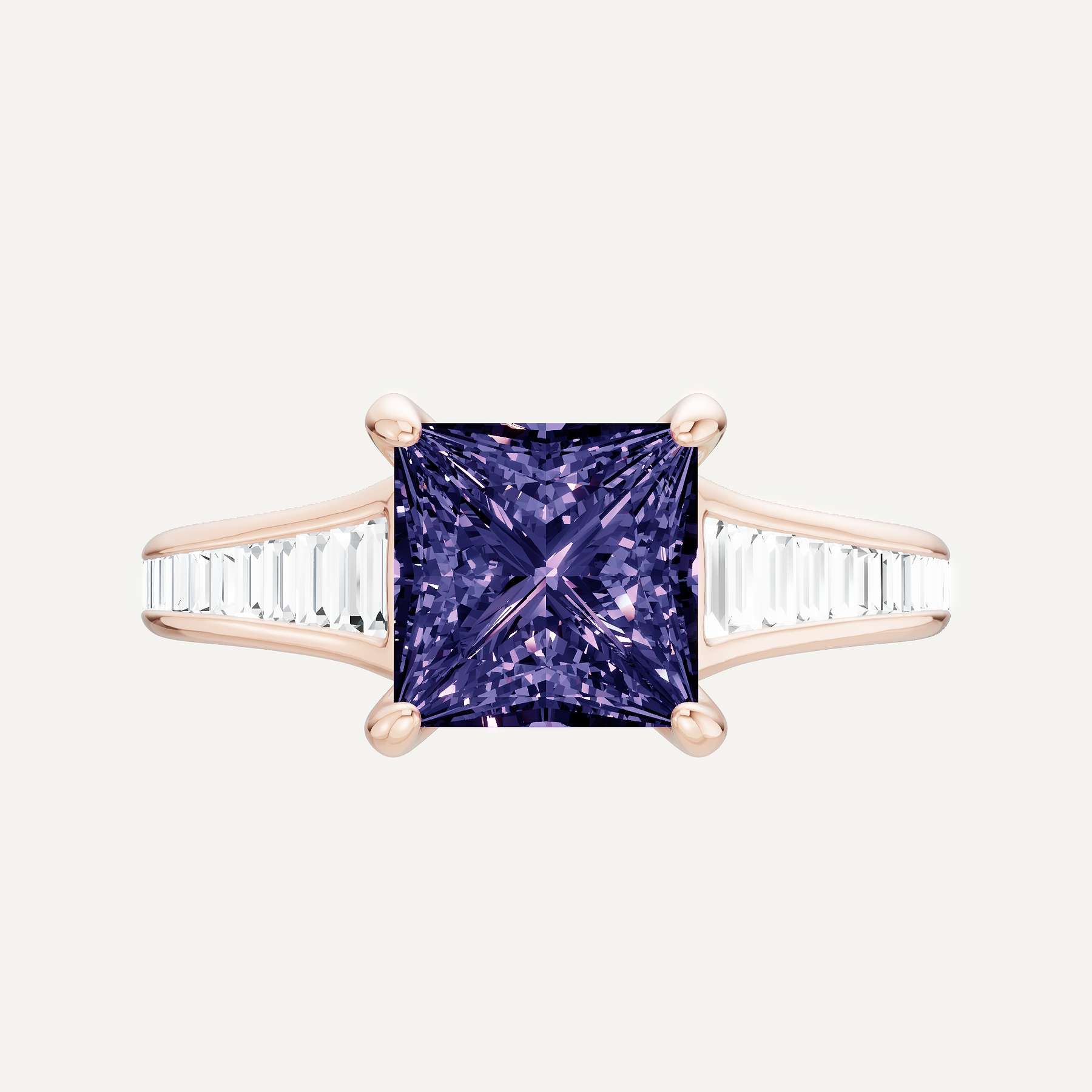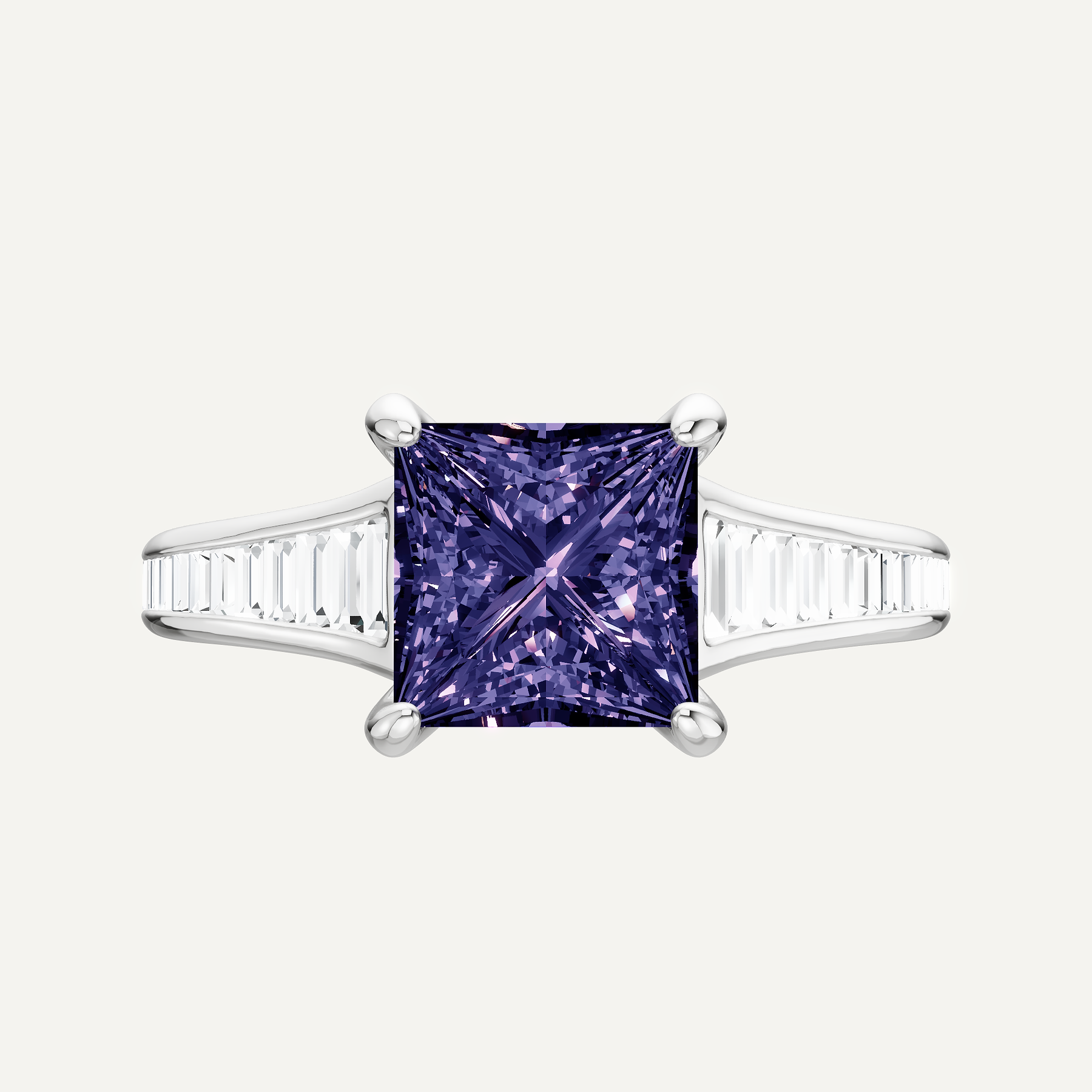 1 7/8 ctw Princess Created Alexandrite Baguette Side Stone Engagement Ring
