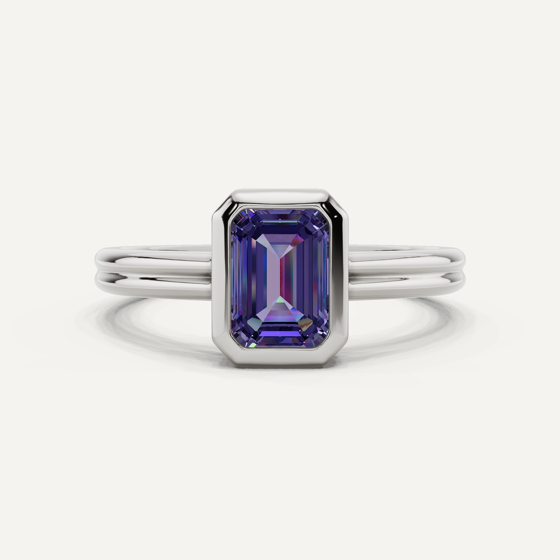 1 ctw Alexandrite Created Alexandrite Bezel Set Double Shank Solitaire Engagement Ring