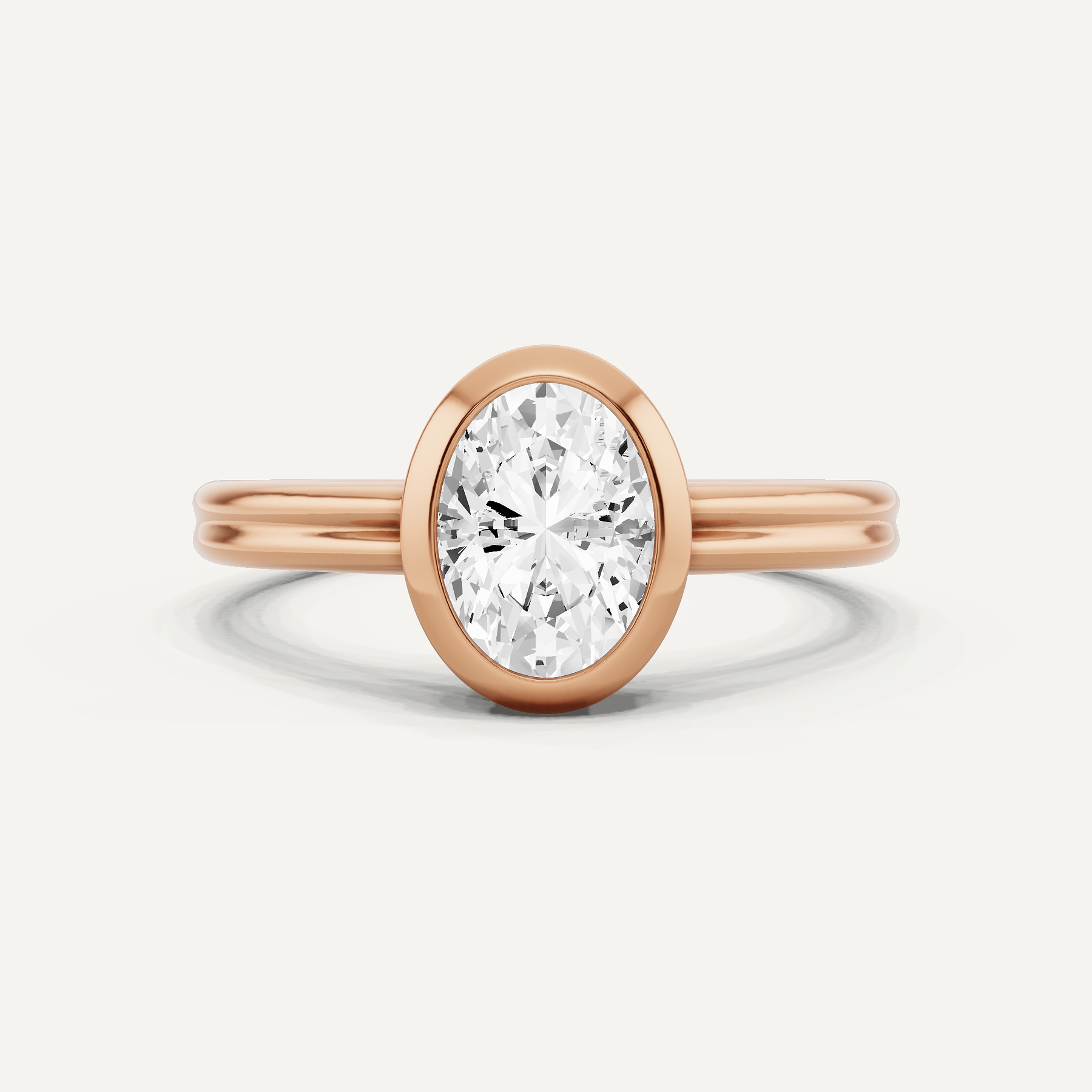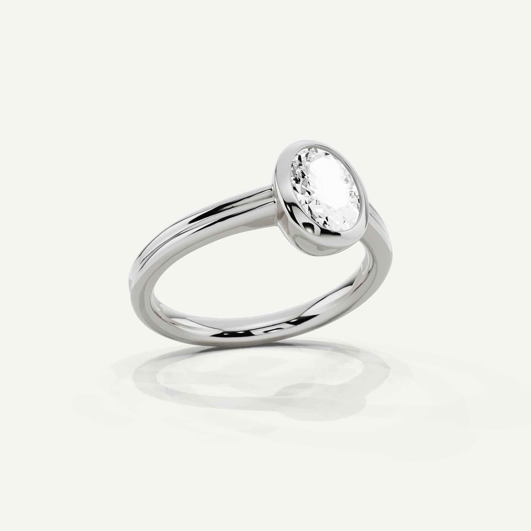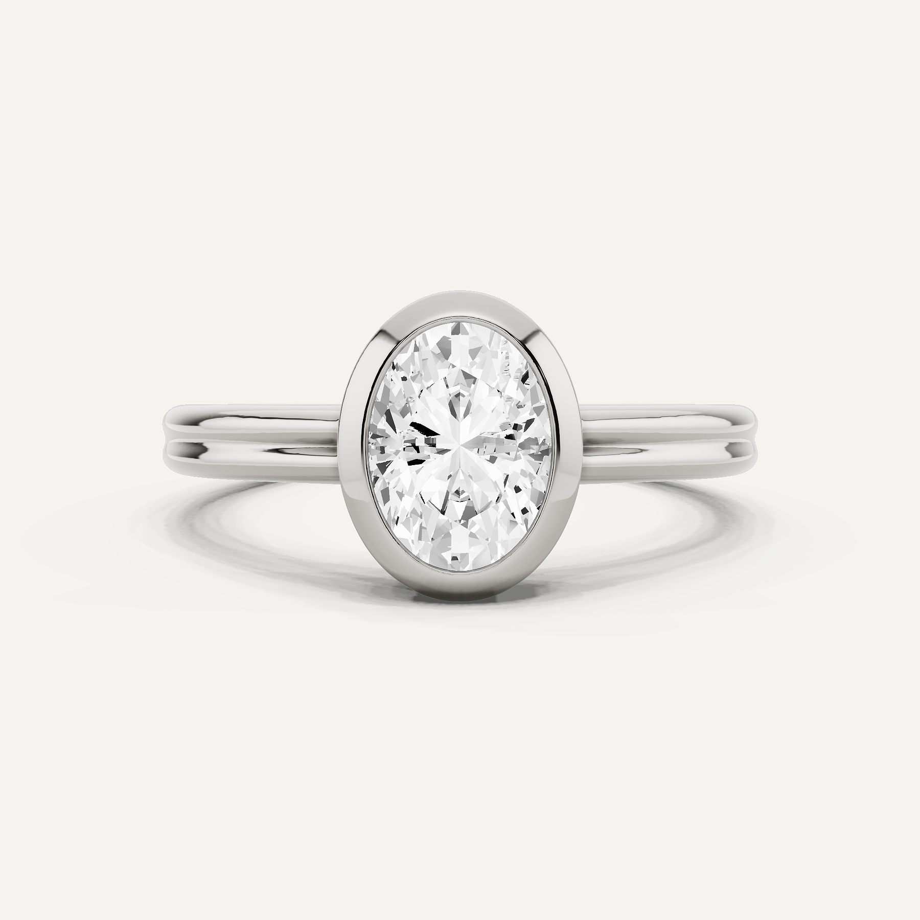 1 ctw Oval Diamond Bezel Set Double Shank Solitaire Engagement Ring