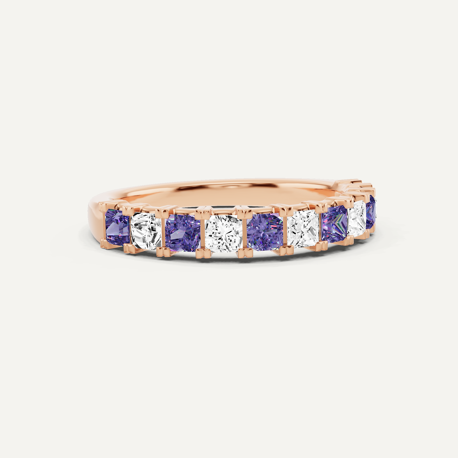 1 ctw Princess Diamond and Princess Created Alexandrite Alternating Prong Set Wedding Band