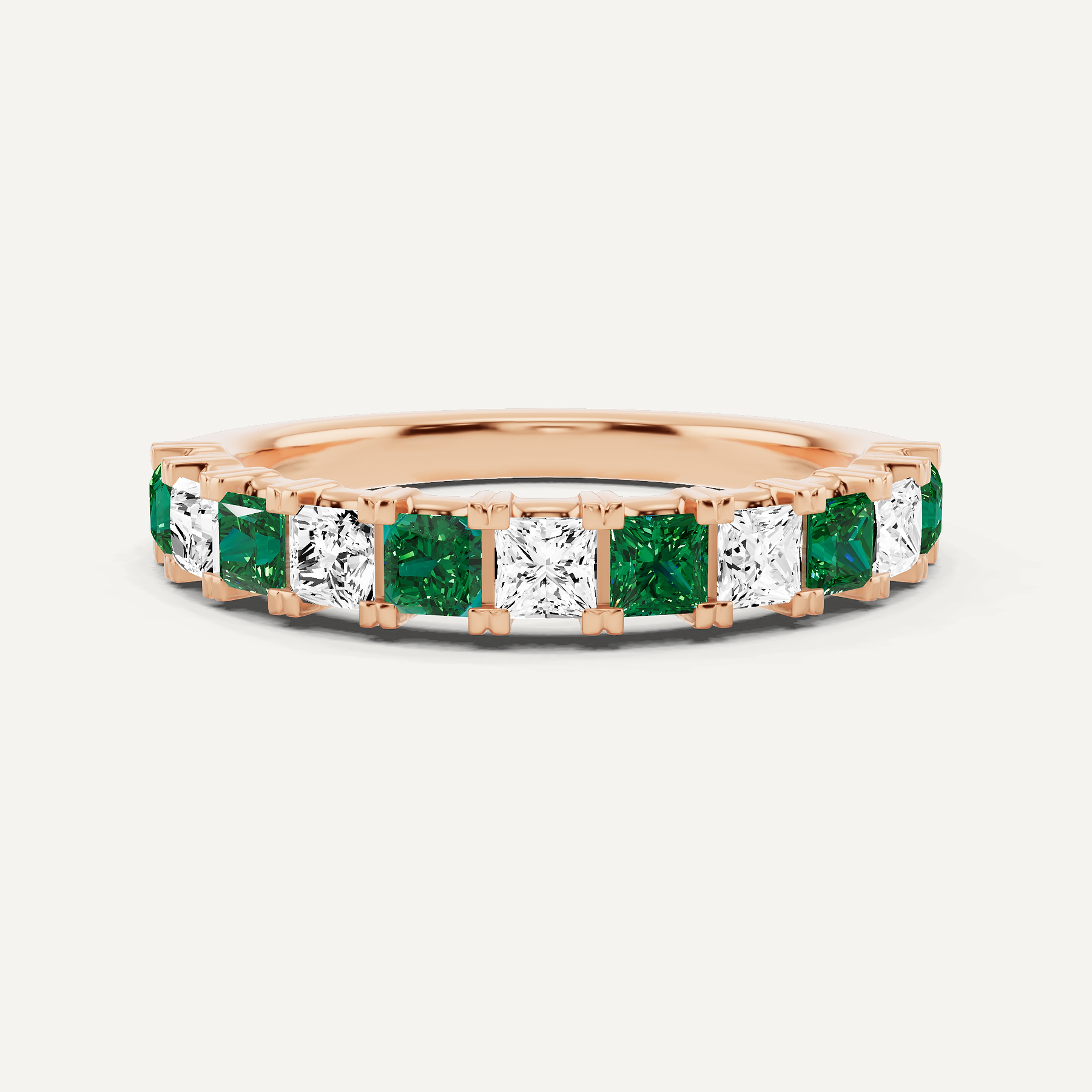 1 ctw Princess Diamond and Princess Created Emerald Alternating Prong Set Wedding Band